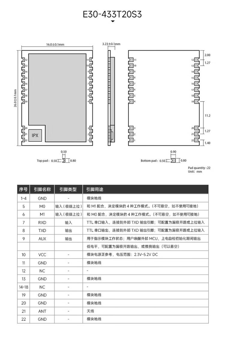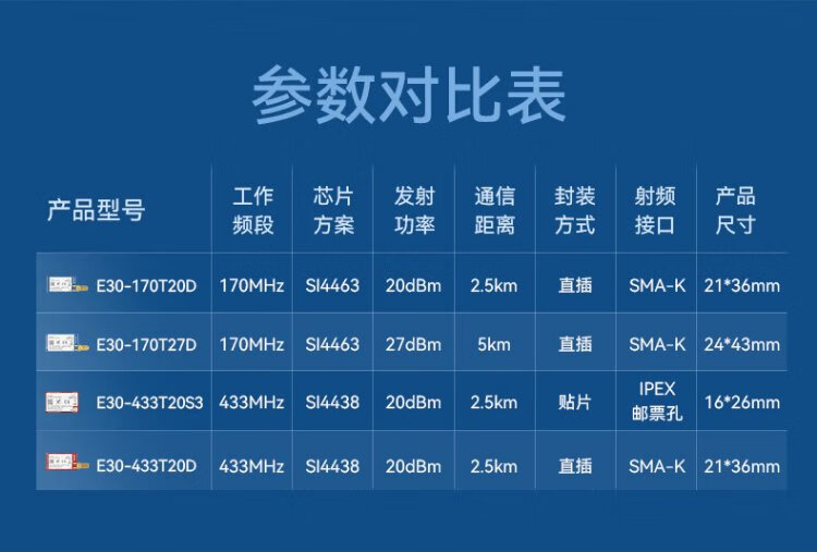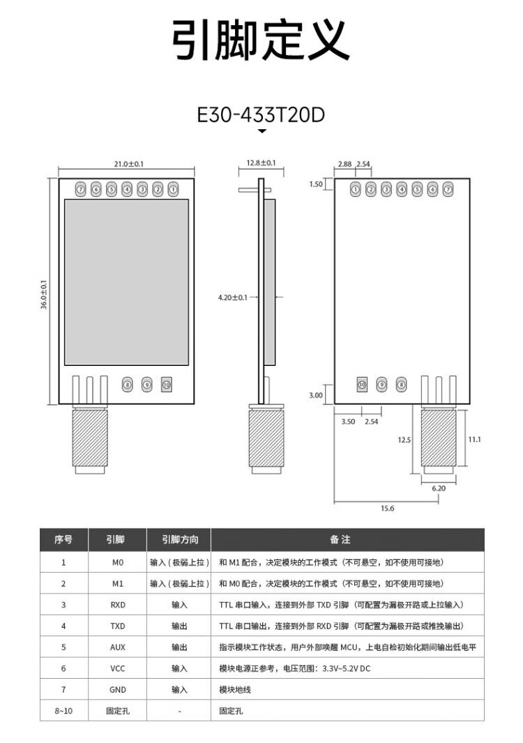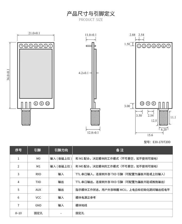 Ebyte UART wireless transceiver module through the wall 500mW serial port Si4438 chip long distance needs to bring your own antenna E30-170T20D