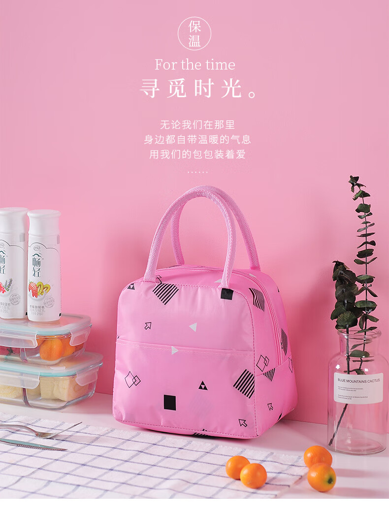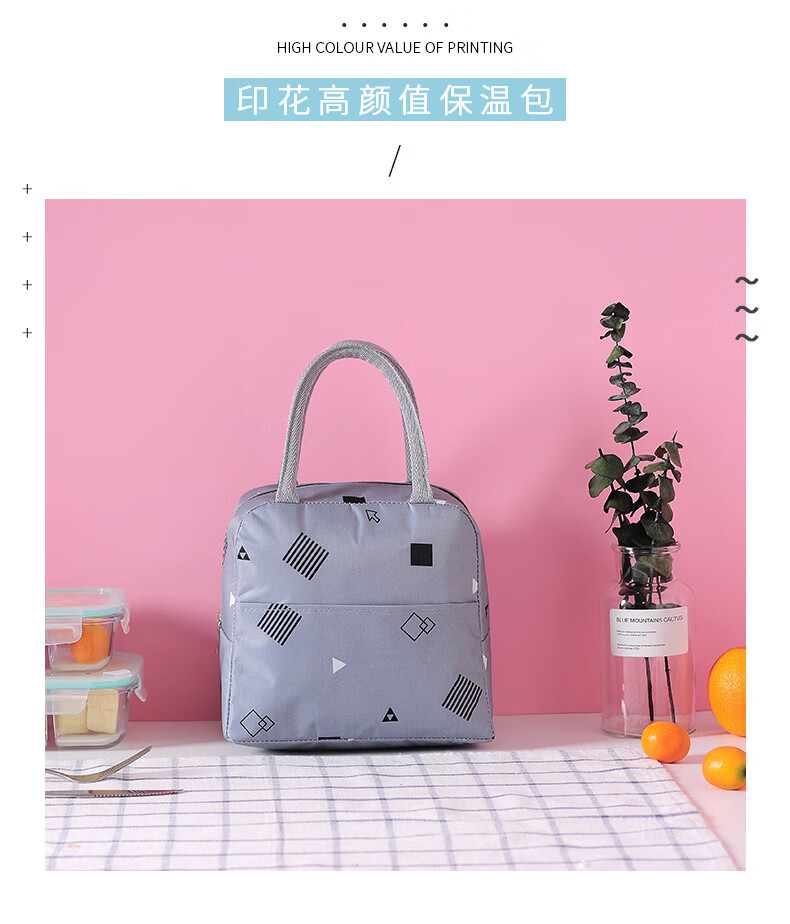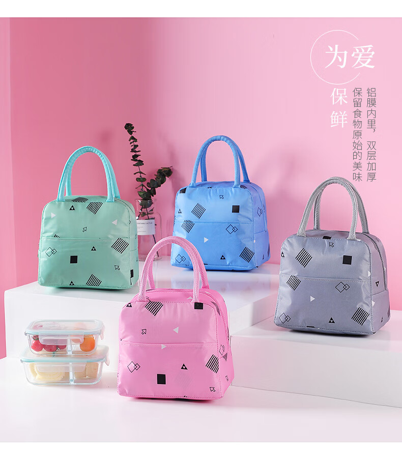 Yuhua aluminum foil lunch box bag handbag female student thermal bag large capacity outdoor waterproof thermal bag large lunch bag black stripes