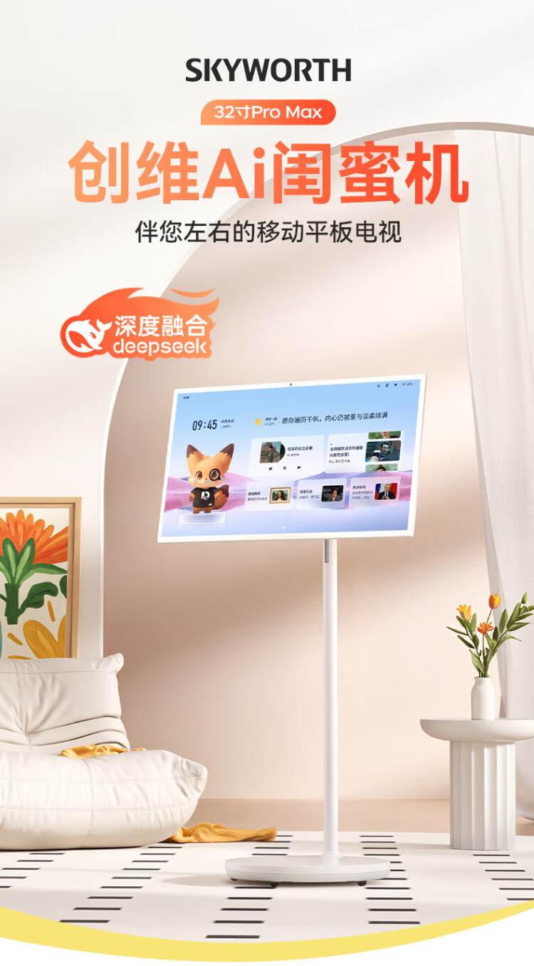 Skyworth Best Friend Phone 4K 32-inch Pro Free Screen Long Battery Life Smart Screen AI Fitness 8-Core Eye-Protect Large Tablet Movable TV All-in-One for Drama Tracking Touch Free Screen 32-inch Best Friend Phone Pro 8+128G