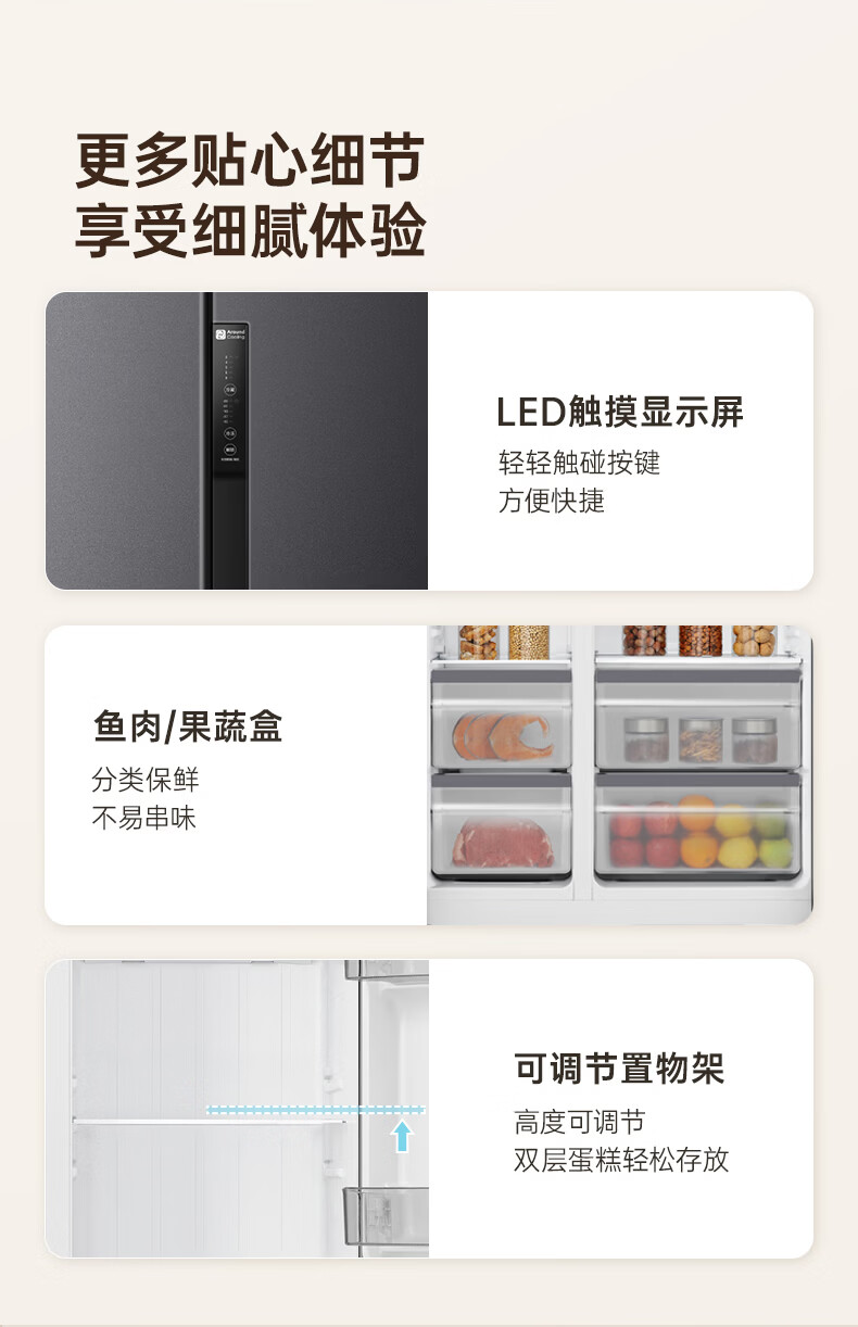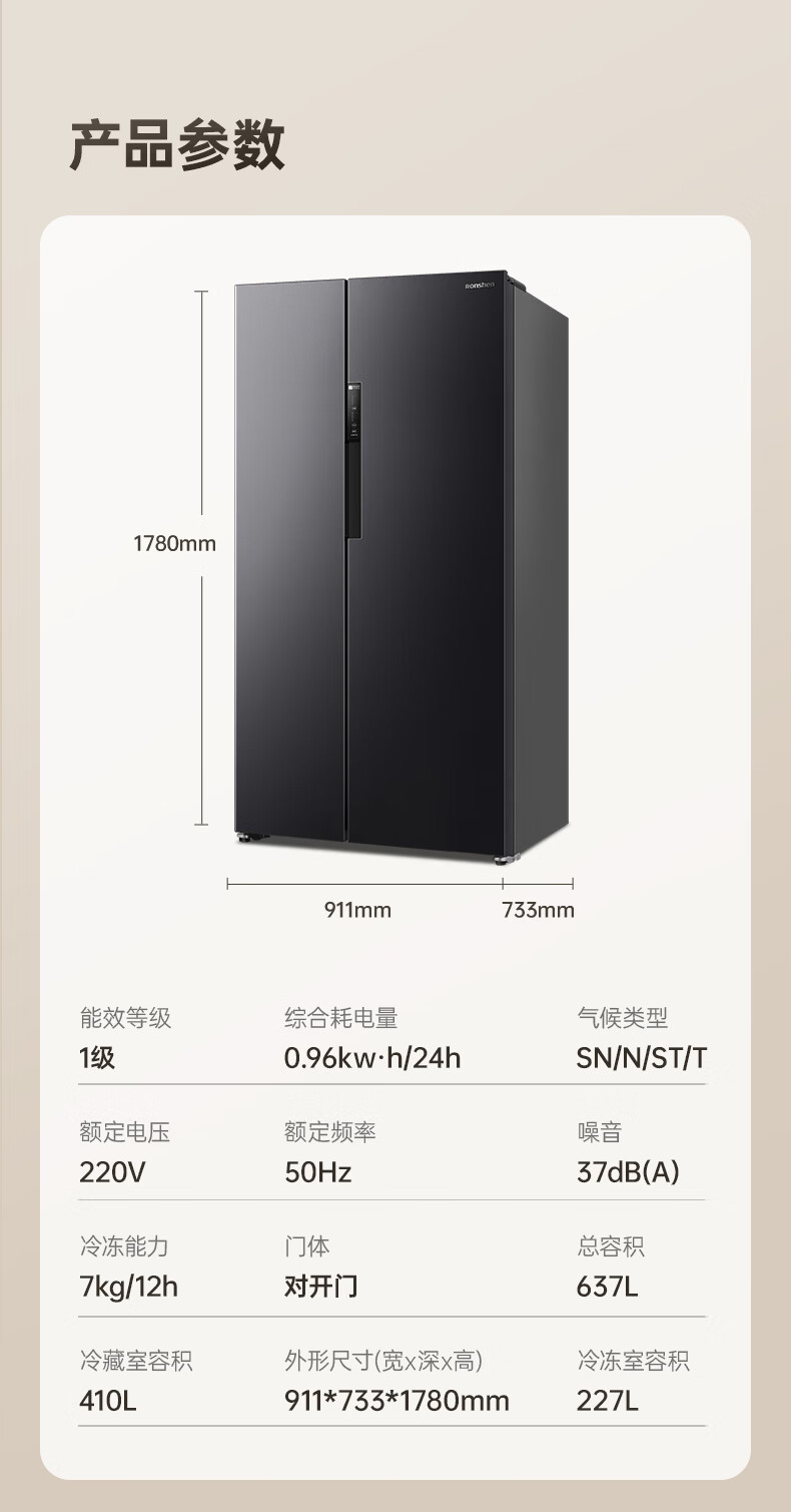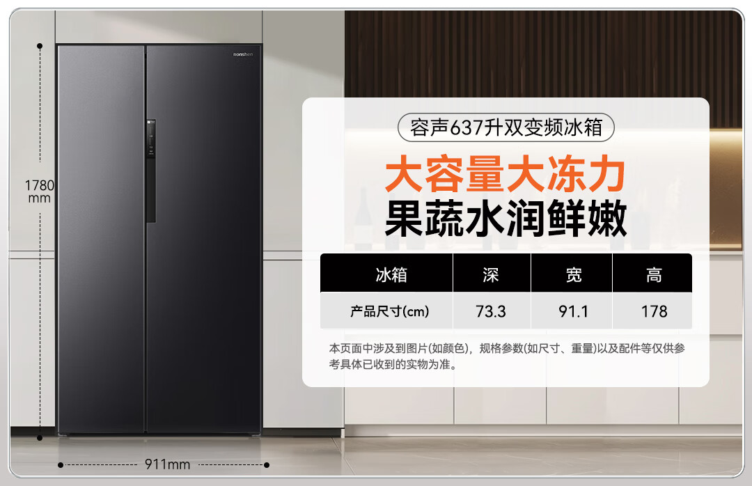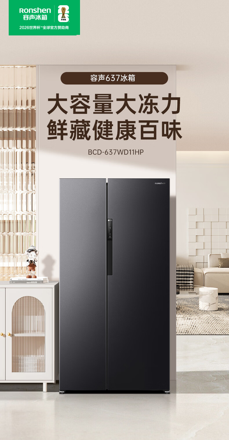 Rongsheng 637-liter side-by-side double-door refrigerator household first-class energy efficiency frequency conversion energy-saving air-cooled frost-free large-capacity home appliance national subsidy BCD-637WD11HP national subsidy 20%