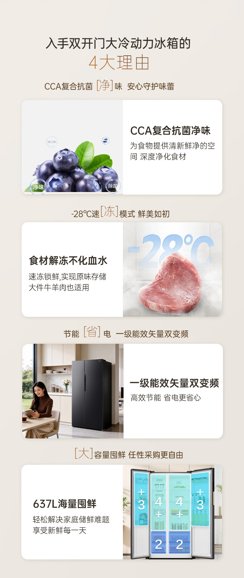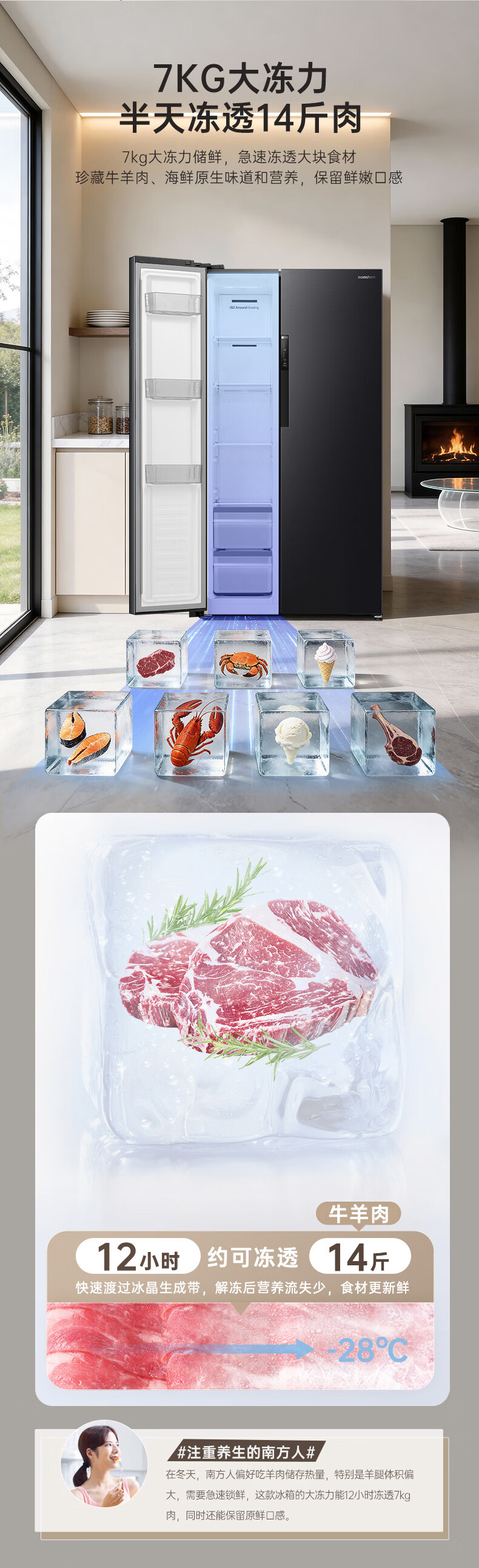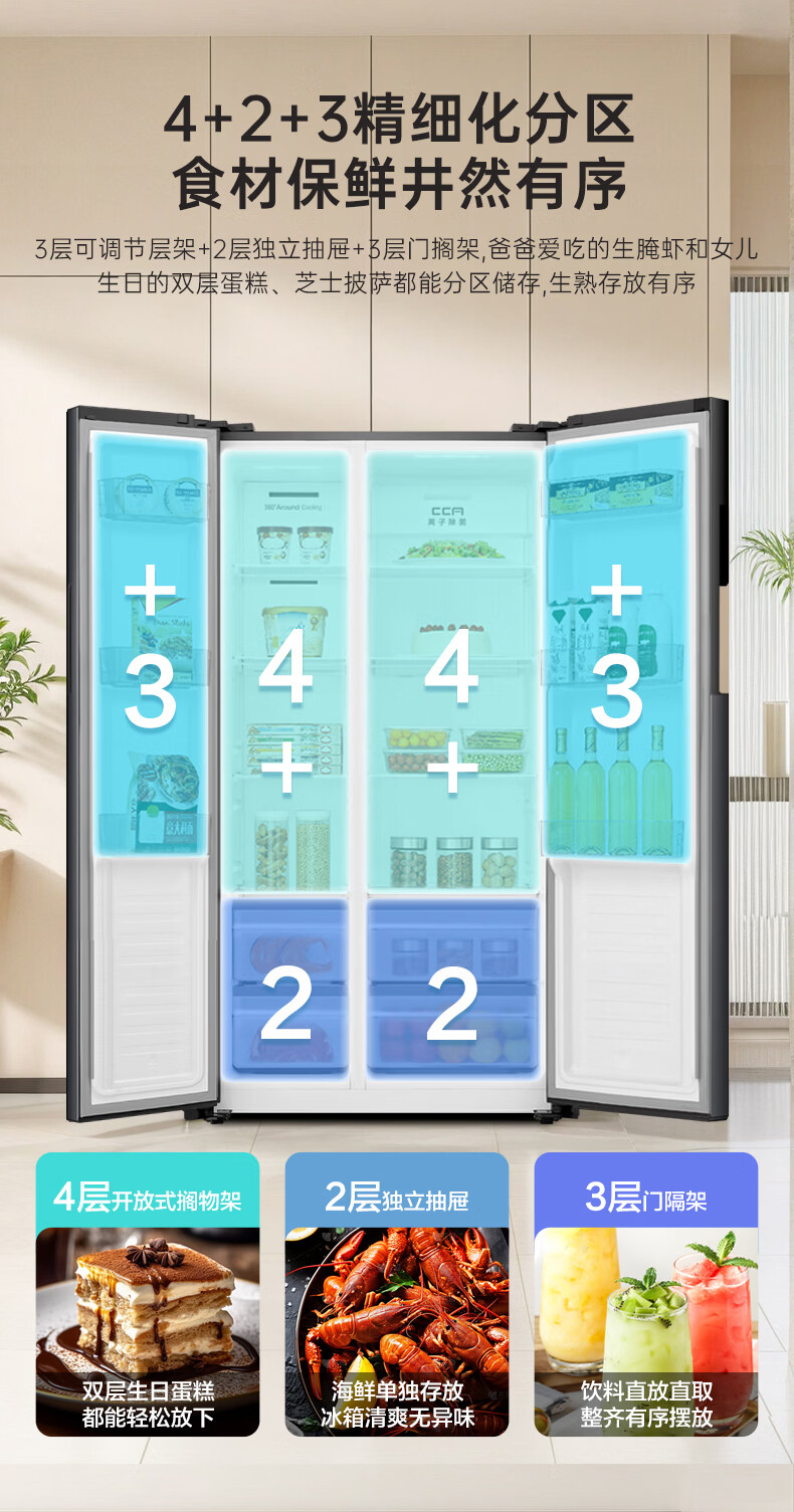Rongsheng 637-liter side-by-side double-door refrigerator household first-class energy efficiency frequency conversion energy-saving air-cooled frost-free large-capacity home appliance national subsidy BCD-637WD11HP national subsidy 20%
