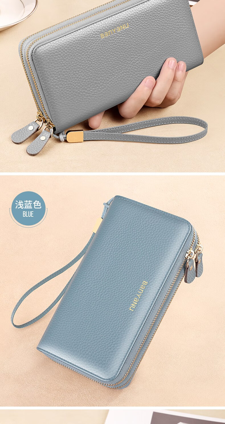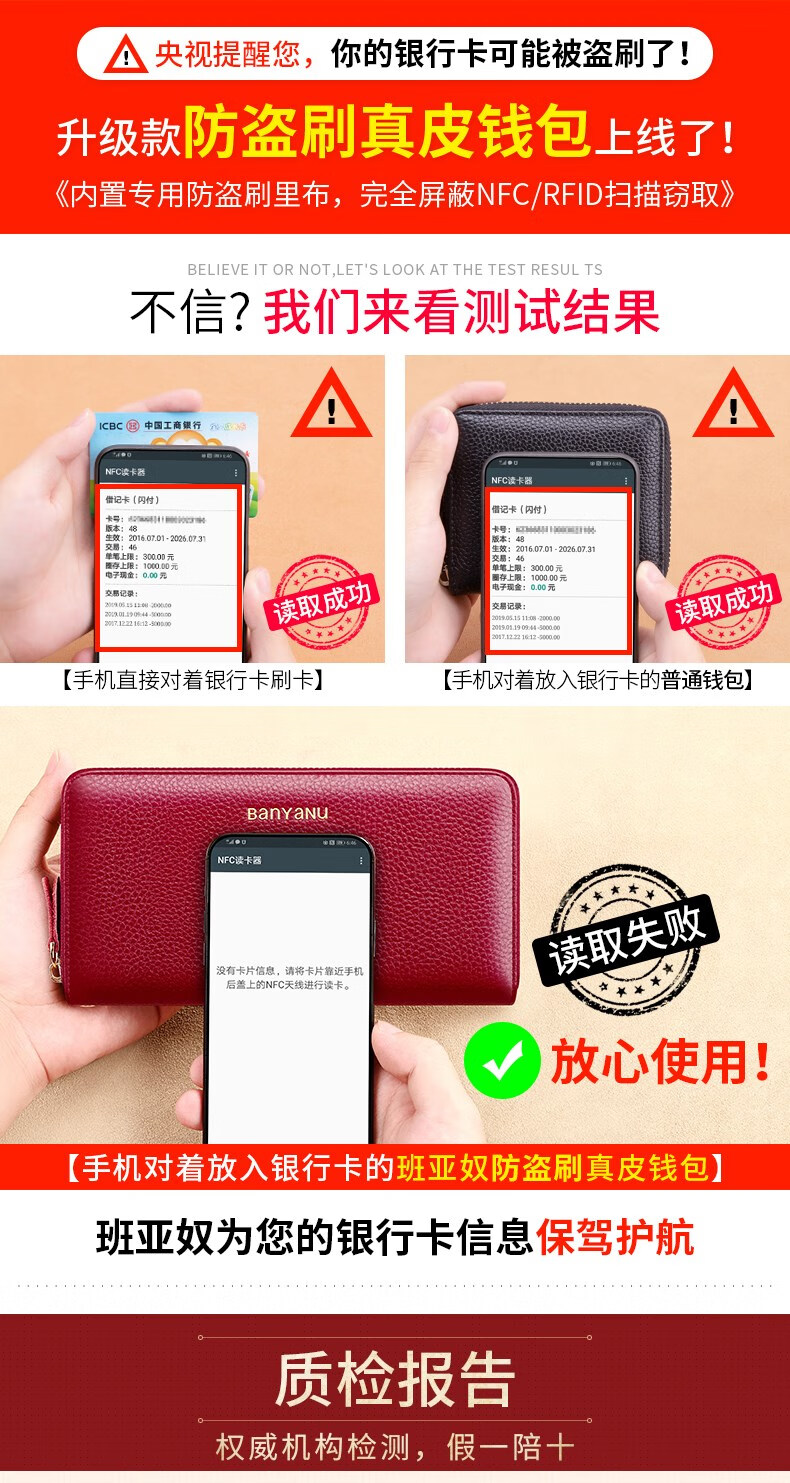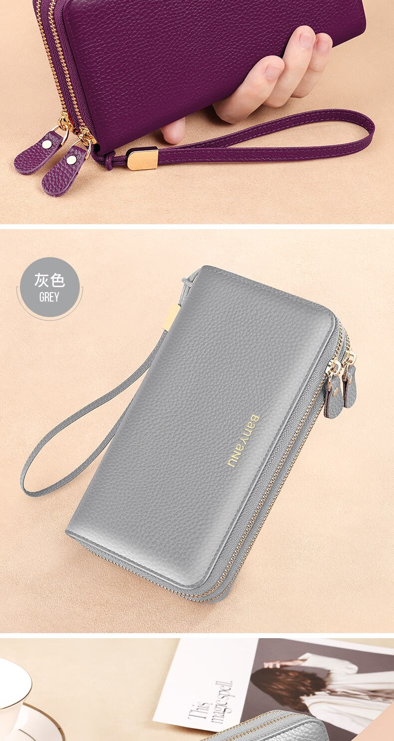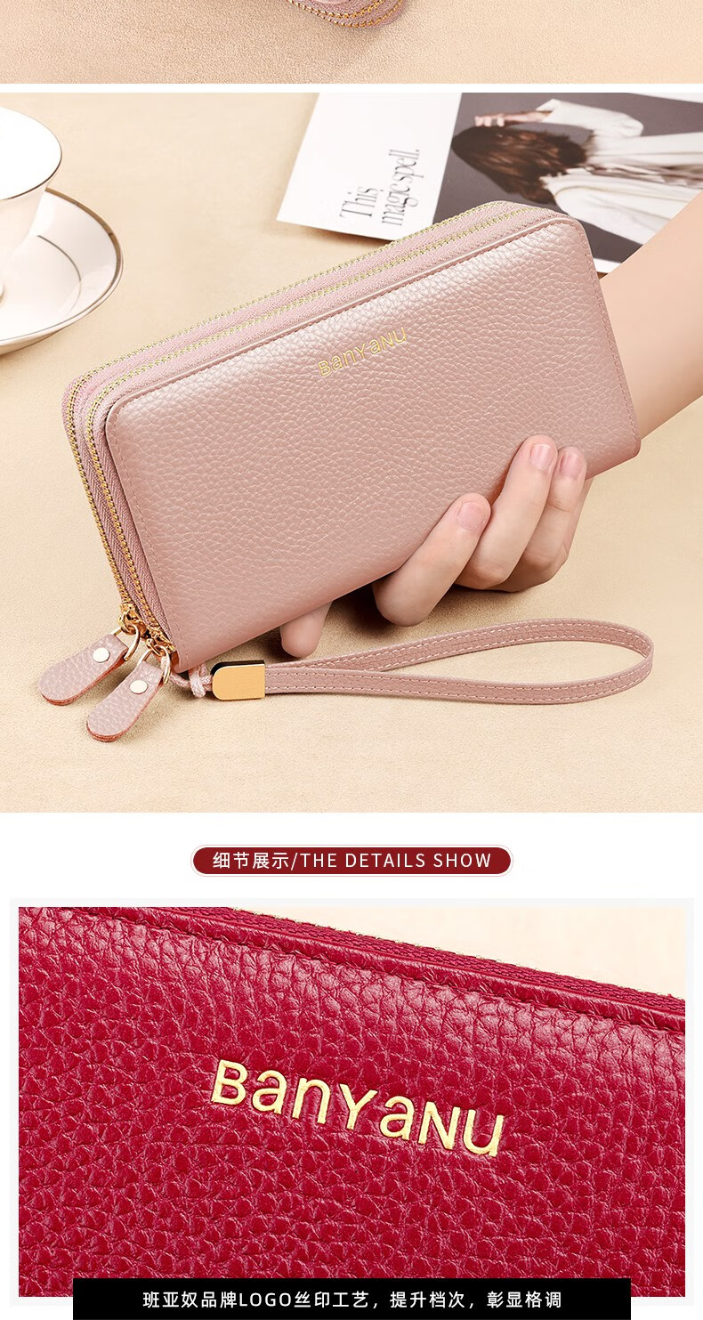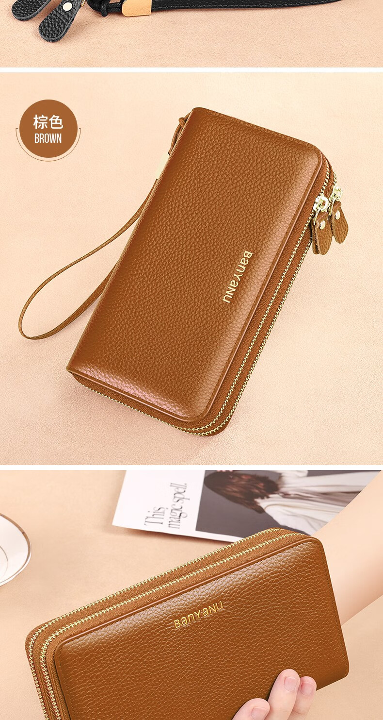Scarecrow (MEXICAN) Wallet Women's Long Style 2024 New Fashion Large Capacity First Layer Cowhide Wallet Double Zipper Genuine Leather Clutch Burgundy - Single Zipper First Layer Cowhide Anti-Theft Brush