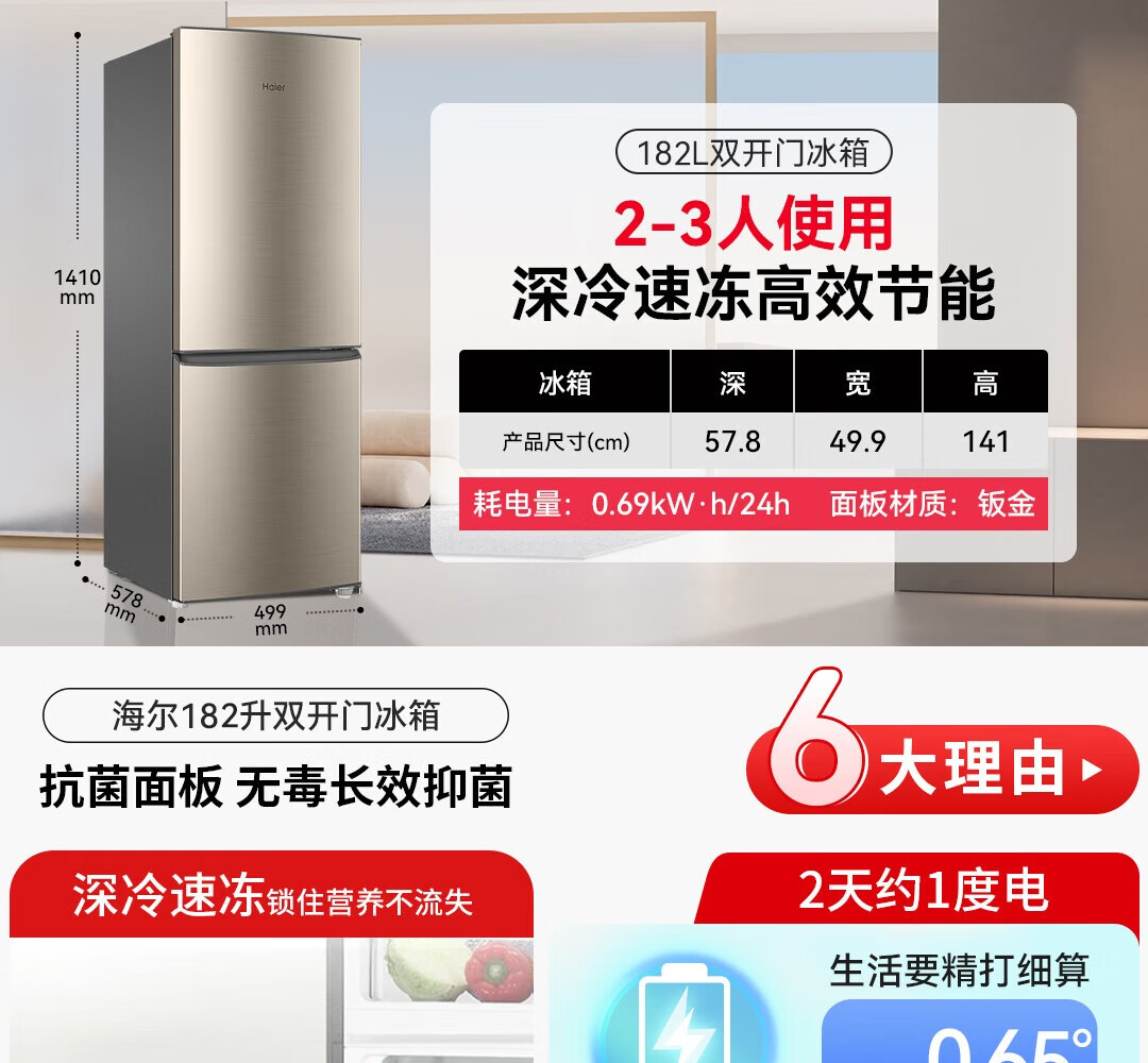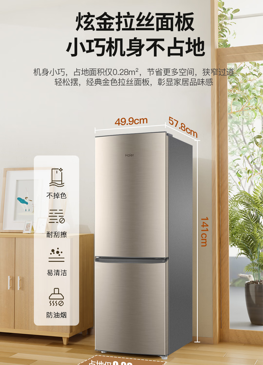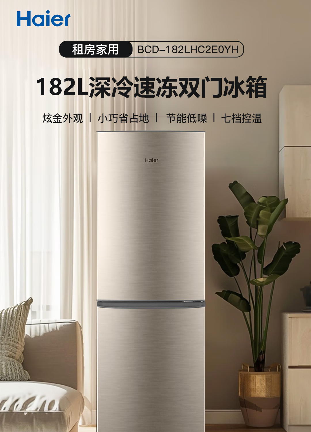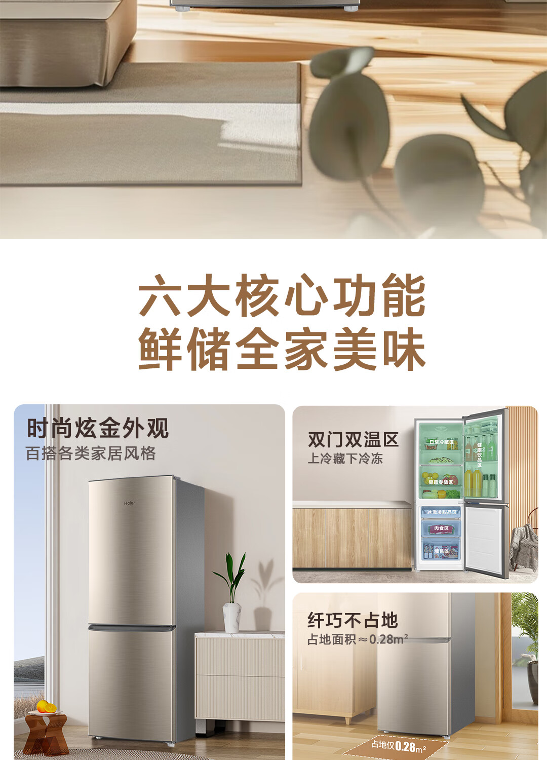 Haier Haier refrigerator double-door air-cooled frost-free household refrigerator small new level energy efficiency smart energy-saving 1-2 people two-door small refrigerator refrigeration and freezing rental dual-use 170 liter air-cooled frost-free/DEO clean flavor fresh-keeping power-saving refrigerator 1.41 meters high