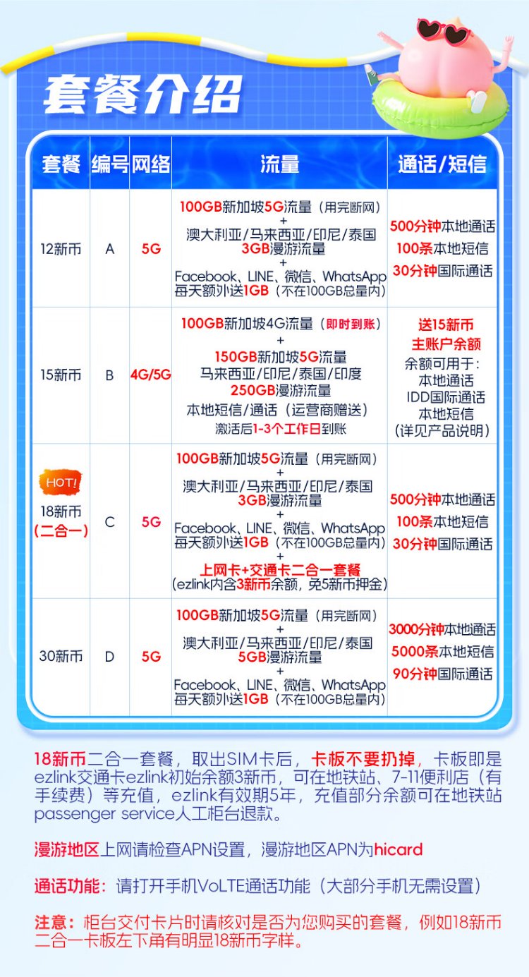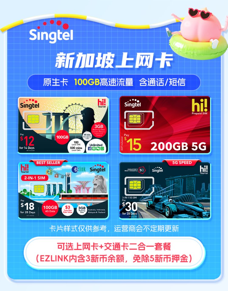 Singapore Singtel phone card 5G high-speed Internet card with self-pickup of calls and text messages, optional transportation card, self-pickup at Changi Airport, 7 days 103GB (total total) free calls/texts (Package A)