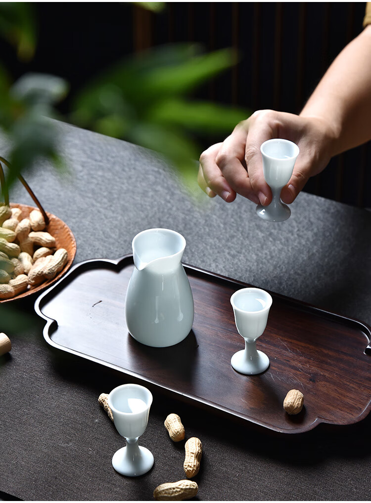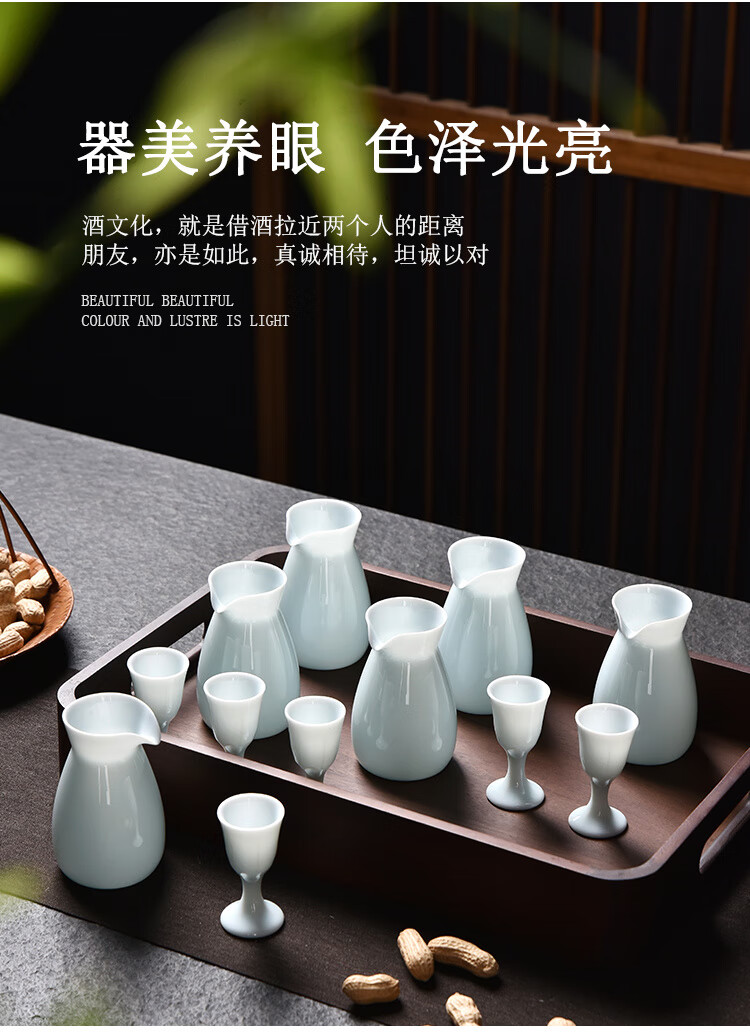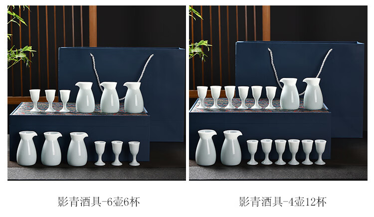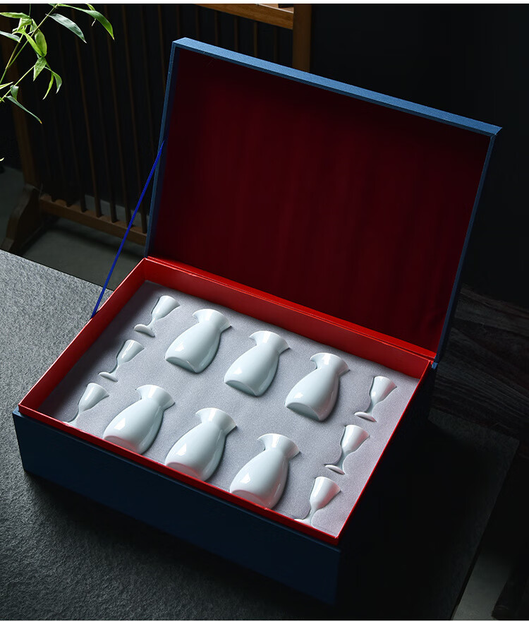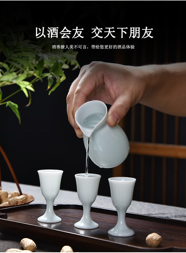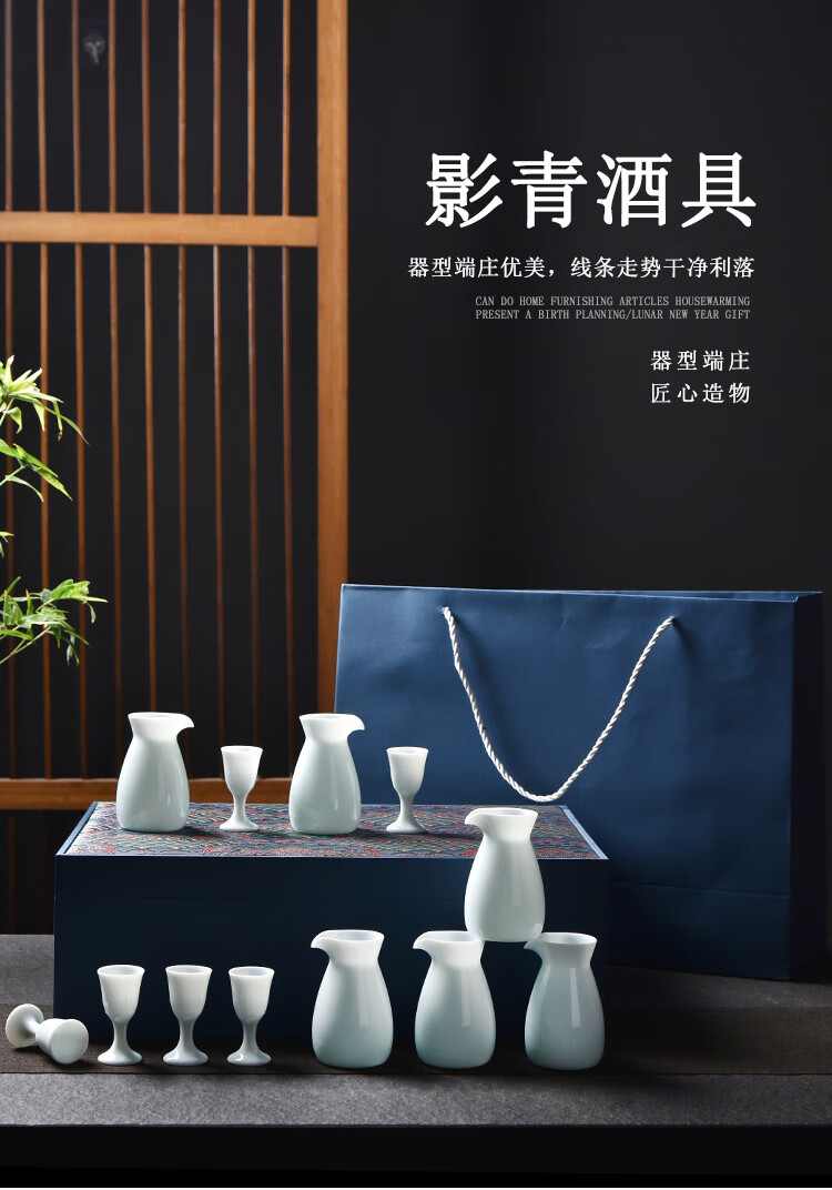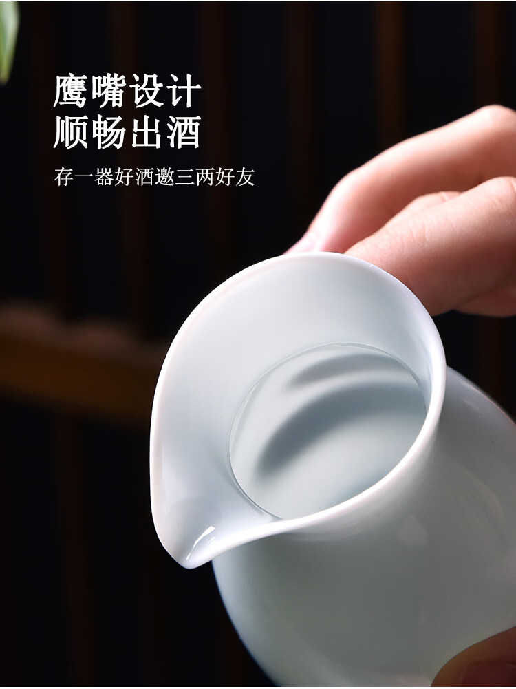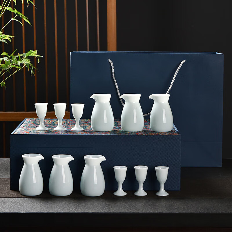 Xiongwochi high-end white wine cup set mutton fat jade porcelain wine set ceramic household wine divider Chinese style spirit cup gift box Yingqing wine set-6 pots 6 cups gift box