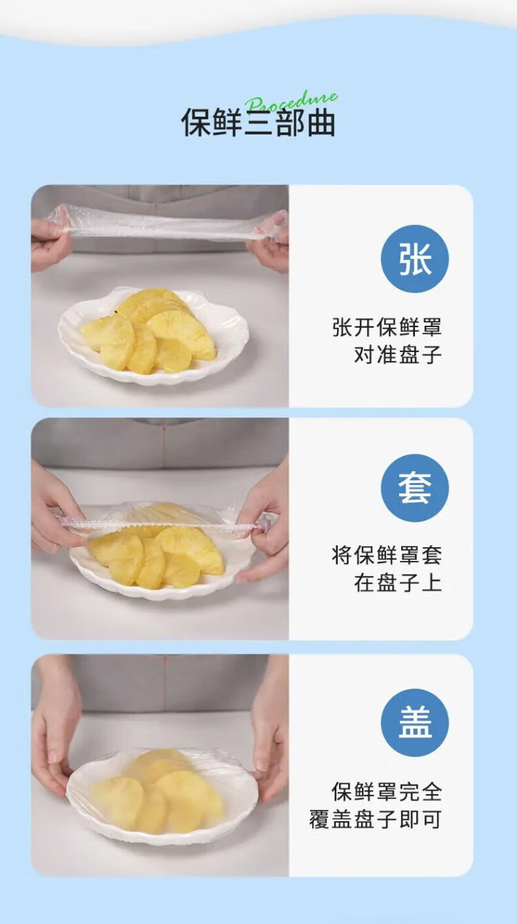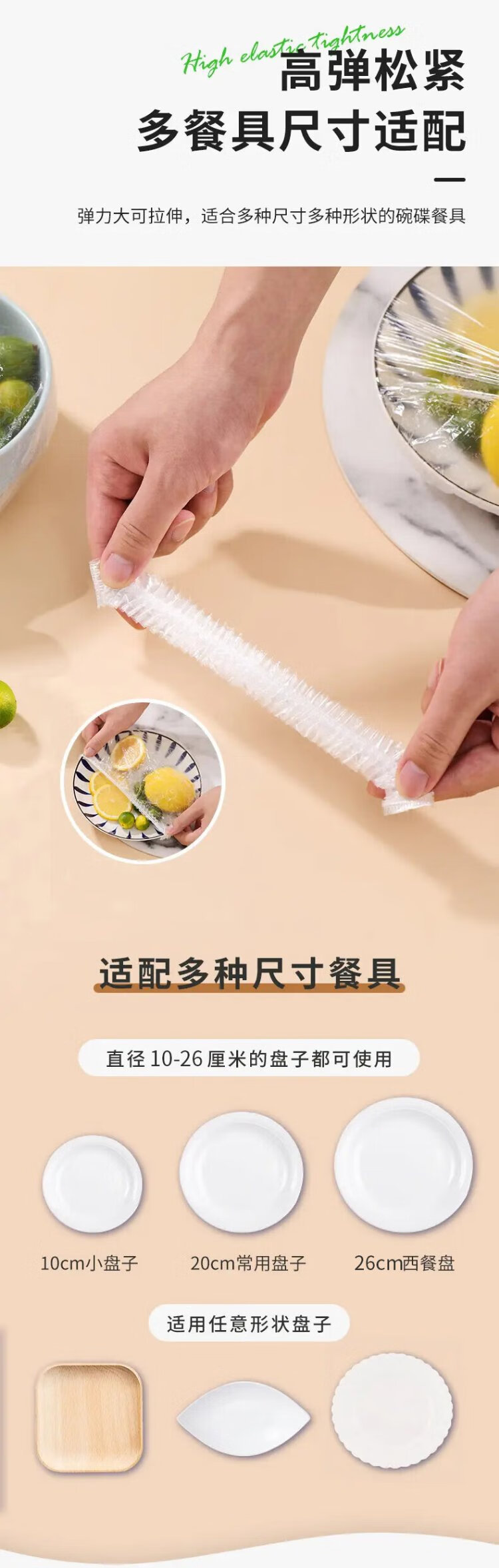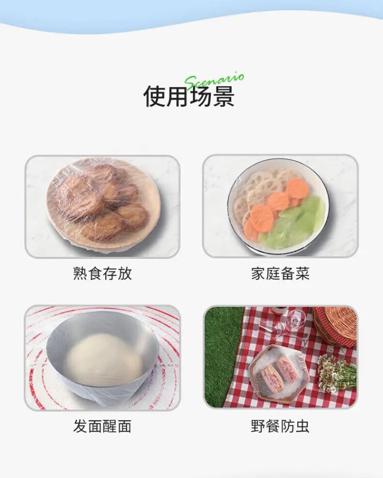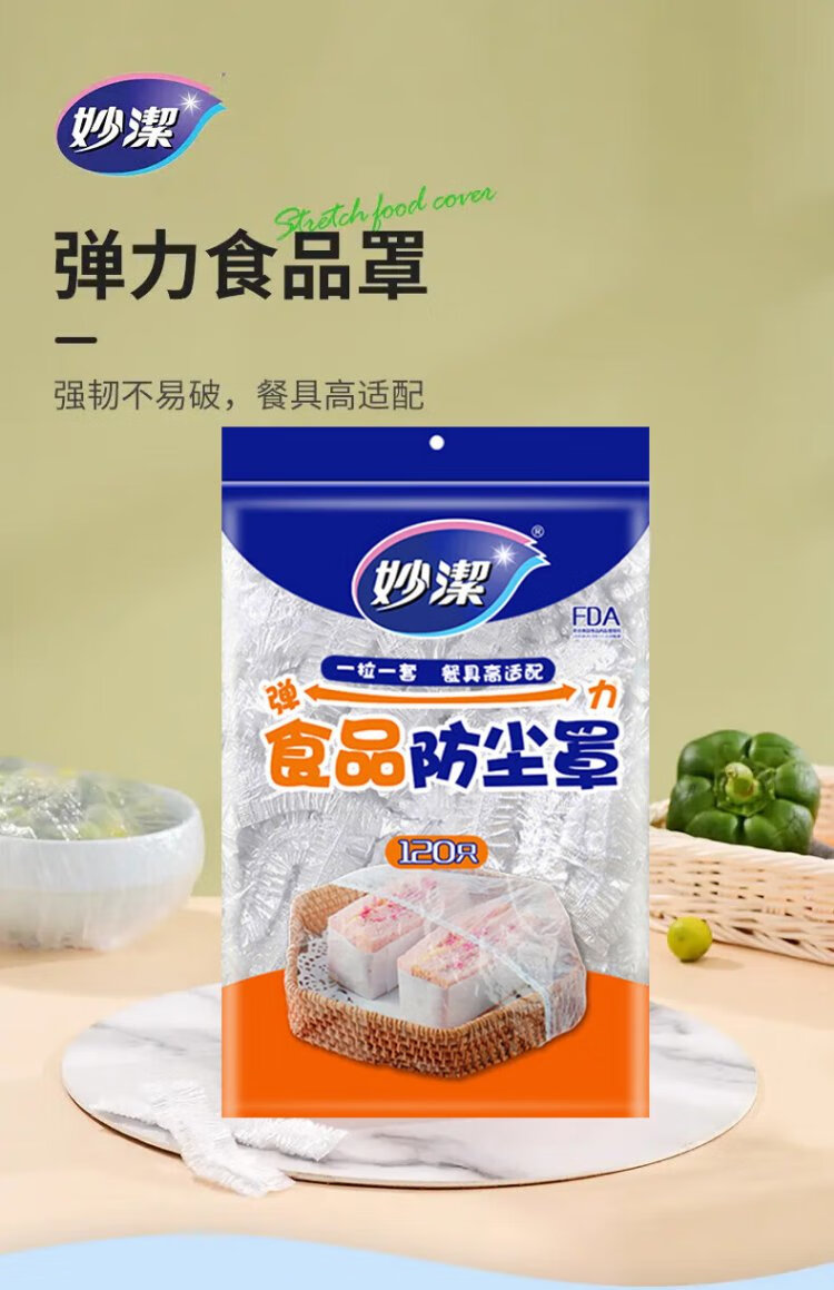 MIAOJIE disposable cling film cover food-grade safety cover with elastic mouth fresh-keeping bag leftover food cover bowl shower cap style 1 bag total 120 pieces