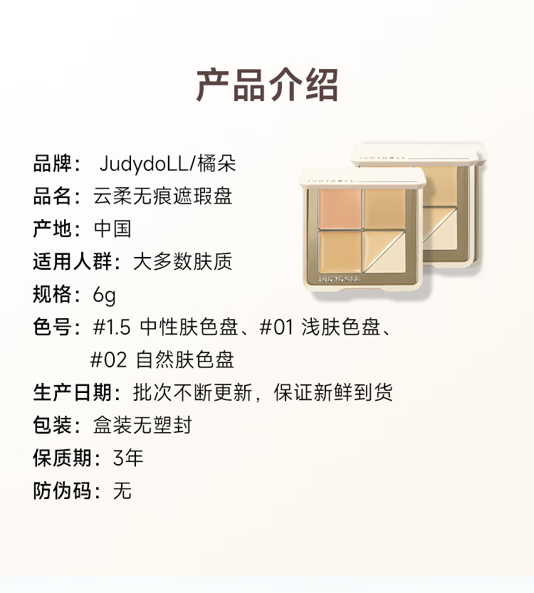 Juduo Cheng Shi'an Judydoll Juduo Concealer Concealer Plate for Women Covers Spots, Facial Acne Marks and Brightens Tear Troughs #1.5 Normal Skin