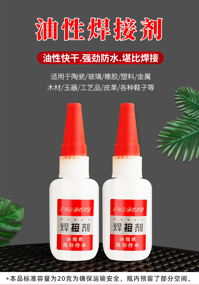 Glue is stronger than 502 strong glue, waterproof and quick-drying welding agent. Special glue for shoes, wood, plastic and glass. Glue content: 20g 1 bottle