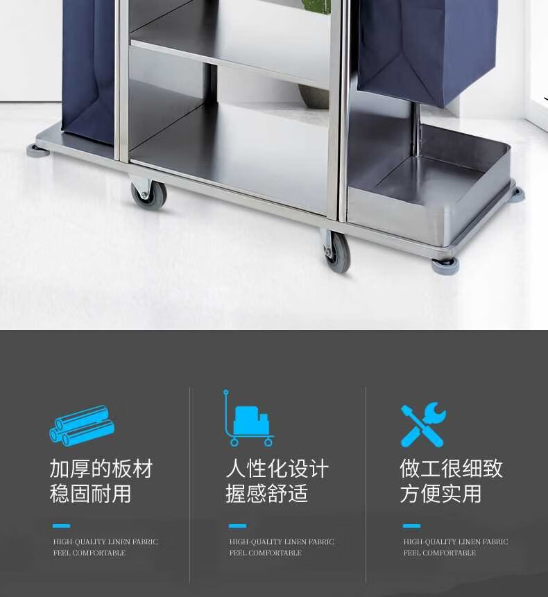 Min Gongju Hotel Linen Cart Hotel Room Service Cart Stainless Steel Cart Double-sided Door Cart Cleaning and Cleaning Car Work Cart Standard Single Side 4-inch Ordinary Wheels Detail Picture 2