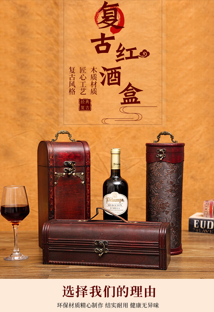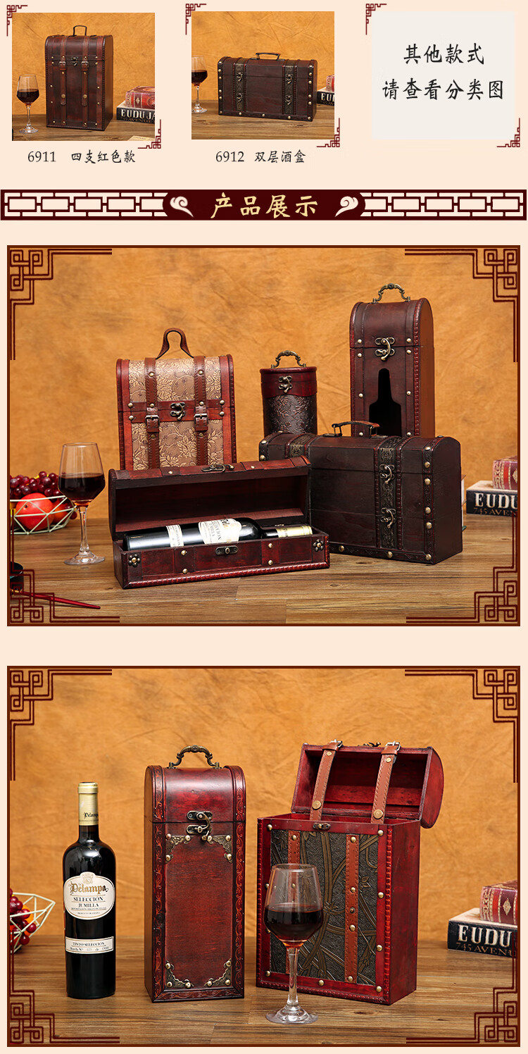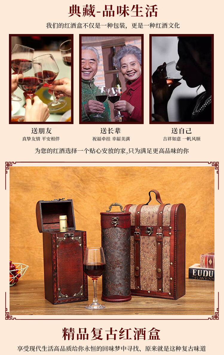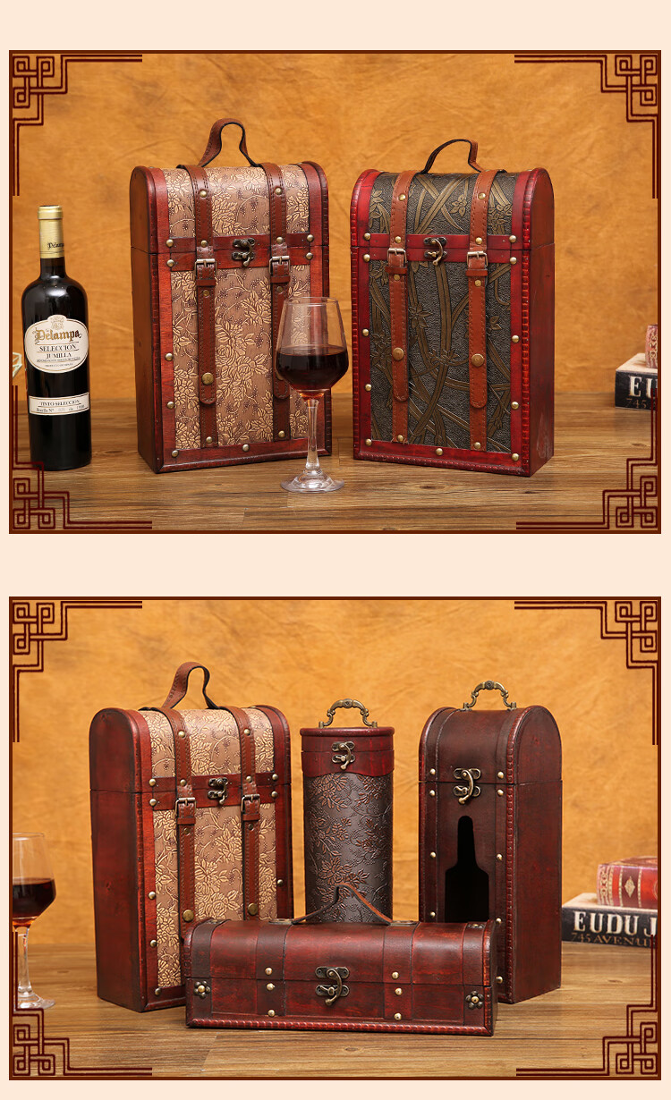 CLCEY red wine box single and double wine gift box sealing wine box wedding high-end packaging box wooden gift box empty box 001 style - red