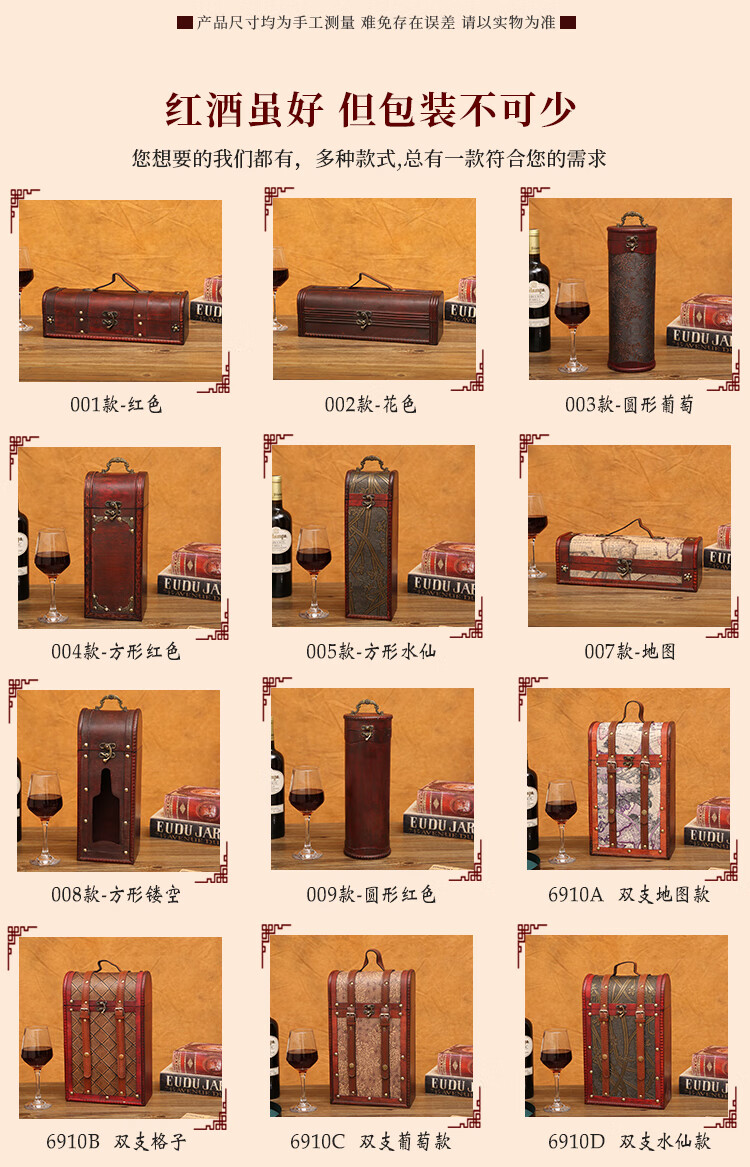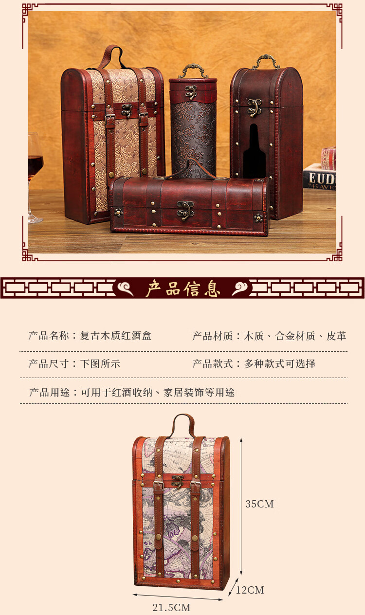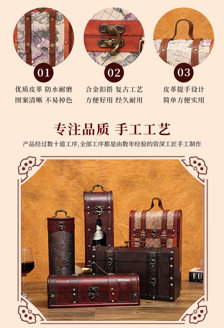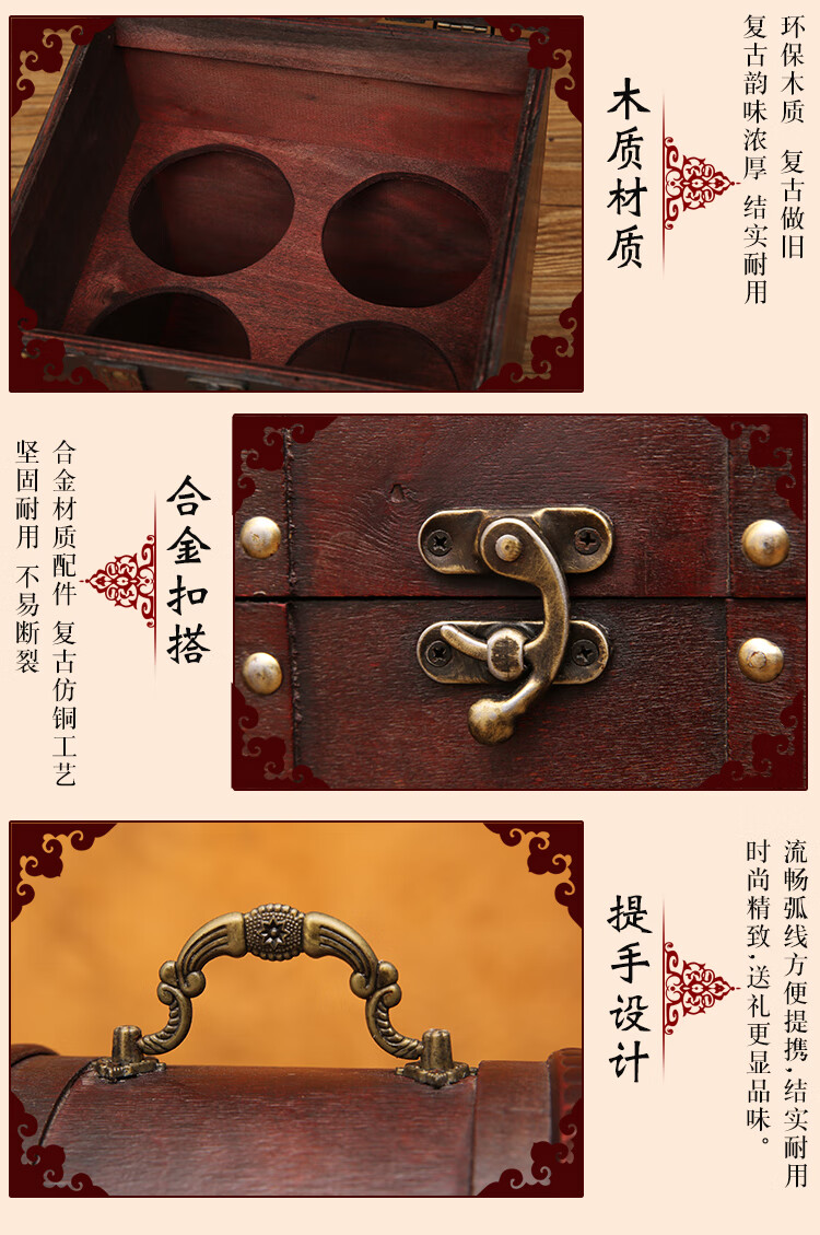 CLCEY red wine box single and double wine gift box sealing wine box wedding high-end packaging box wooden gift box empty box 001 style - red