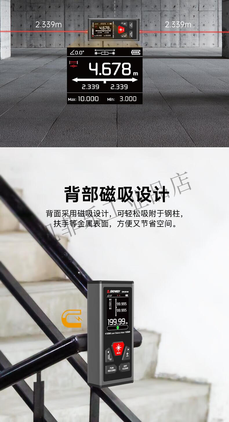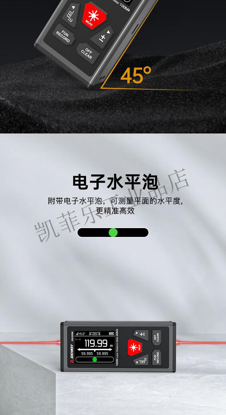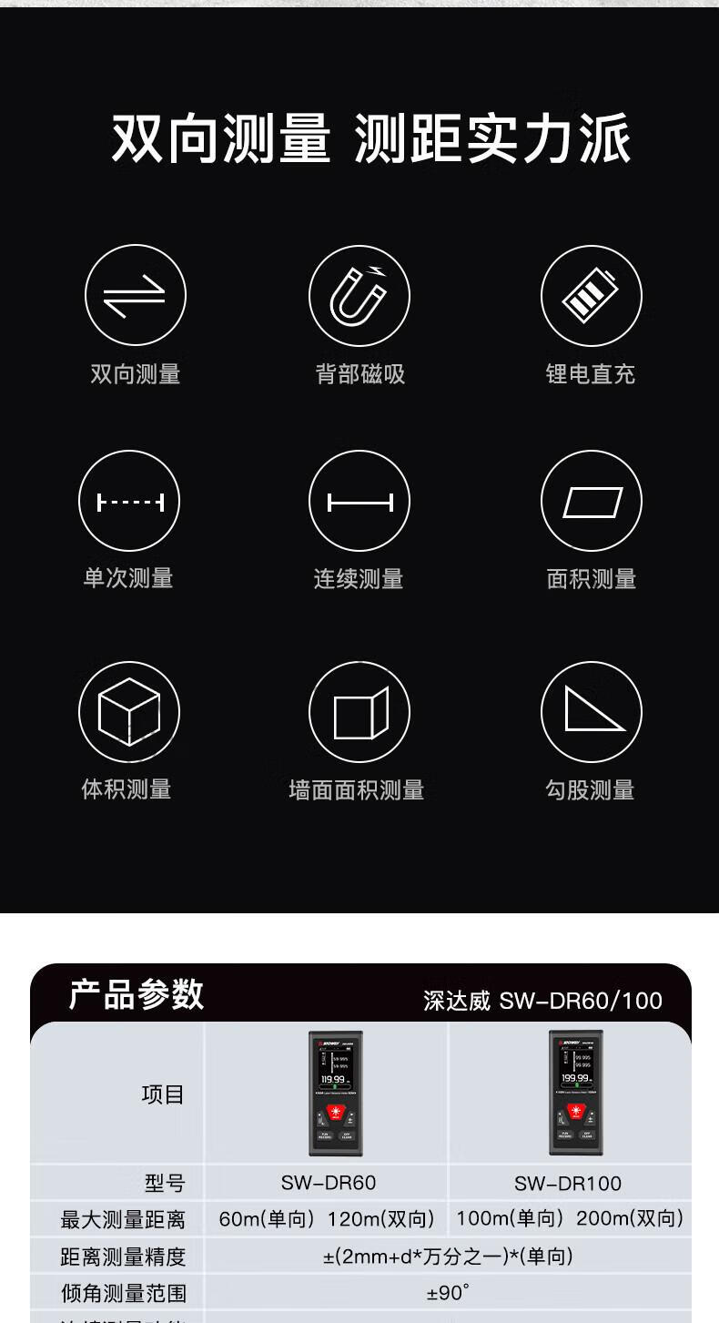 Wilo Shendawei two-way laser range finder 200 meters electronic ruler measuring instrument back magnetic SW-DR60 (120 meters lithium battery two-way laser model)