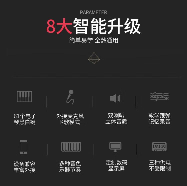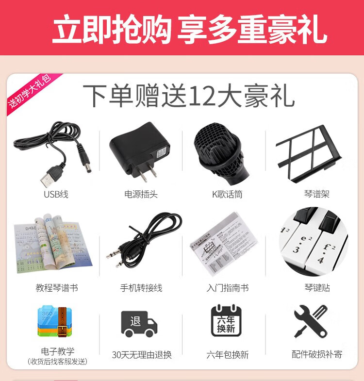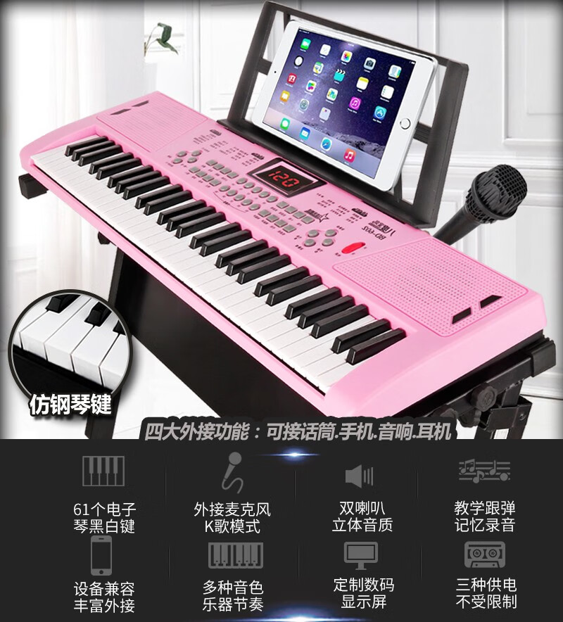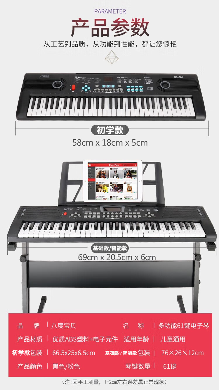Octave Baby 61-key multi-function professional electronic keyboard for beginners, adults and children, kindergarten electric piano 88 basic model (pink + gift bag) standard