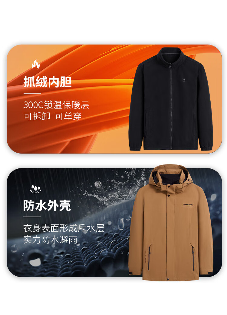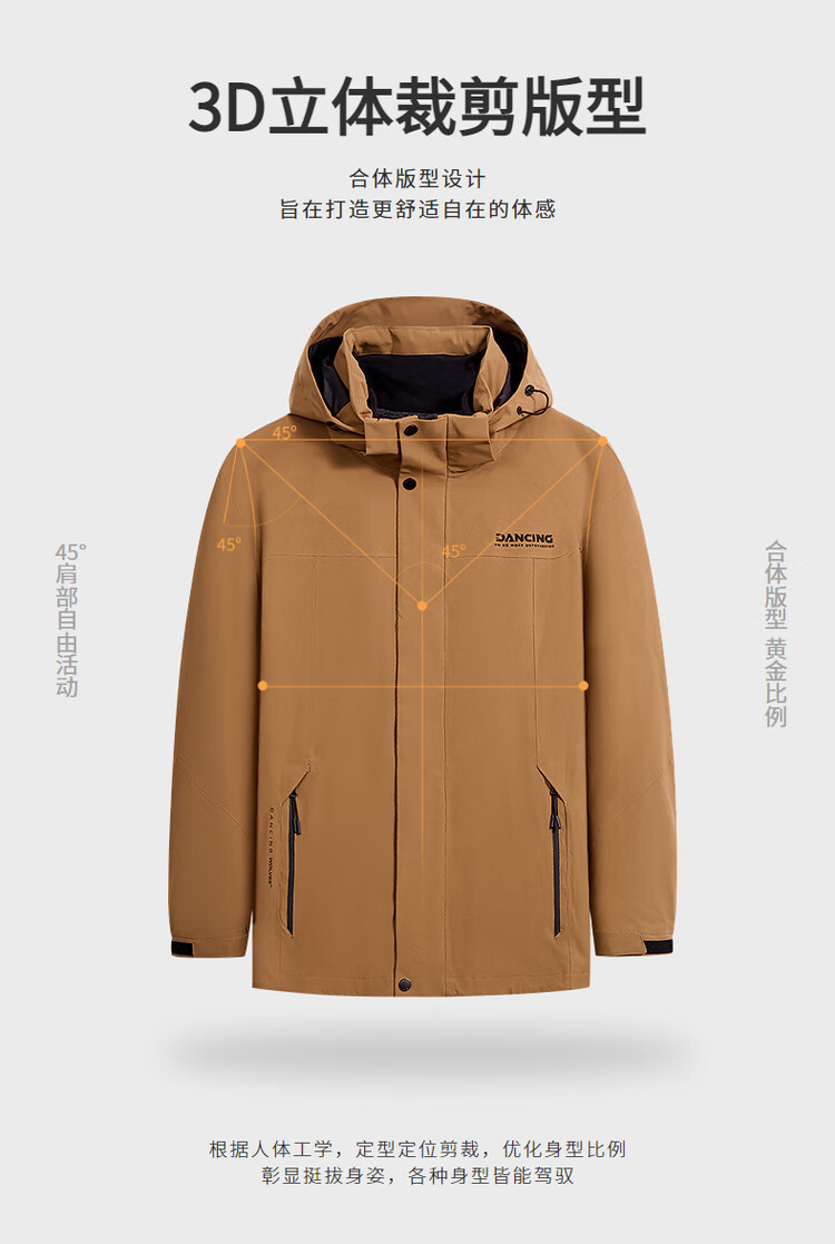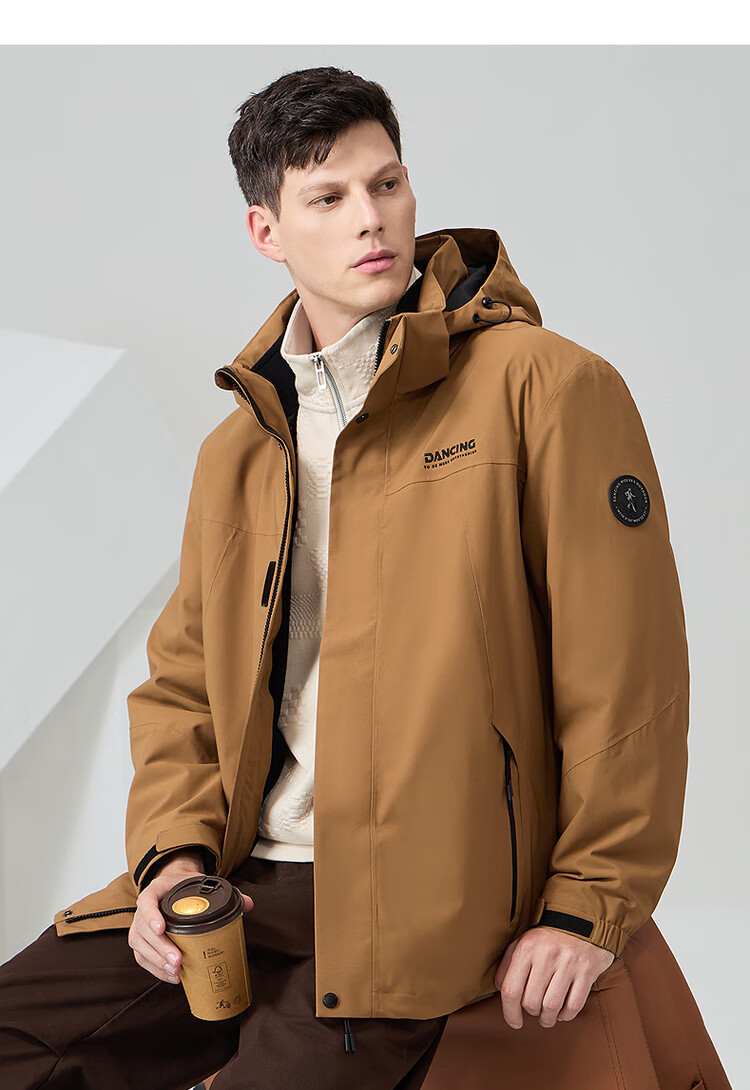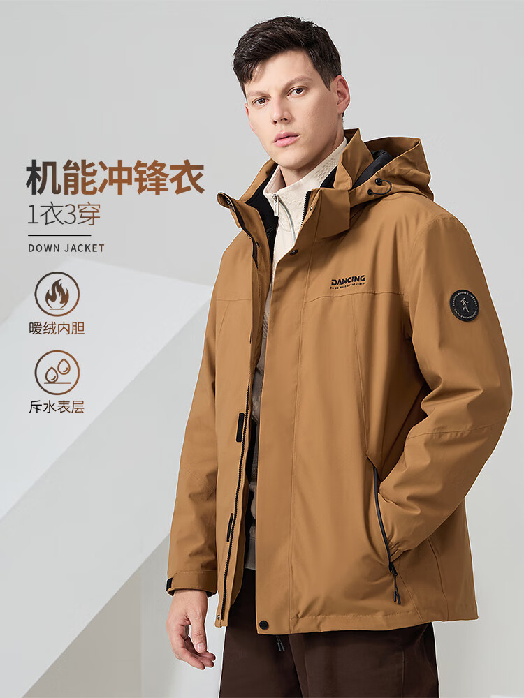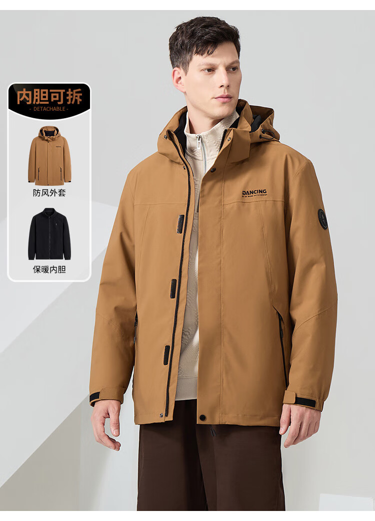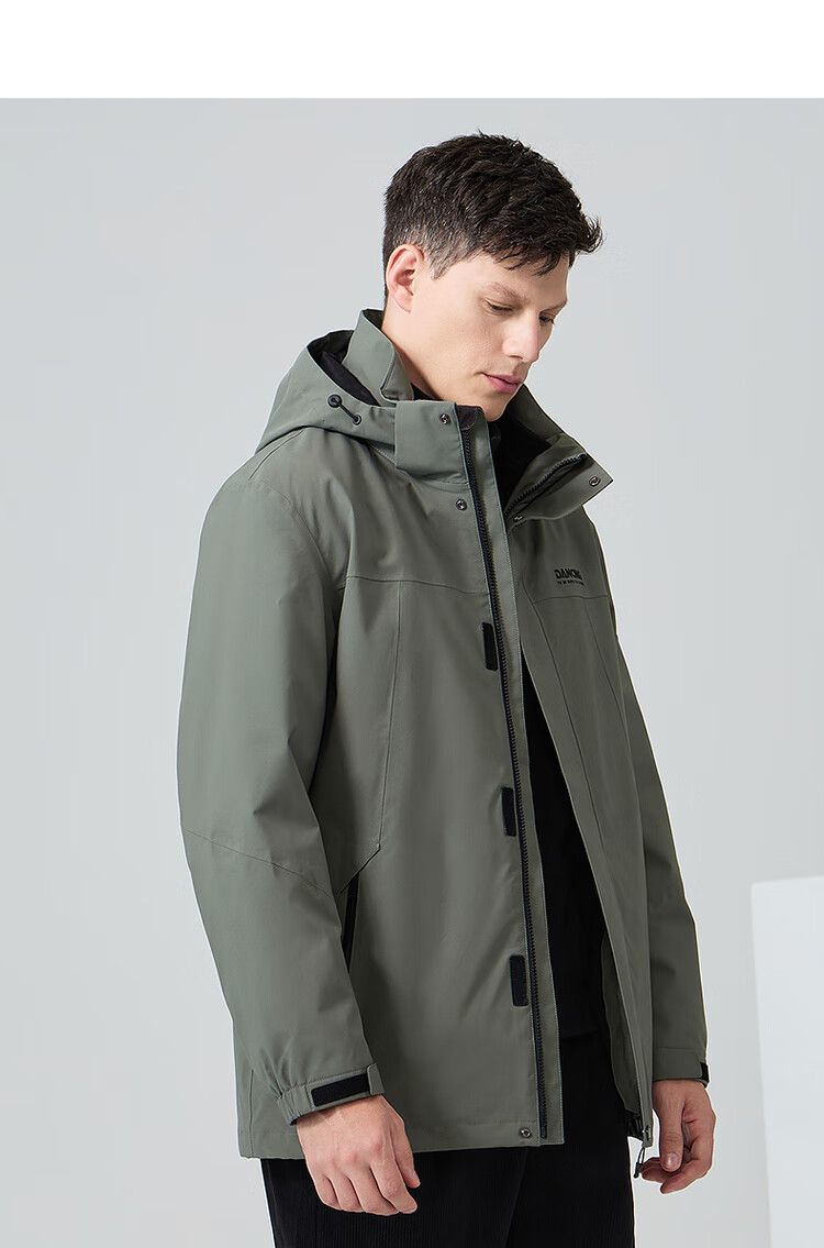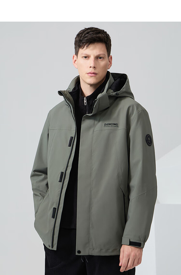 Dances with Wolves 3-in-1 Jacket with Removable Liner, Outdoor Mountaineering Wear, Camping Jacket, Fleece Liner Men's Jacket, Olive Green L (175)