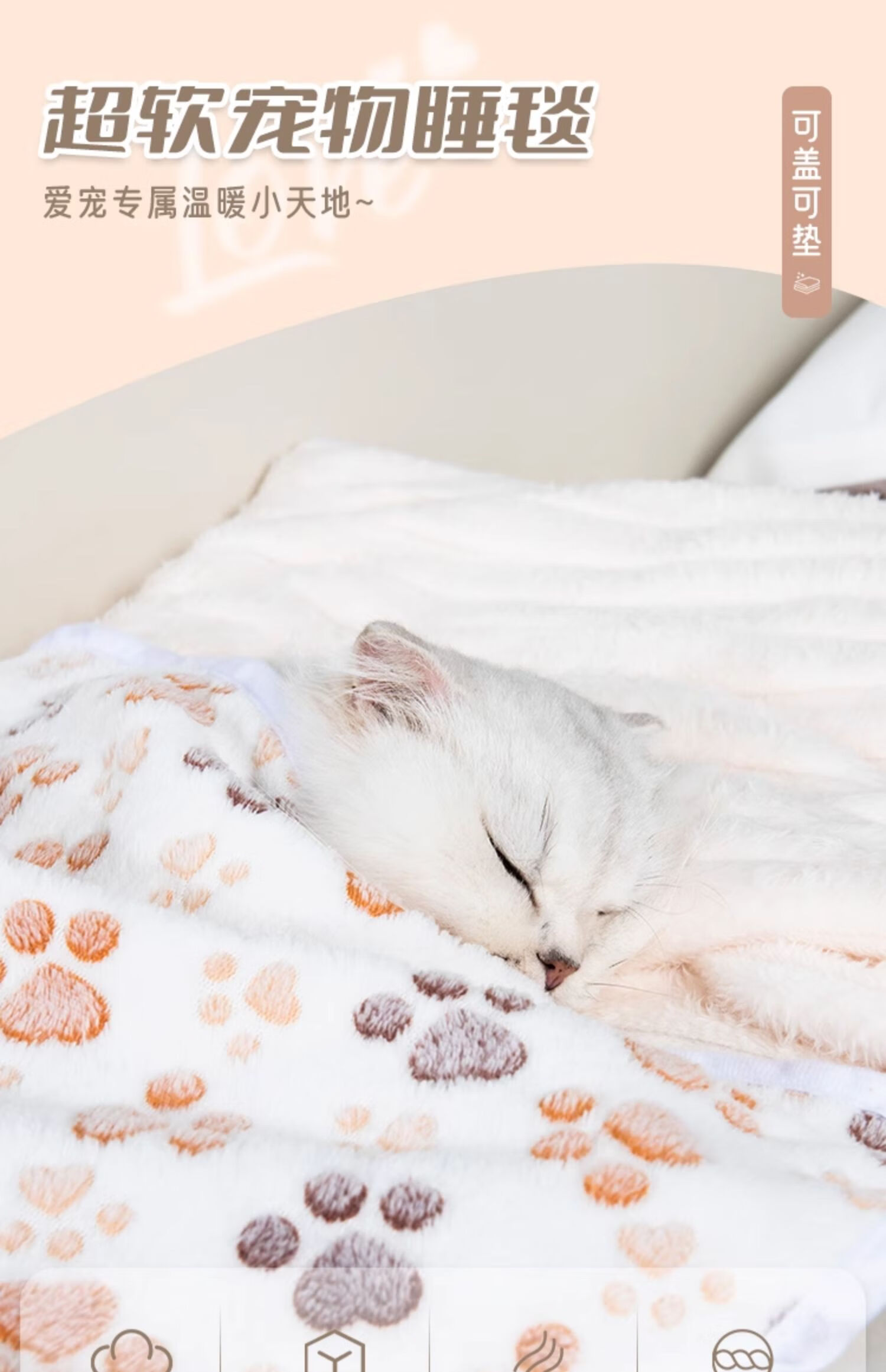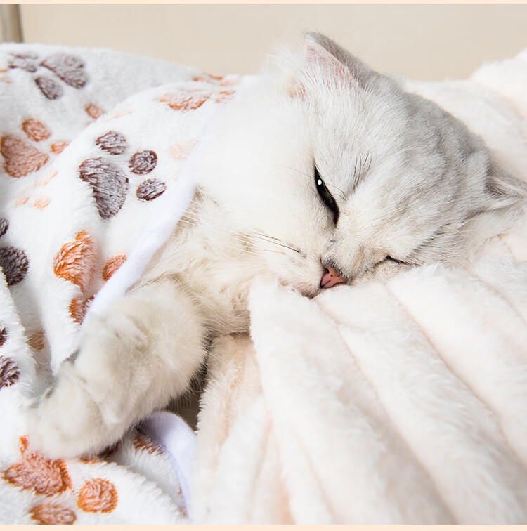 Jingdong Express Pet Blanket Air Conditioning Blanket Cat Blanket Coral Velvet Anti-Blowing and Cold Sleeping Blanket Beige 40*60cm