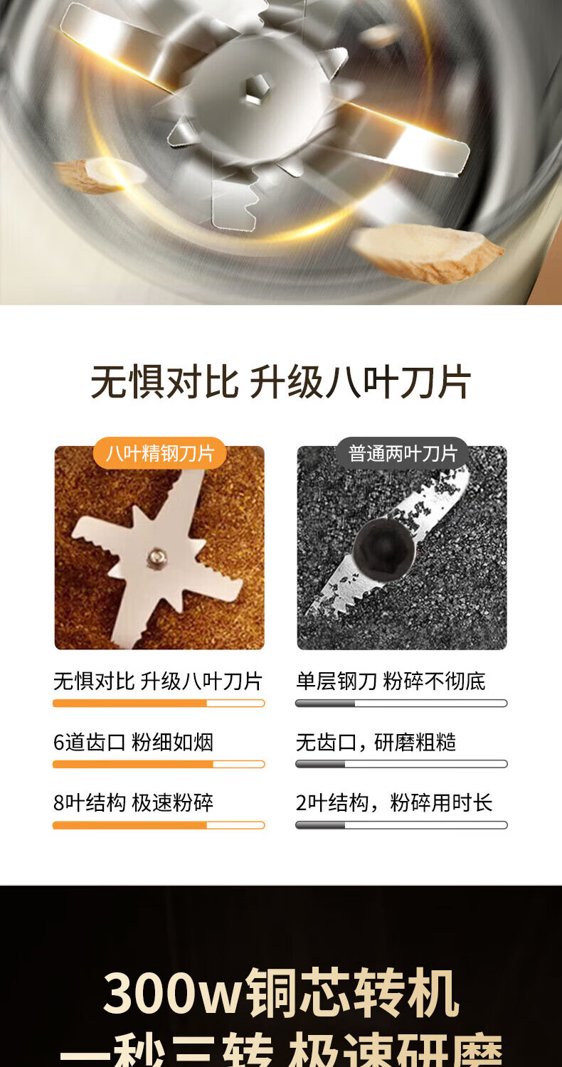 Jingyan grinder household small Chinese herbal medicine grinder grain ultra-fine grinder seasoning grinder wall breaking machine 8 pages stainless steel knife 450g + 2 sets of knives | stainless steel material 300w large motor | fast powder output | delicate and low noise
