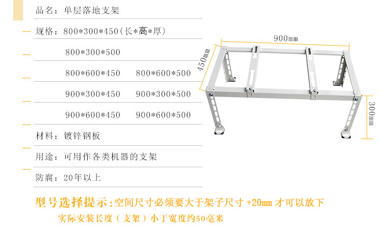 Taishilon air conditioner outdoor unit bracket floor-standing thickened stainless steel shock-absorbing and shock-proof frame angle iron frame base floor frame XE-C4 (length 900*height 300*depth 450)