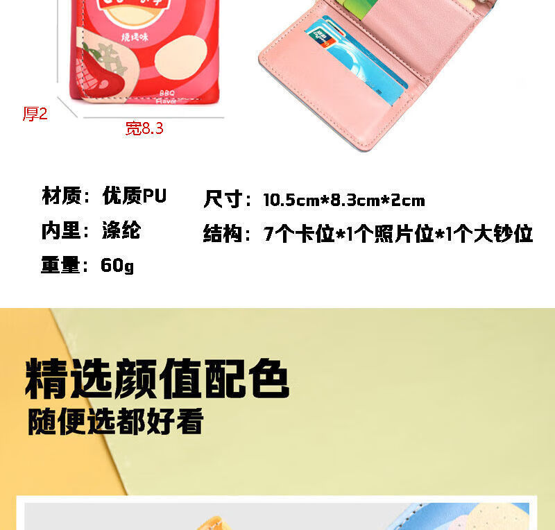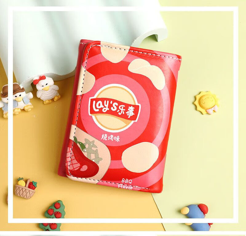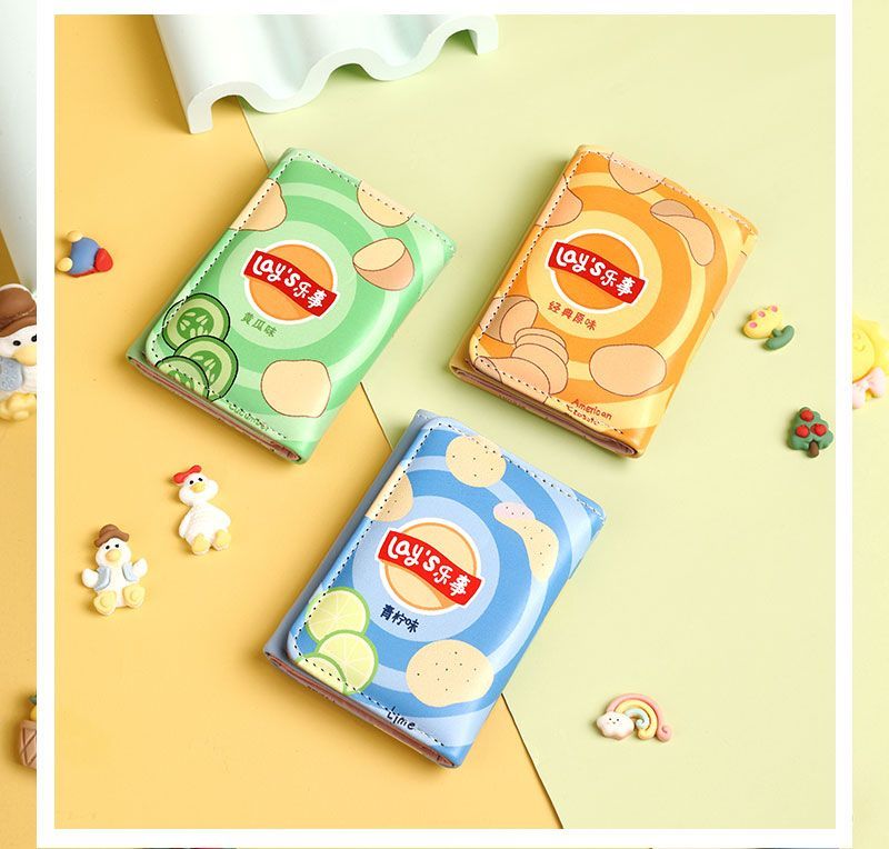 Cute Lay's Potato Chips Wallet Compact Card Holder Large Capacity Multi-Card Slot Women's Coin Purse 2025 New Short Clip Men's Niche Cucumber Style New Material No Protective Function