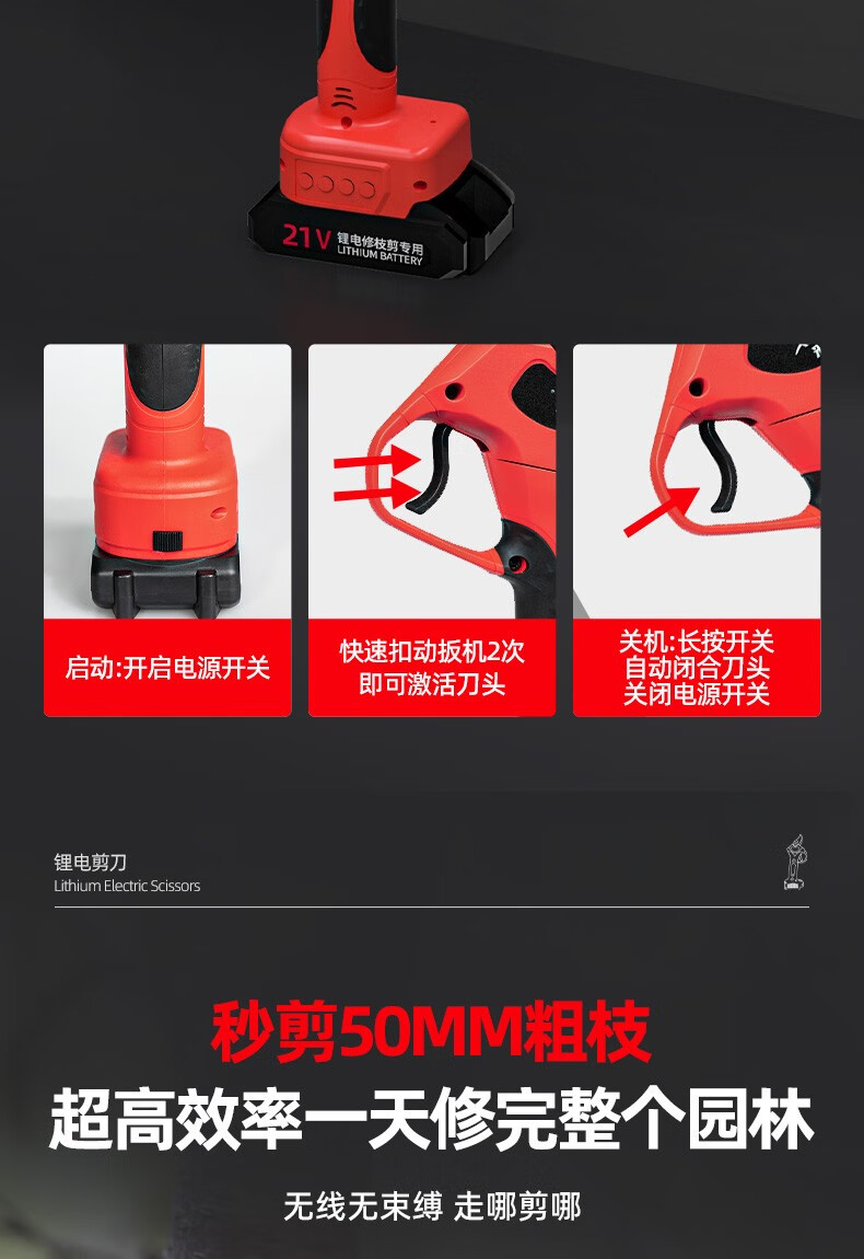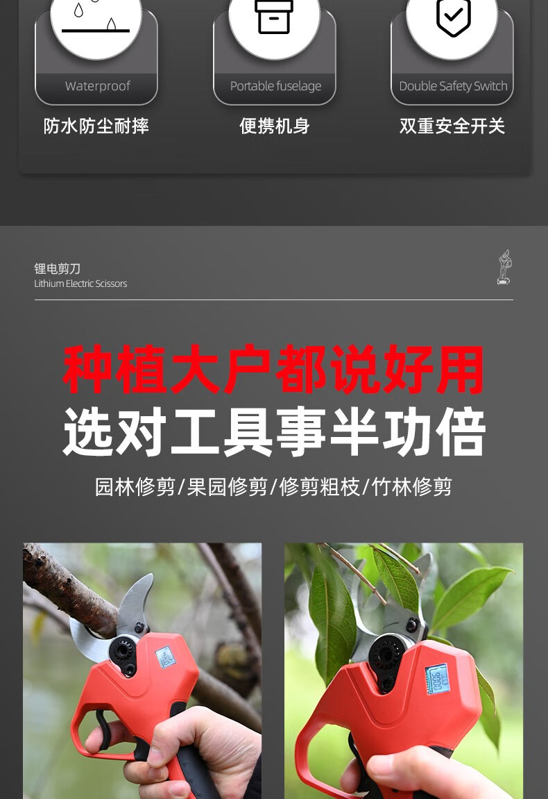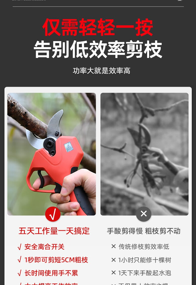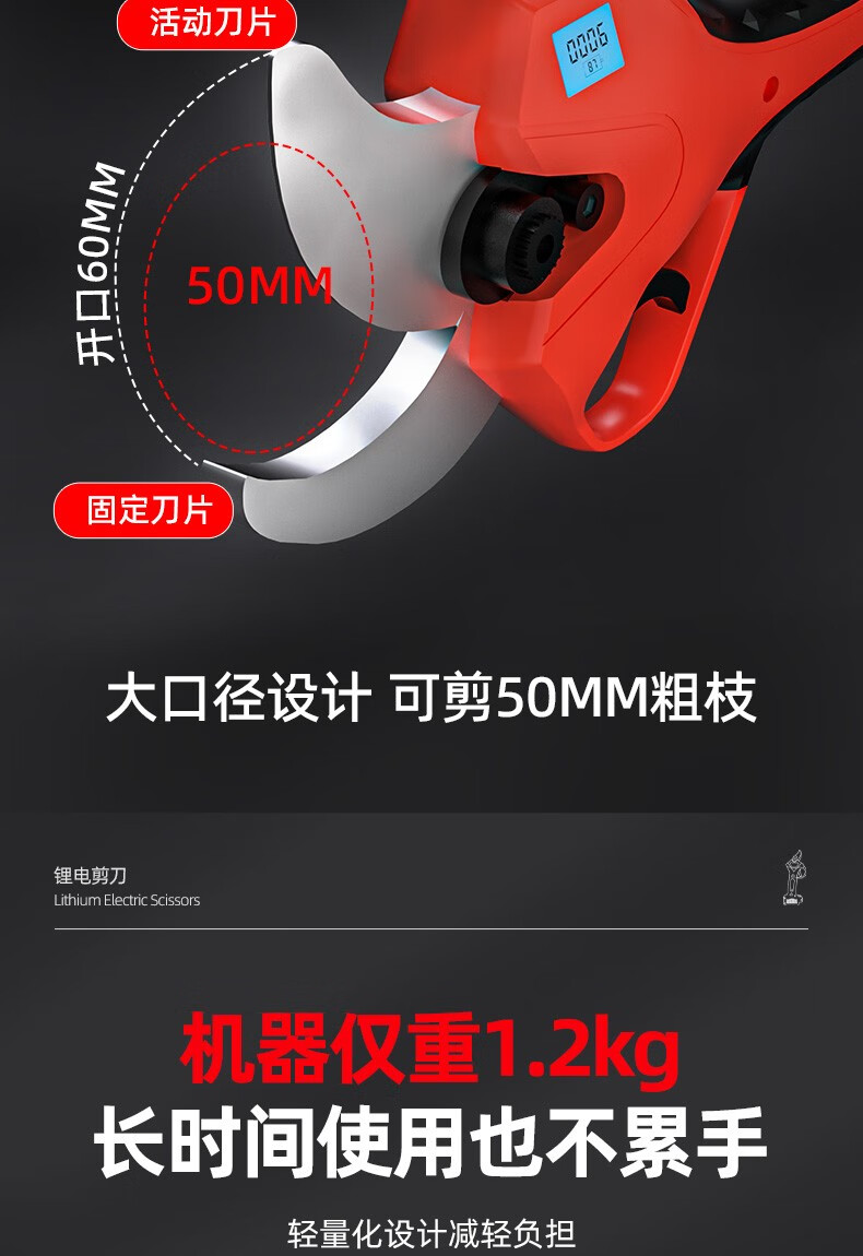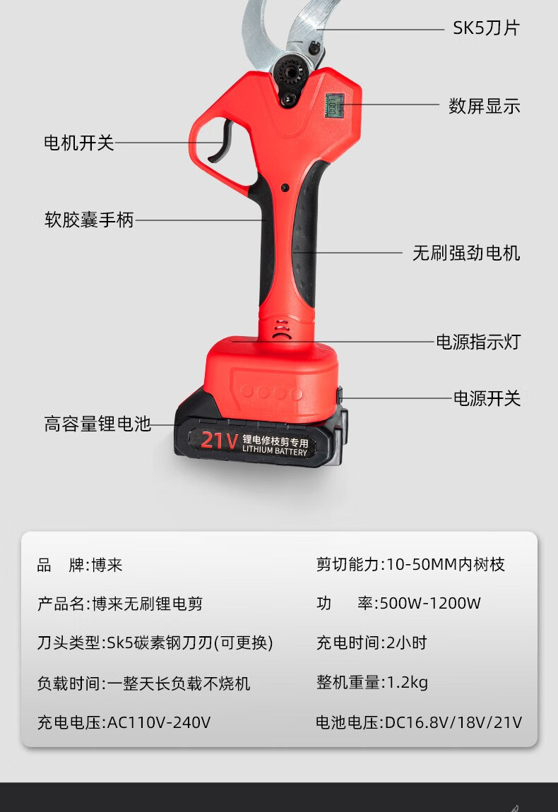 Bo Lai Brushless Electric Scissors for Fruit Trees Handheld Pruning Branch Lithium Powerful Garden Pruning Shears Electric Scissors Electric Agricultural Tools 1200W (cutting 6CM) 2 batteries per charge