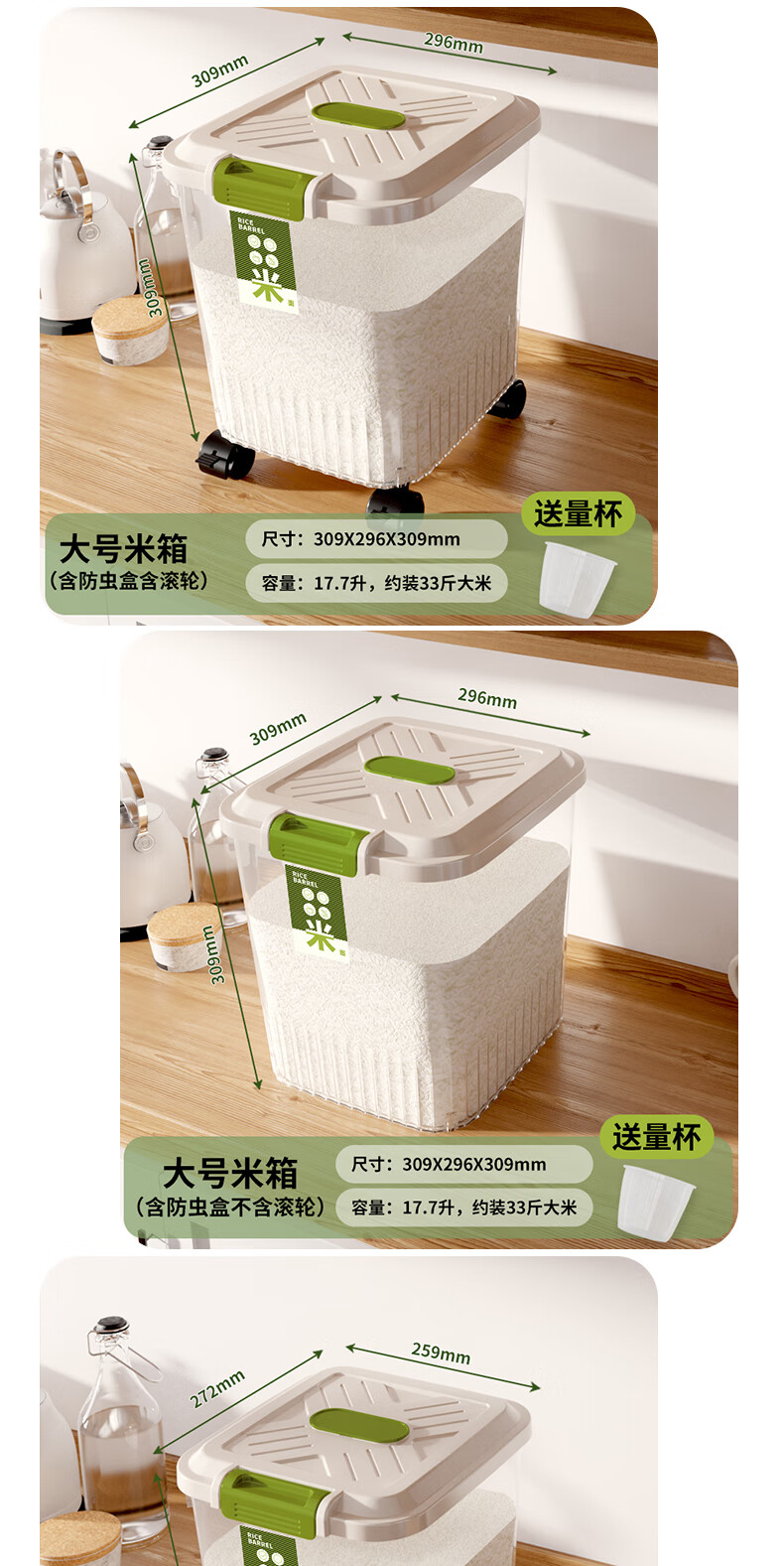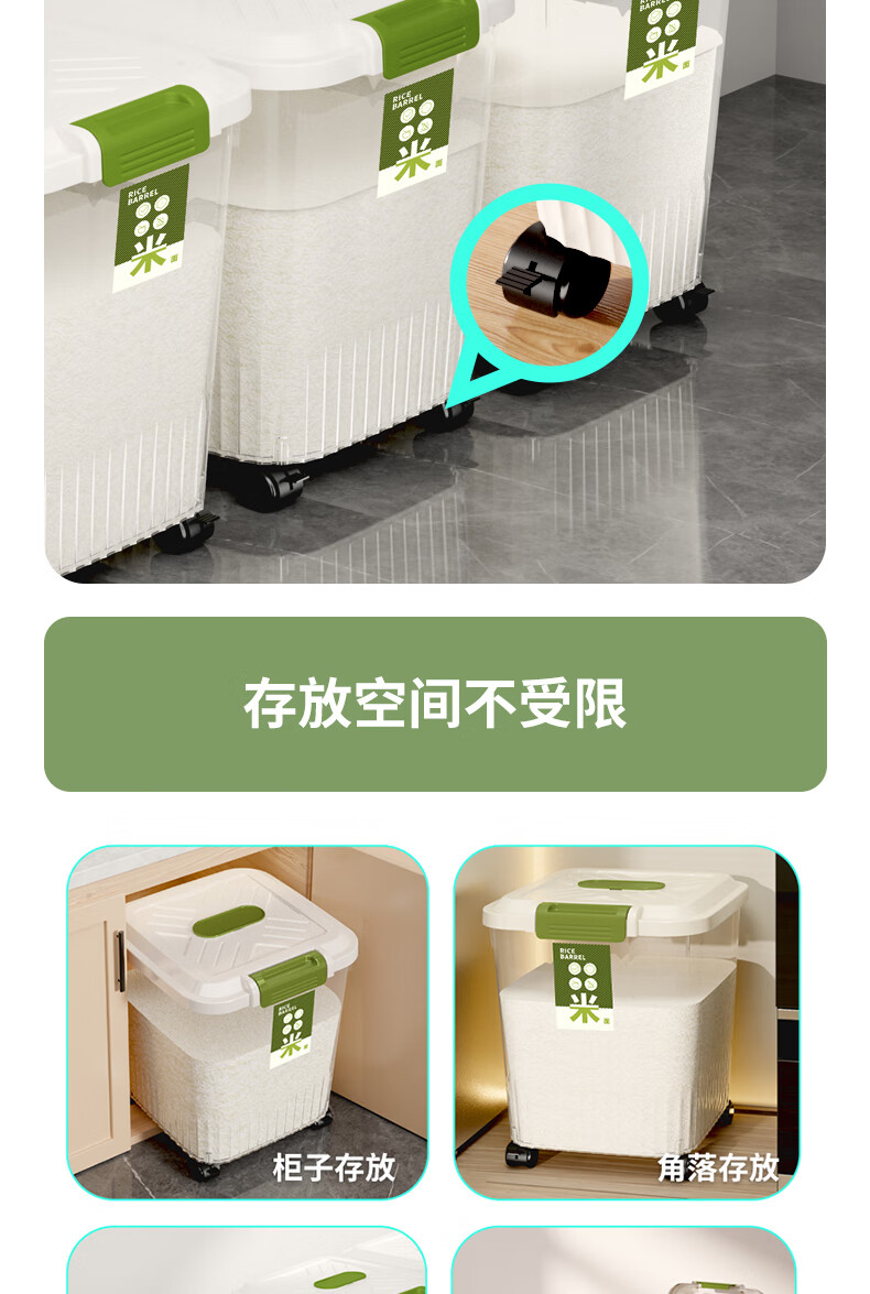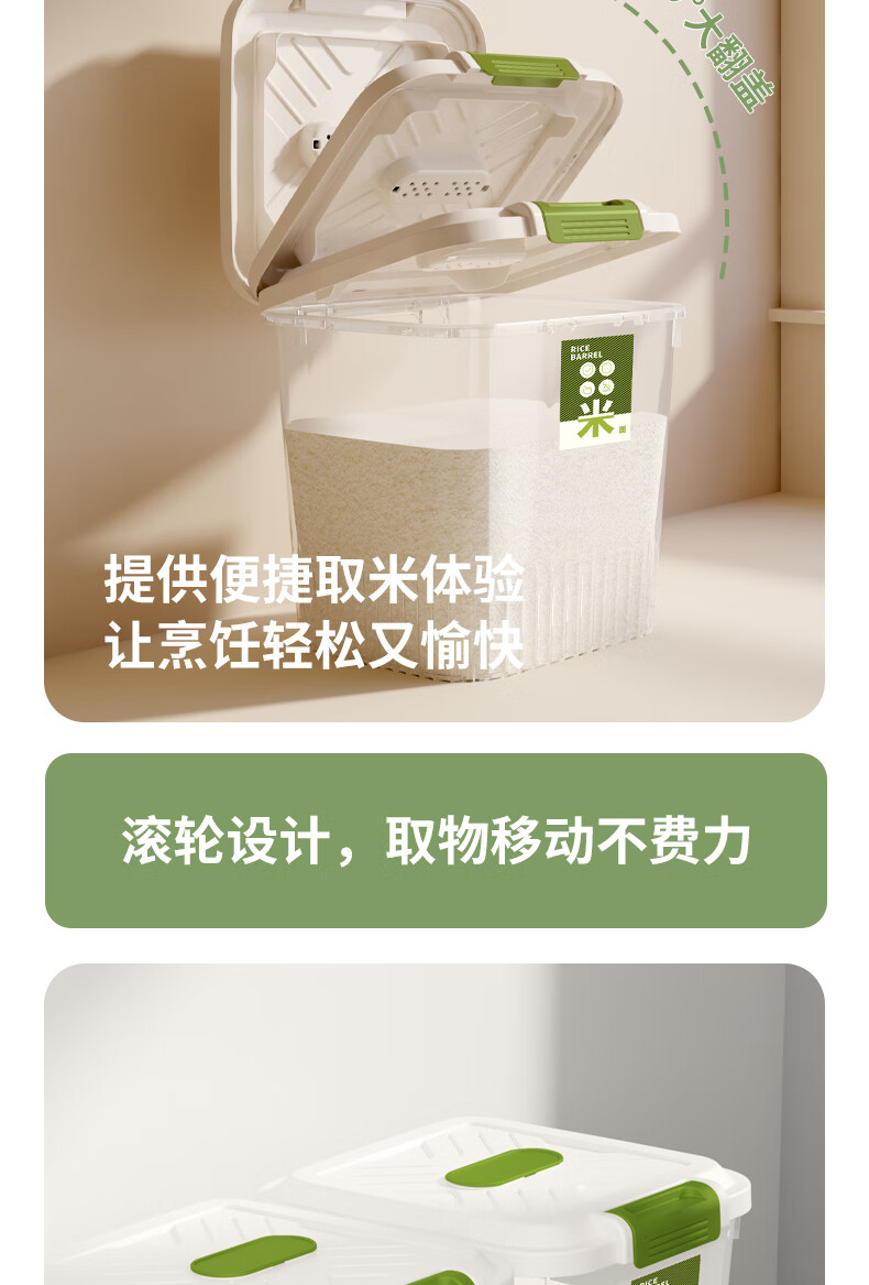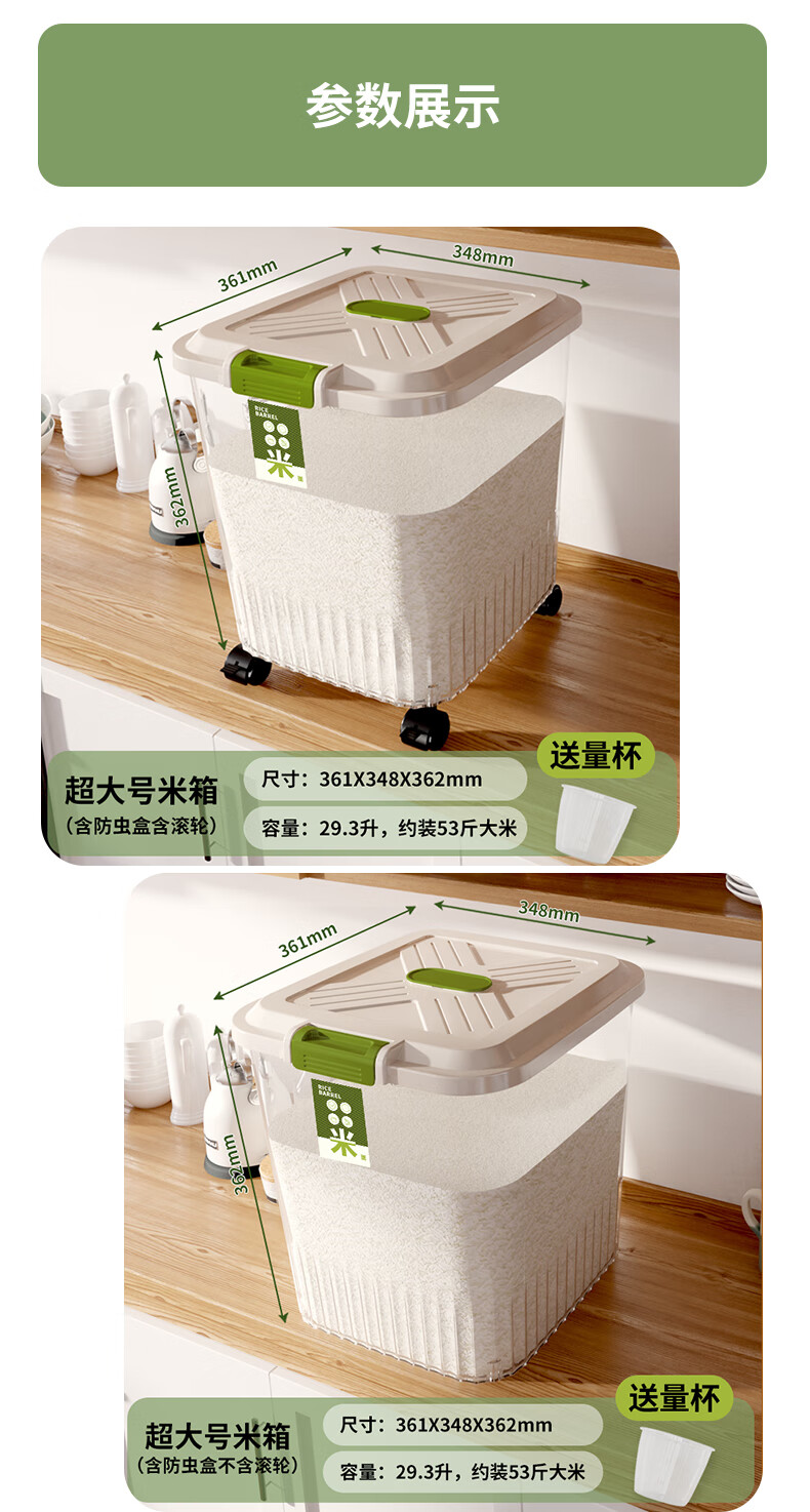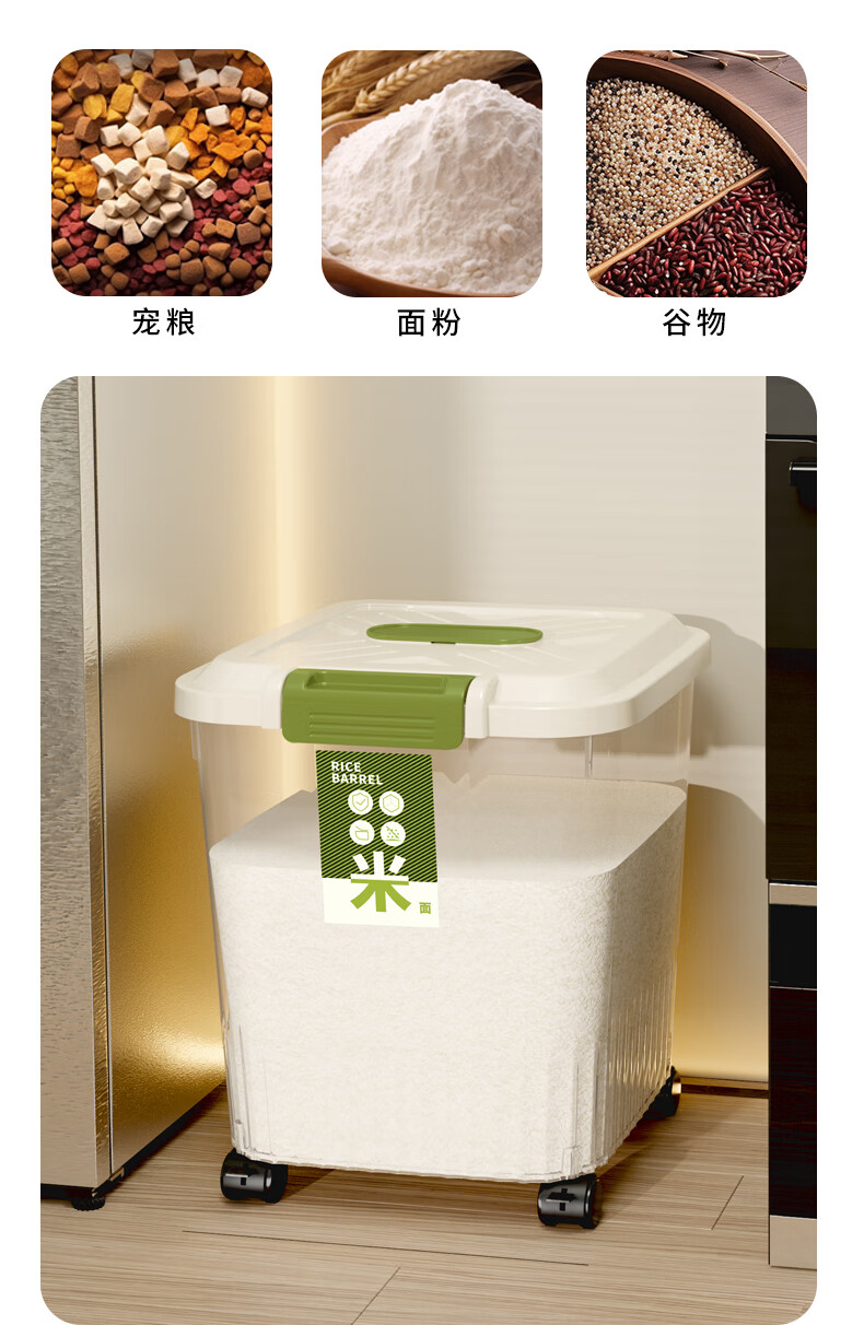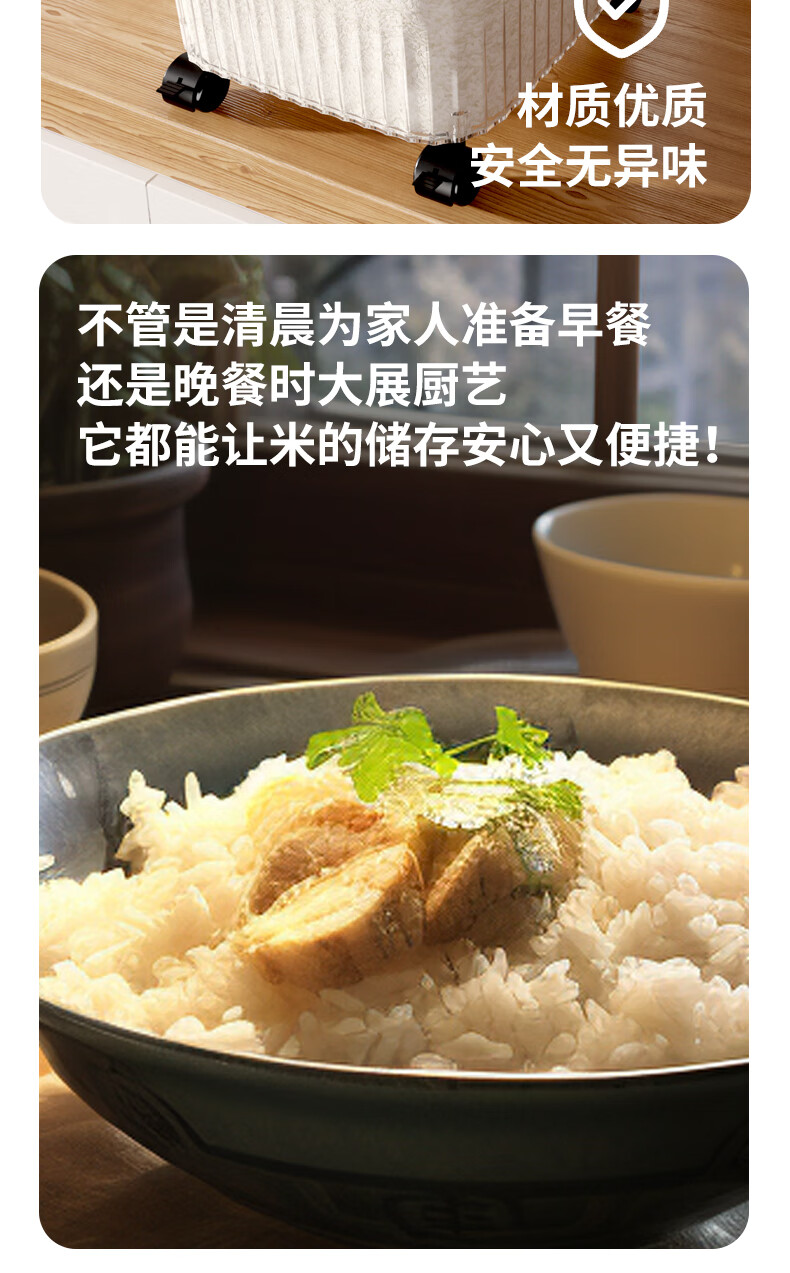 JD Logistics Household Insect-proof and Moisture-proof Sealed Food-grade Transparent Rice Bucket with Wheels Transparent-Ordinary Style 12 Jin (1 Pack)