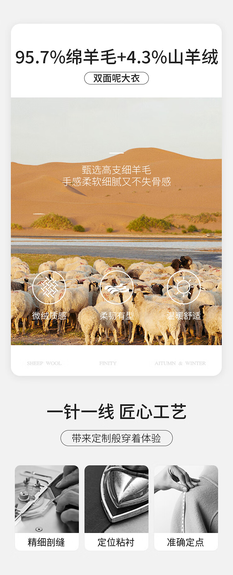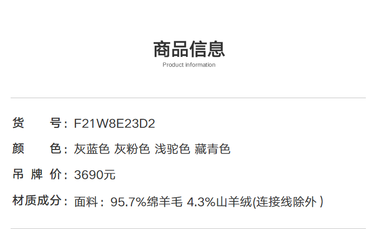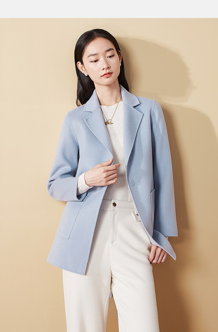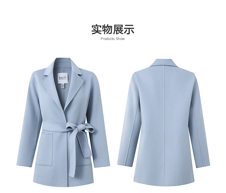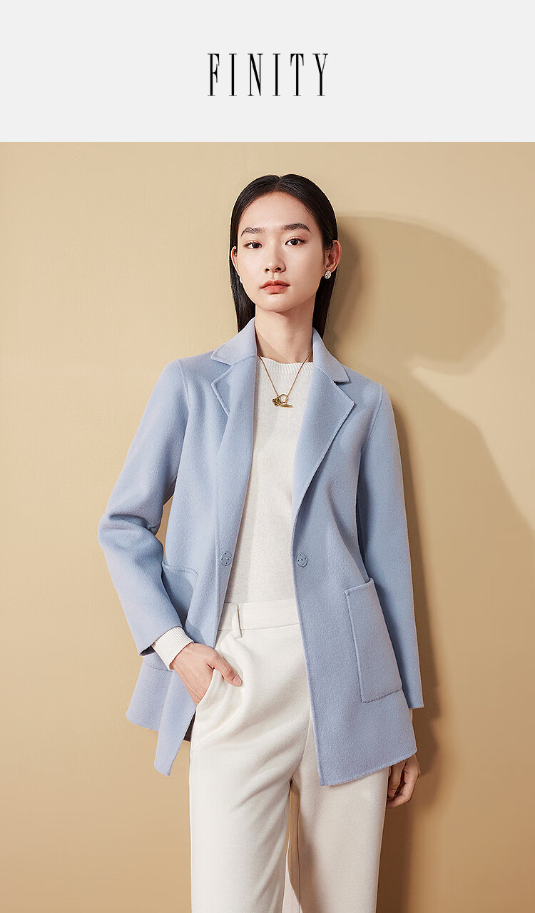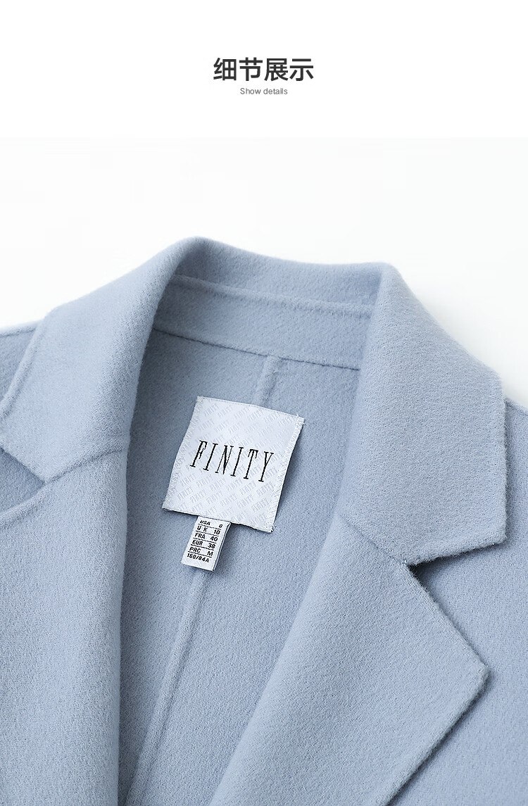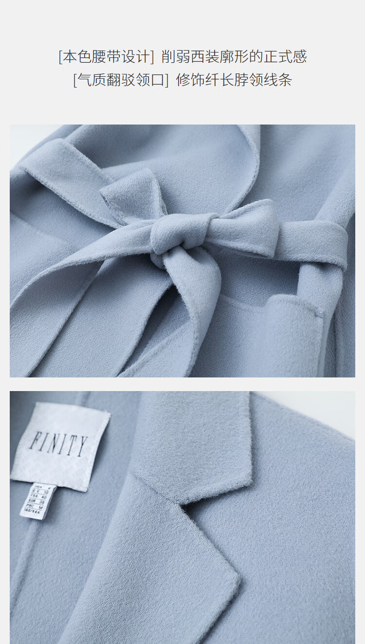 FINITY nude cashmere FINITY woolen coat for women winter new style double-sided woolen coat gray blue L