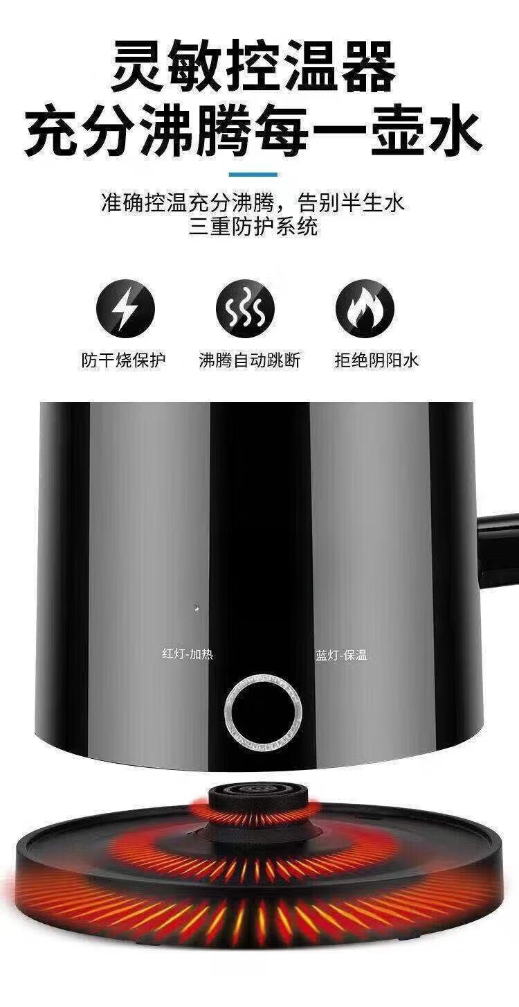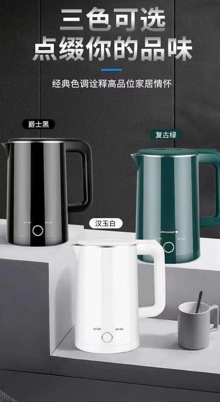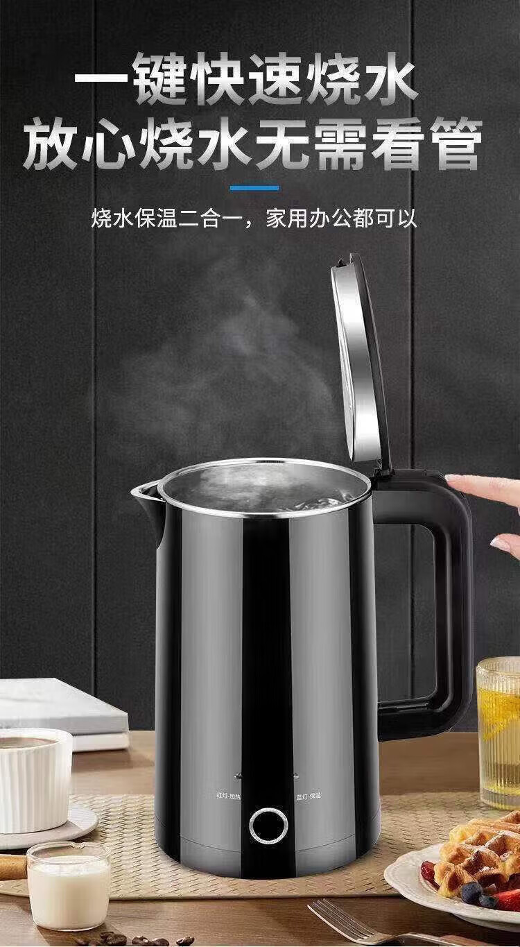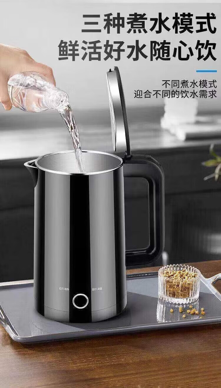 Baichunbao low-power kettle 300w electric kettle for student dormitories 304 food-grade household large capacity boiling and power-off 23 green thickening for five years
