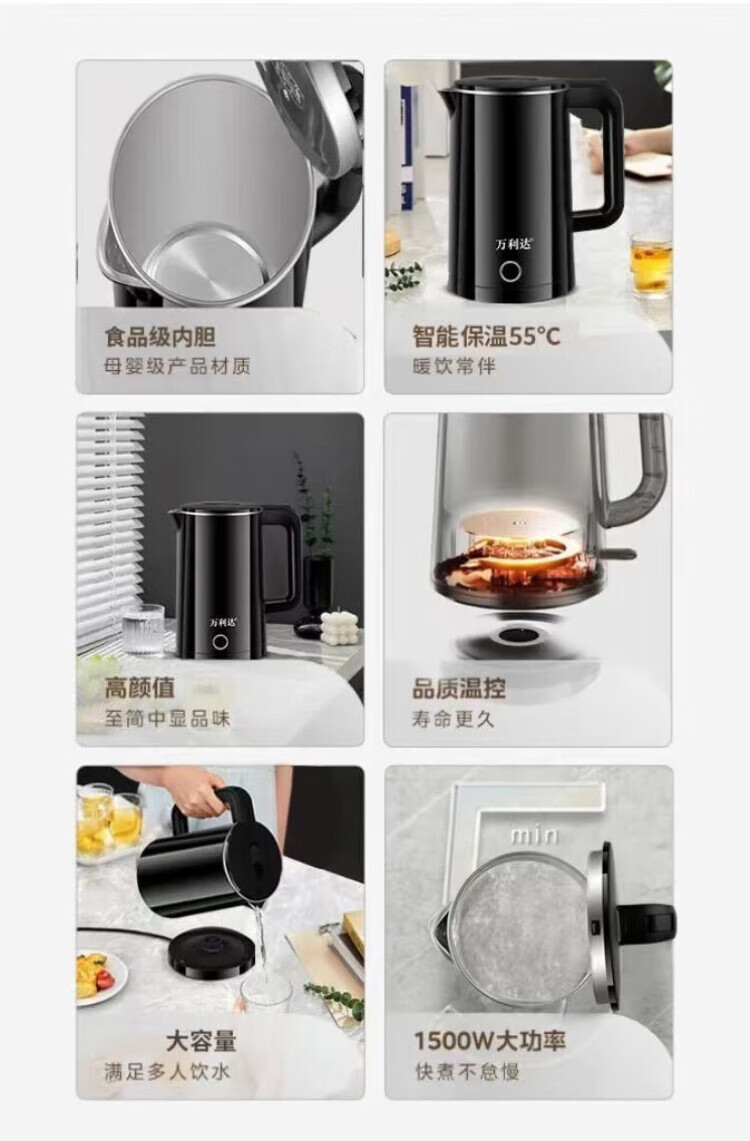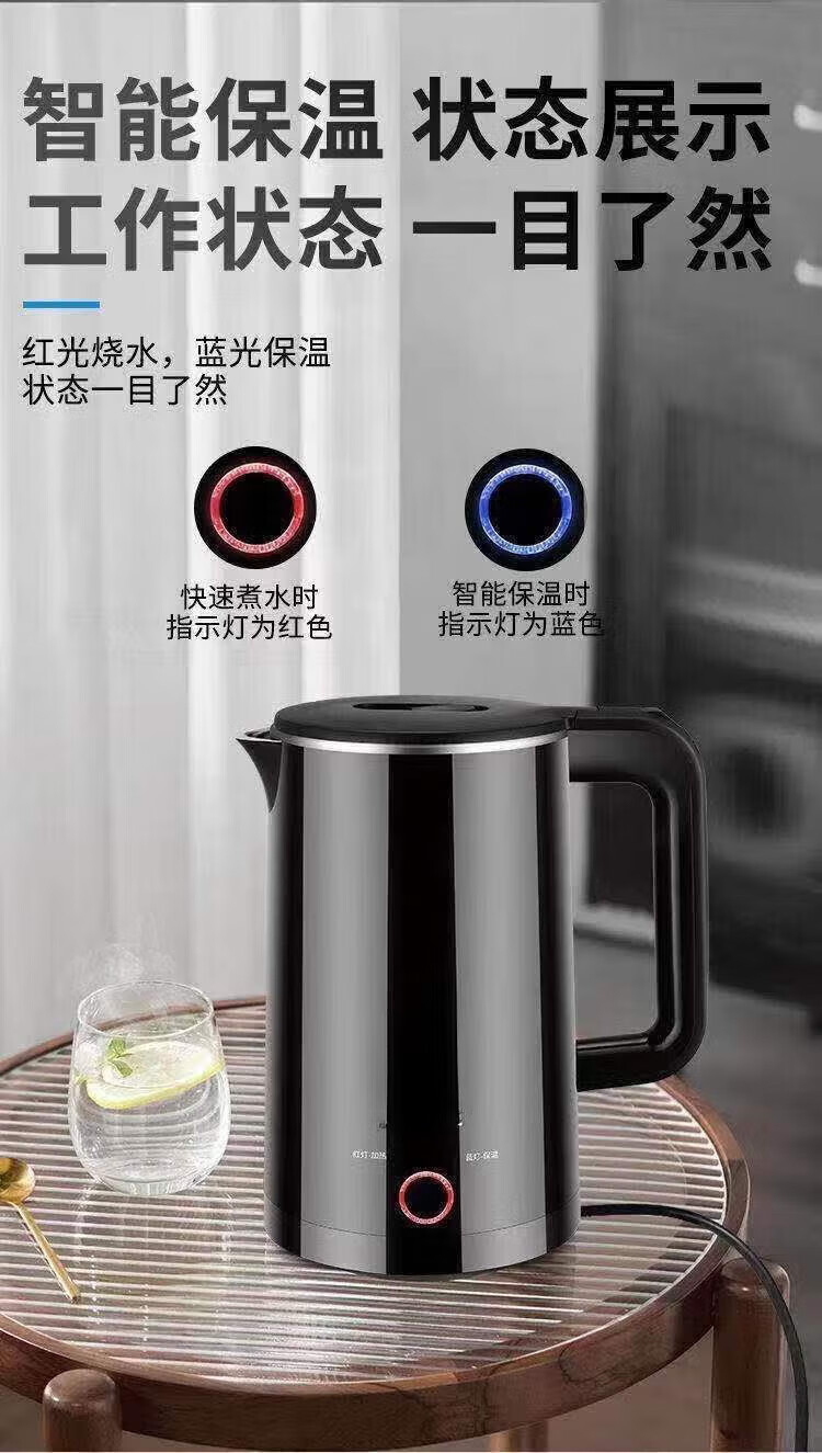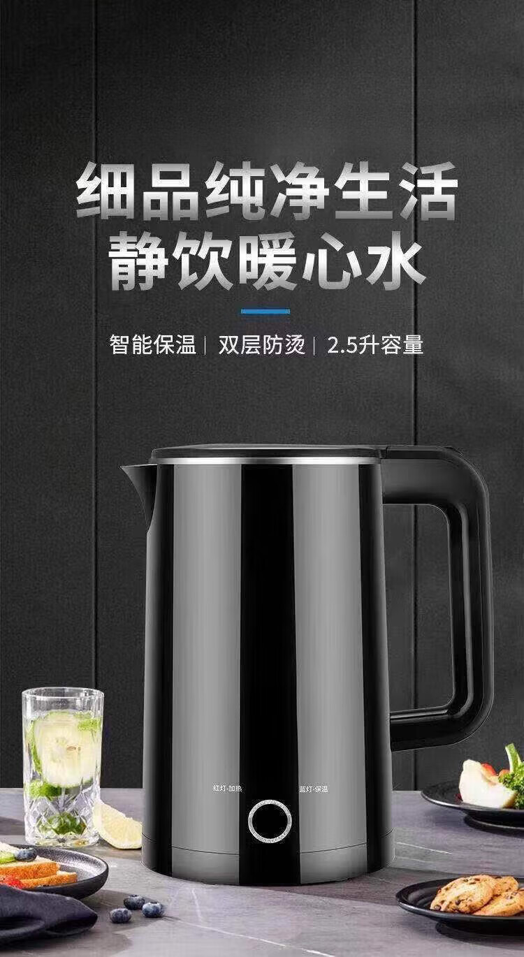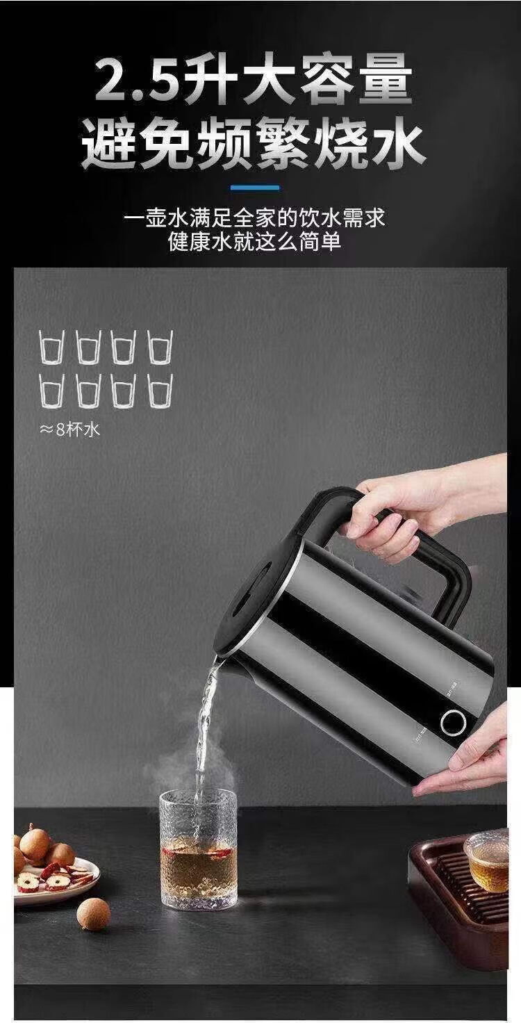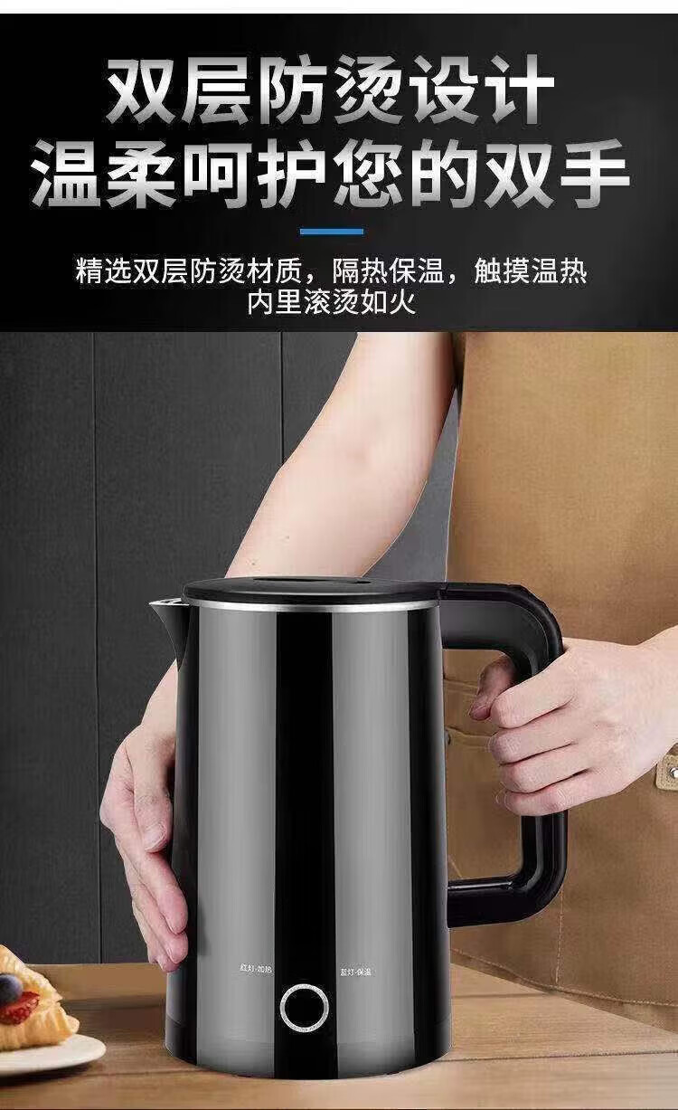 Baichunbao low-power kettle 300w electric kettle for student dormitories 304 food-grade household large capacity boiling and power-off 23 green thickening for five years