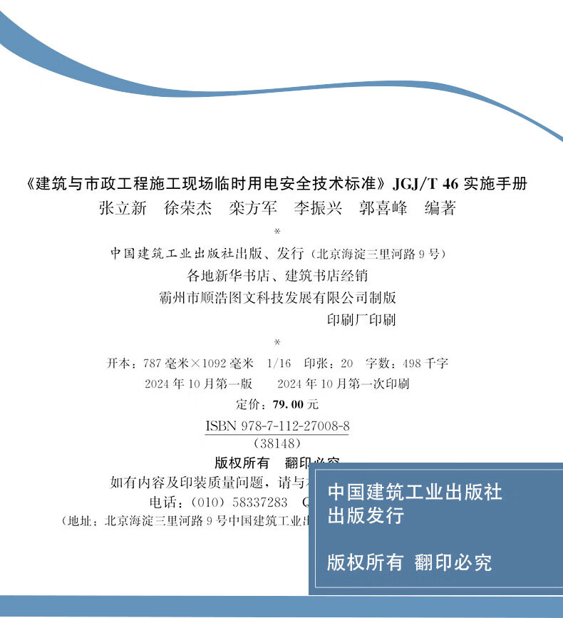 2024 New Edition Standard Specification JGJ 46-2024 Technical Standard for Safety of Temporary Electricity at Construction Sites of Buildings and Municipal Engineering Replacement JGJ46-2005 Illustration of Temporary Electricity Use JGJ46-2024 Technical Standard for Safety of Temporary Electricity at Construction Sites