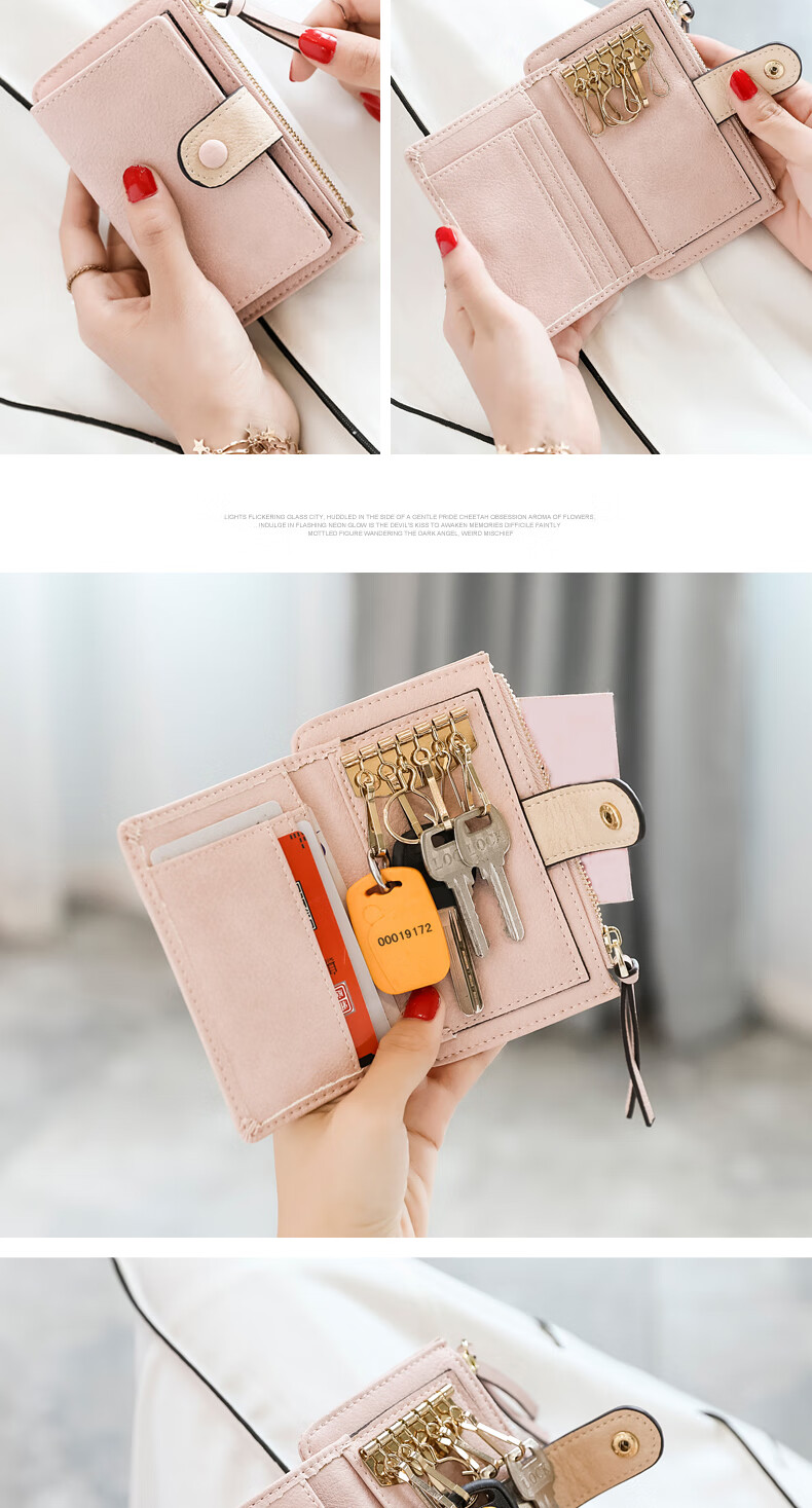 Yunpo Key Bag Women's Storage Bag Cute Multifunctional Small Bag Compact Mini Key Coin Purse Card Holder 2-in-1 Pink
