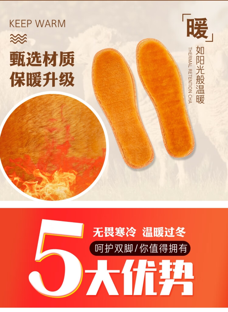 Warm insoles for winter, thickened with velvet, soft-soled insoles for men and women, comfortable, sweat-absorbent and deodorant, 1 pair of alpaca 42