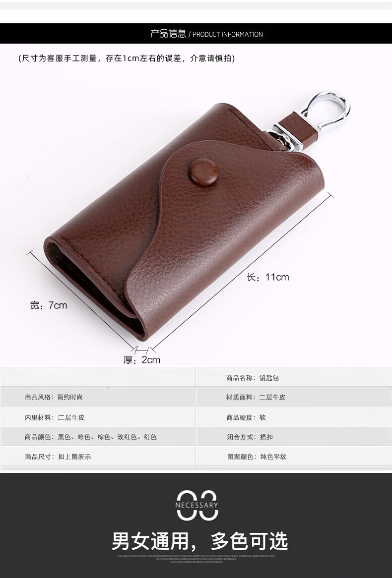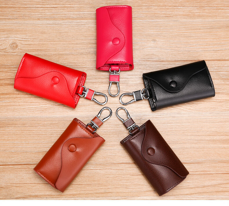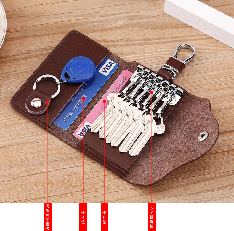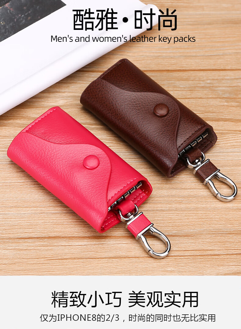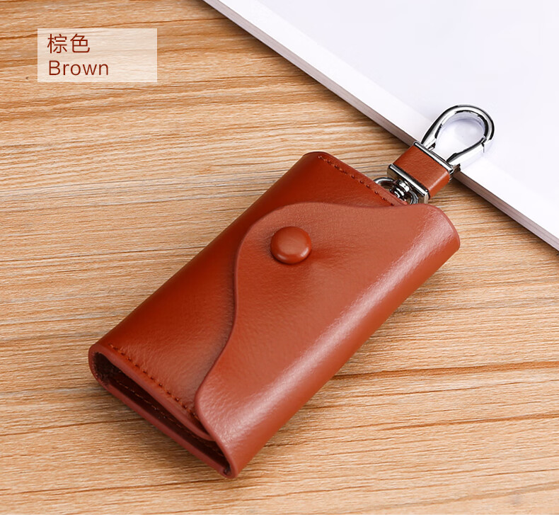 Yunpo Korean key bag men's genuine leather car key bag waist hanging cowhide multi-functional zipper key bag buckle women's bag brown