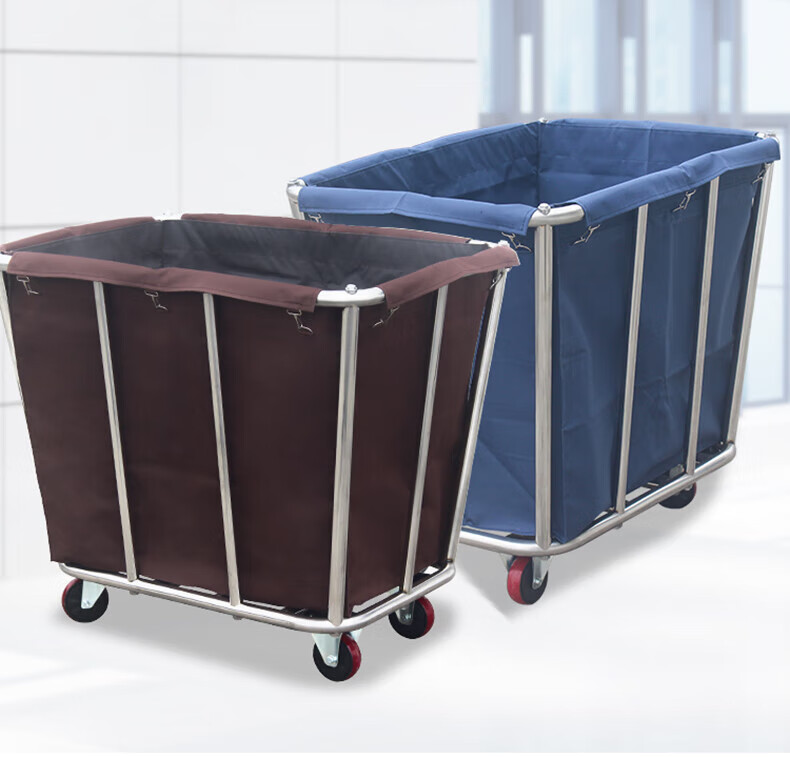 Hanchang Hotel Linen Cart Room Service Cart Laundry Room Dirty Linen Recycling Car Hotel Stainless Steel Storage Disassembly and Reinforced Rectangular Coffee Color (Ten Tubes)
