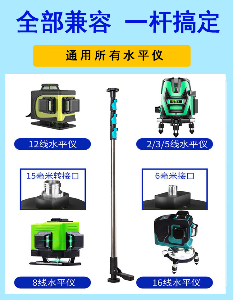 Qinkai Thickened Level Lifting Support Rod Foot-operated Telescopic Bracket Level Lifting Rod Lifting Bracket New Fine-tuned Cloud Head + Conversion Head 4.7 Meters Bold and Thickened Stainless Steel Rod + Storage