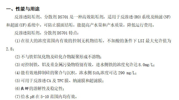 Dongsheng reverse osmosis scale inhibitor ds702 reducing agent cleaning agent flocculant water treatment agent DS706