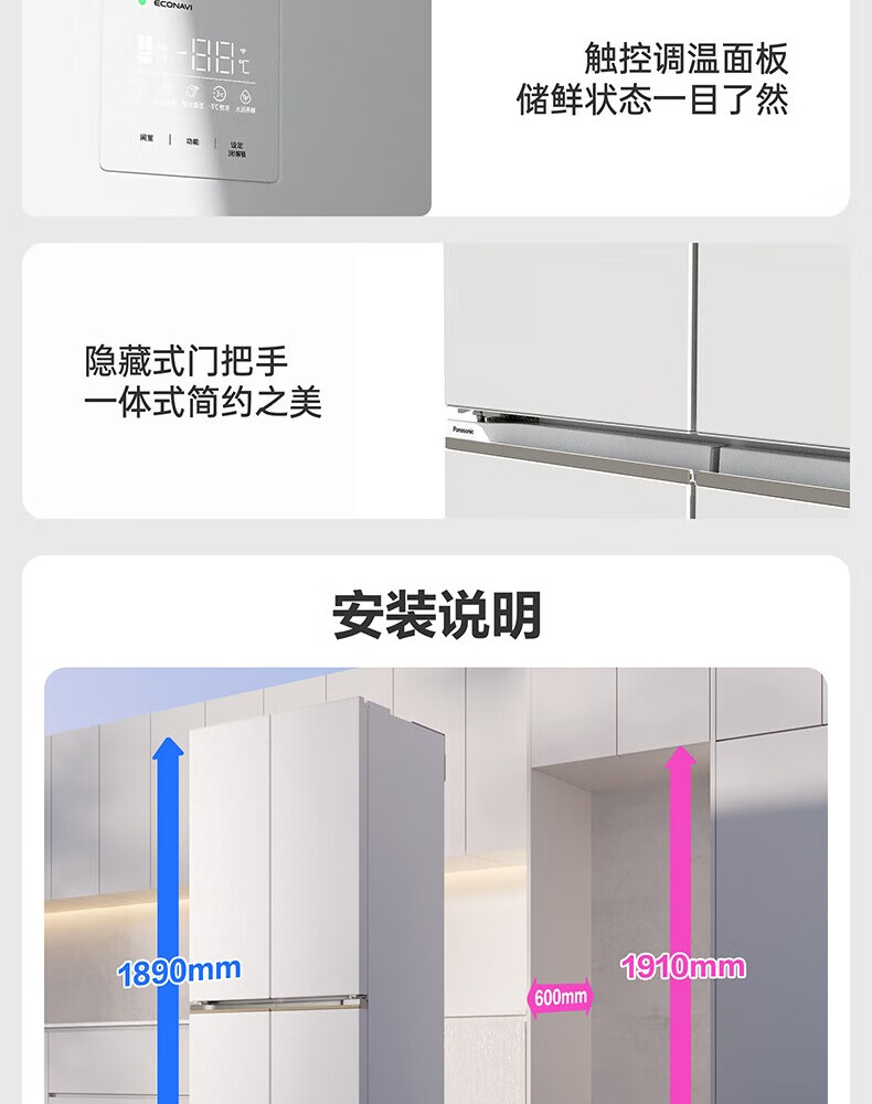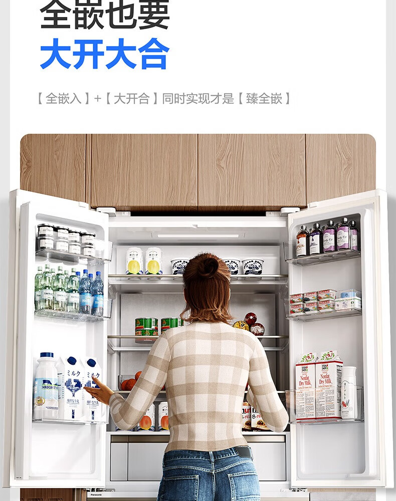 Panasonic Big Seal 2.0 ultra-thin zero-embedded 510-liter large-capacity first-class energy-efficiency automatic ice-making cross-door built-in household refrigerator NR-ED51CMA-W gel white white