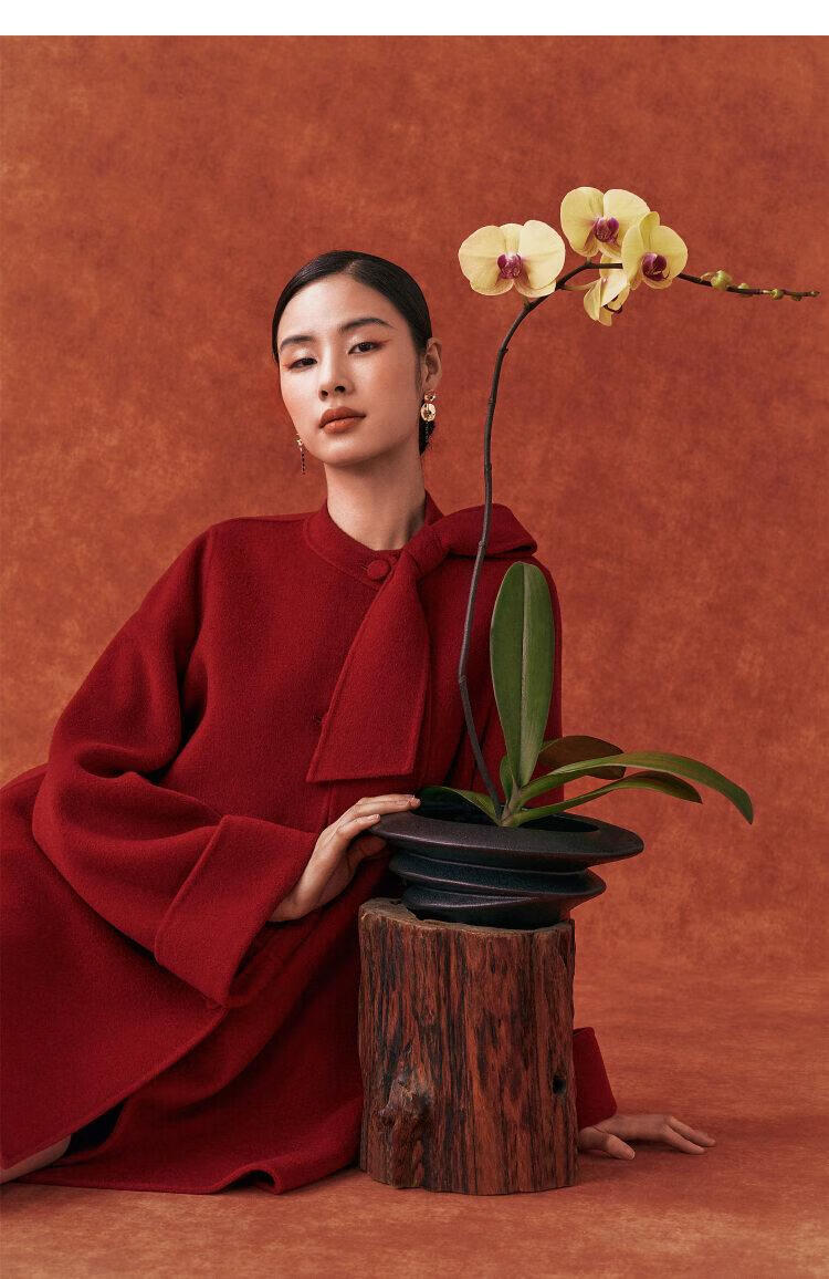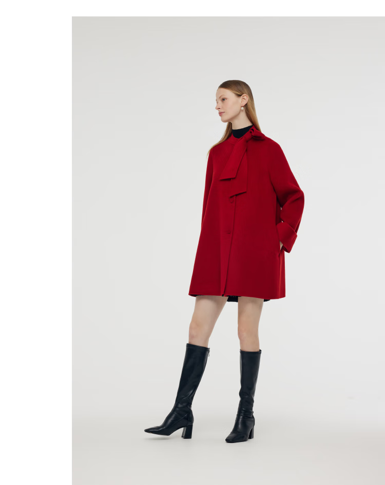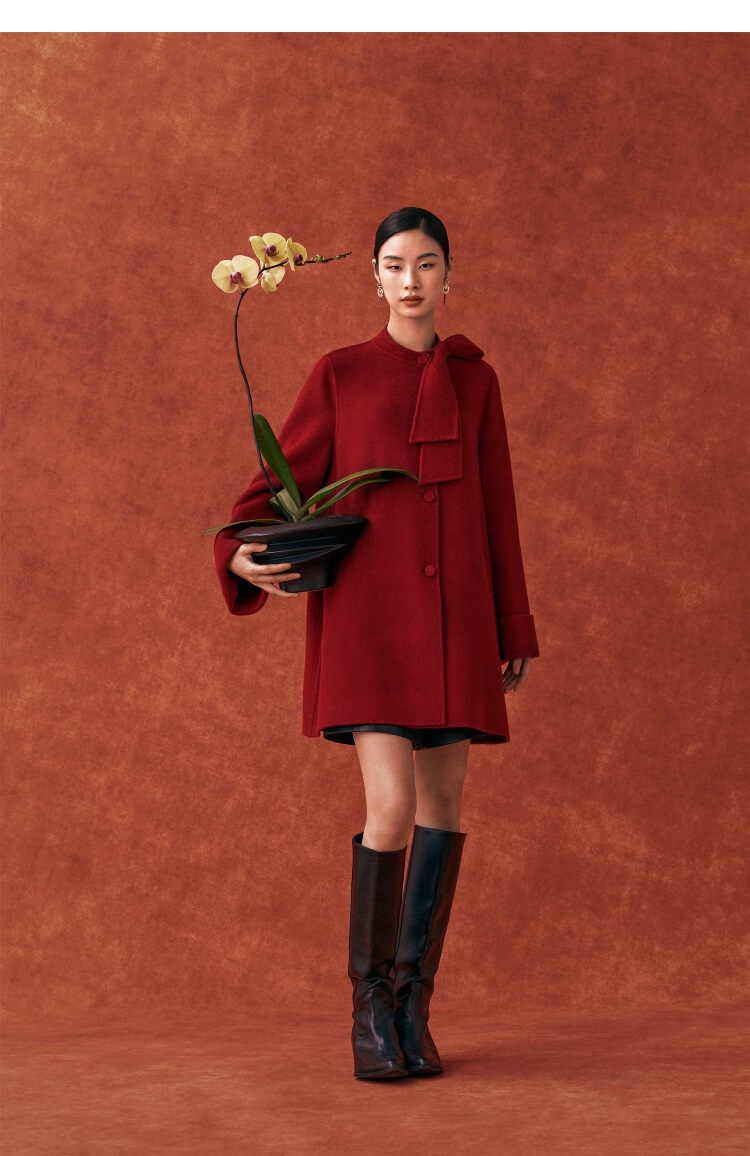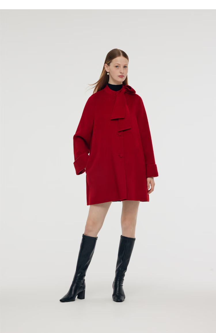 Gloria New Year Red Coat Collar Bow Tencel Wool Jacket 1CCR6E930 53R Pepper Red XS