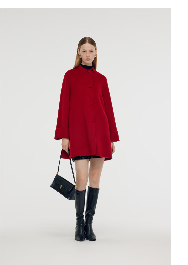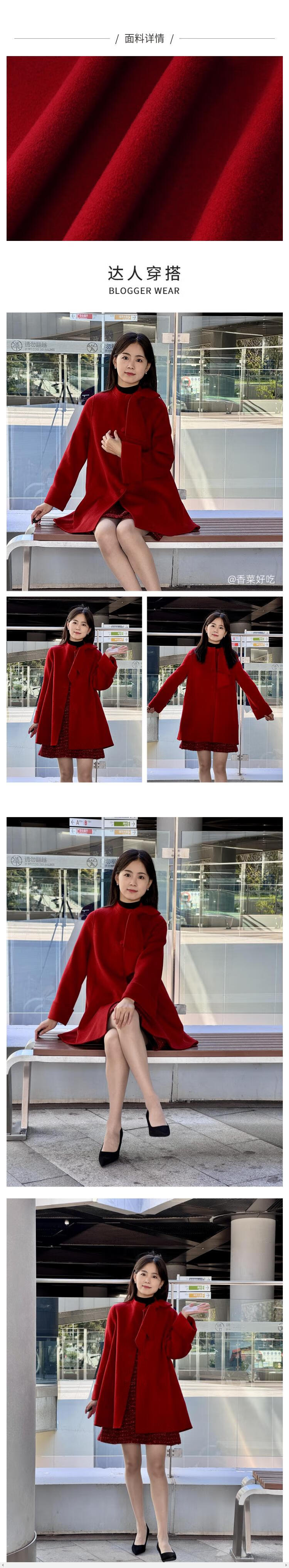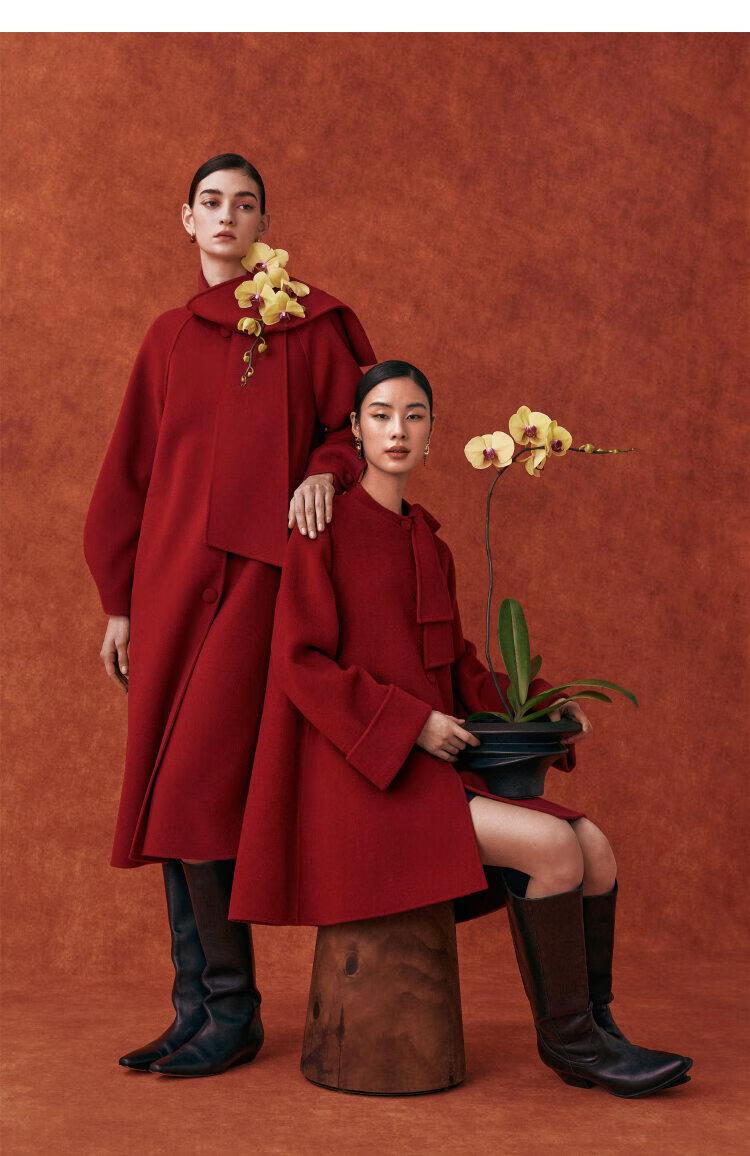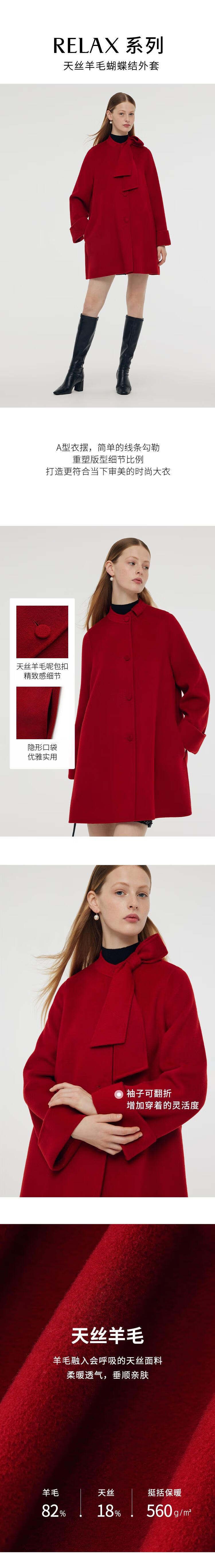 Gloria New Year Red Coat Collar Bow Tencel Wool Jacket 1CCR6E930 53R Pepper Red XS