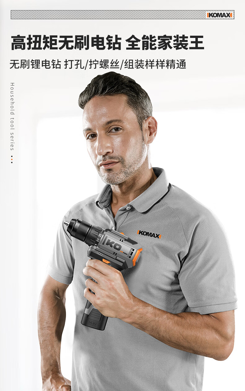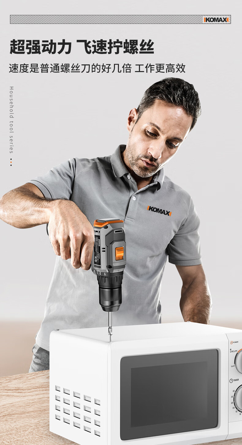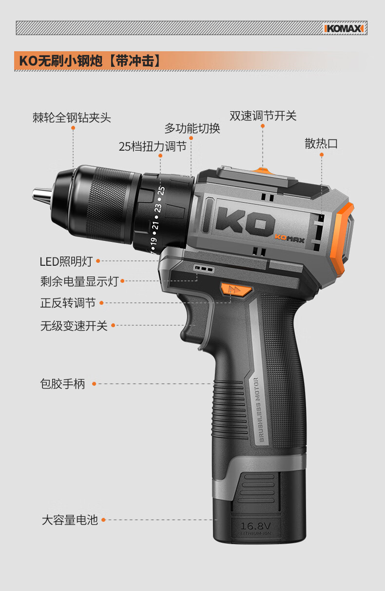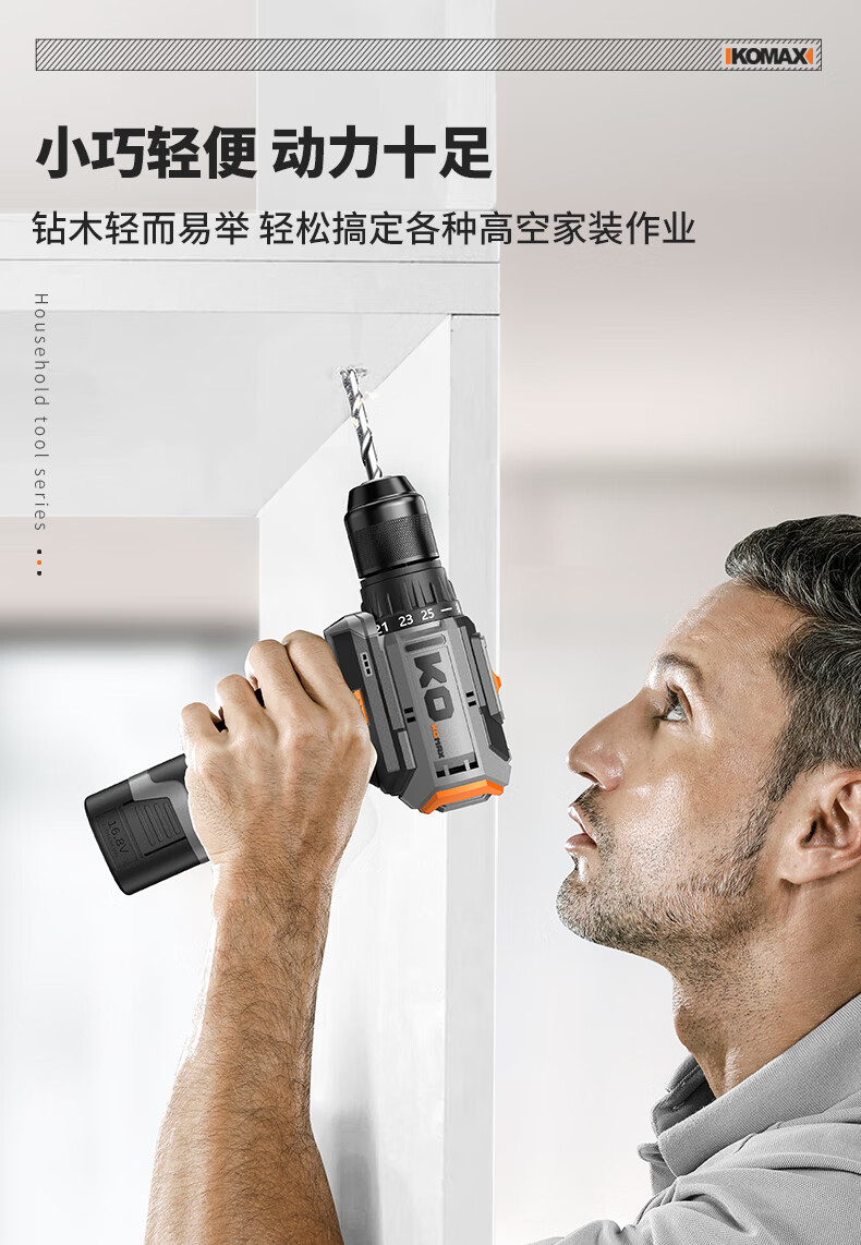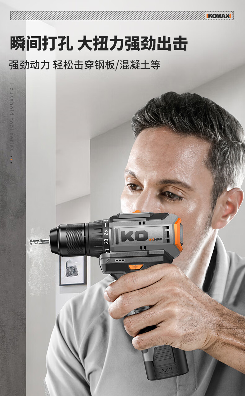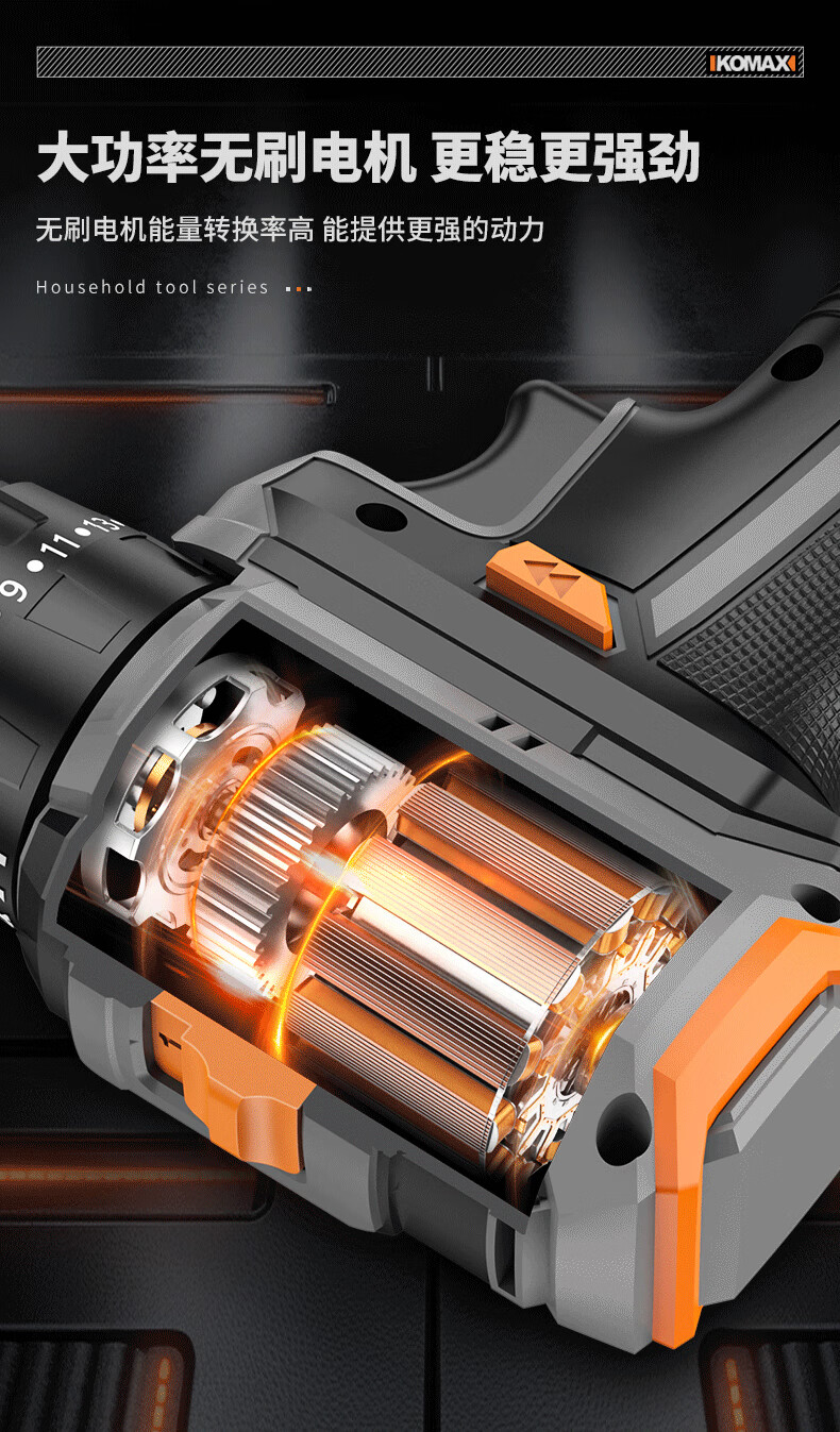 KOMAX household electric drill tool set multi-function electric drill tool box complete electrician woodworking vehicle repair screwdriver KO brushless with impact 1 battery/town house prosperous