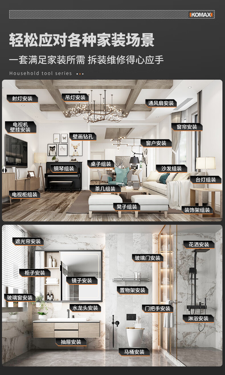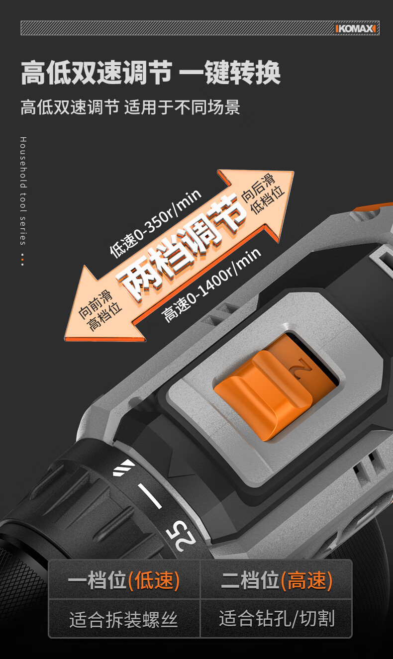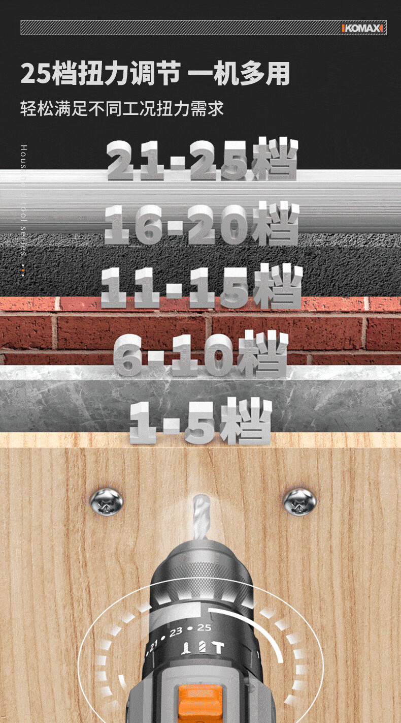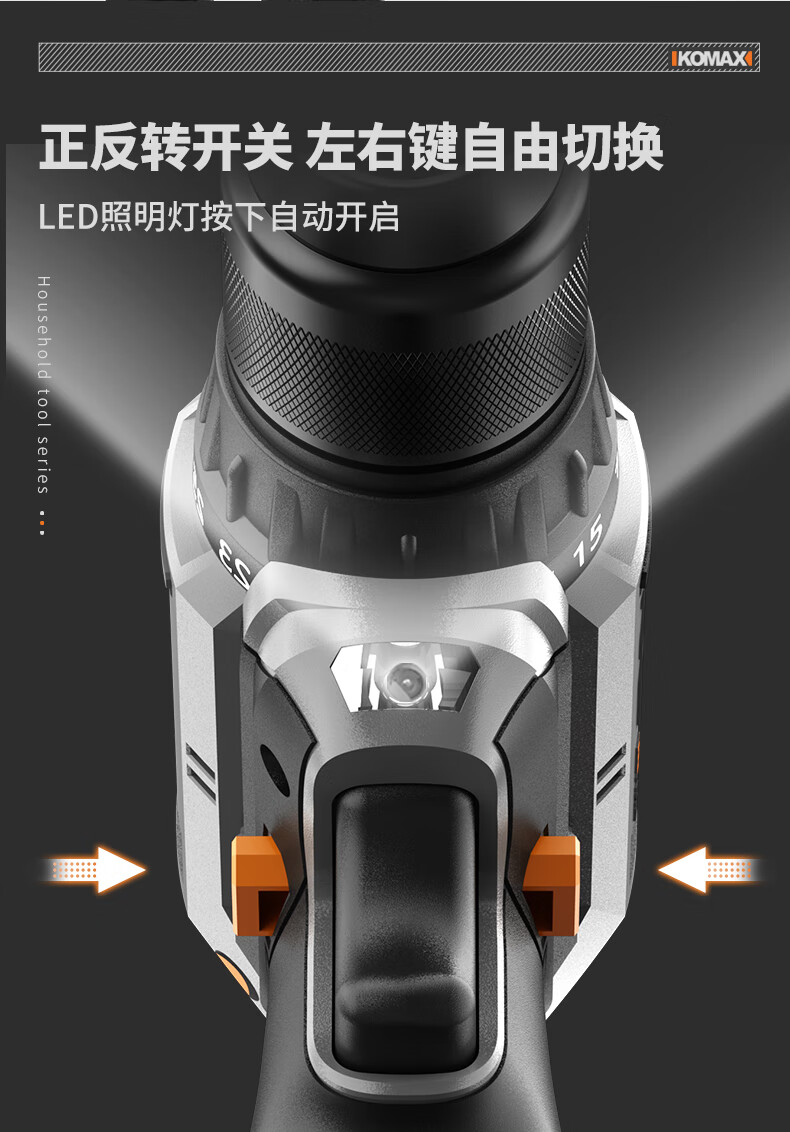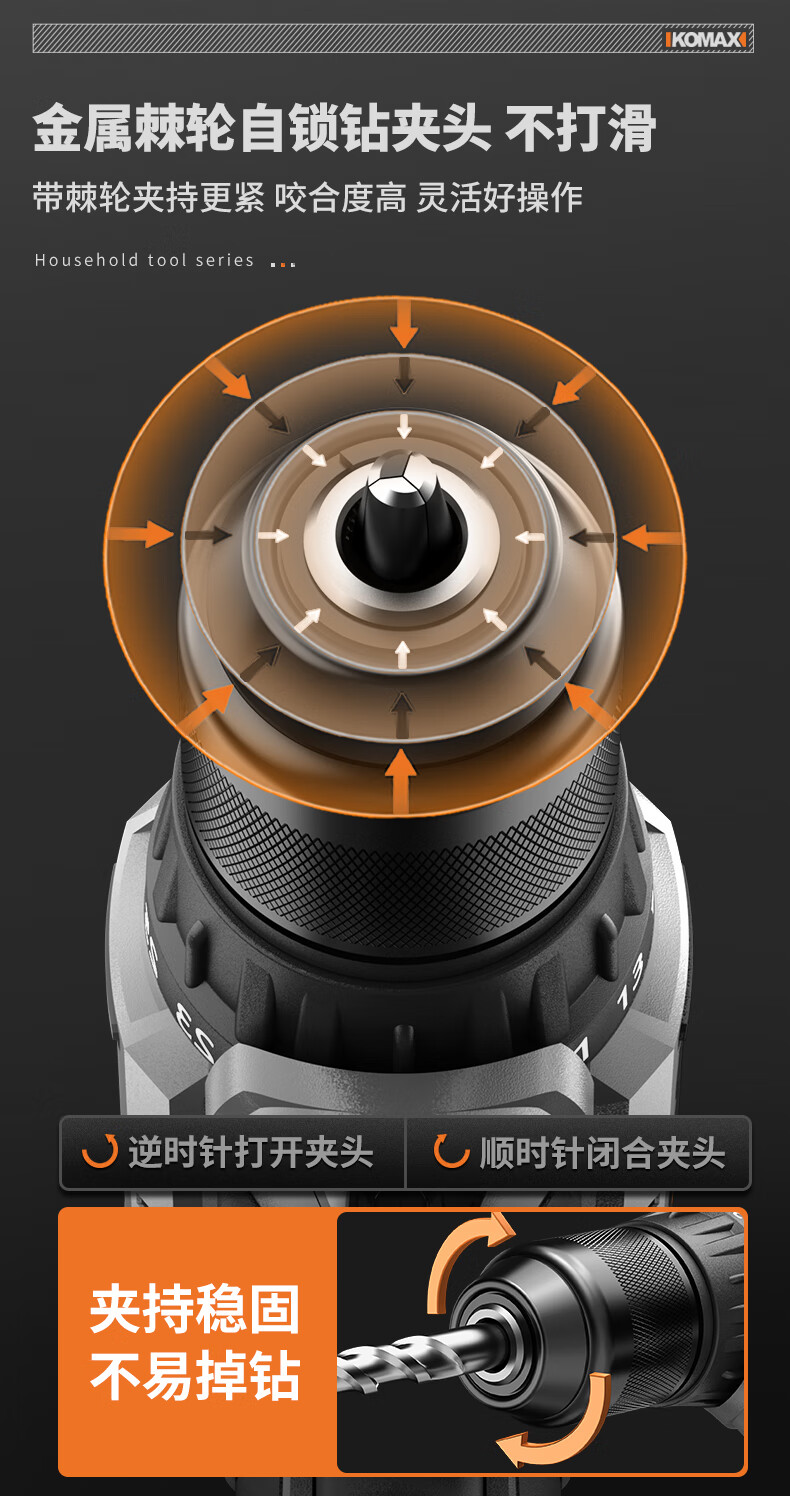 KOMAX household electric drill tool set multi-function electric drill tool box complete electrician woodworking vehicle repair screwdriver KO brushless with impact 1 battery/town house prosperous