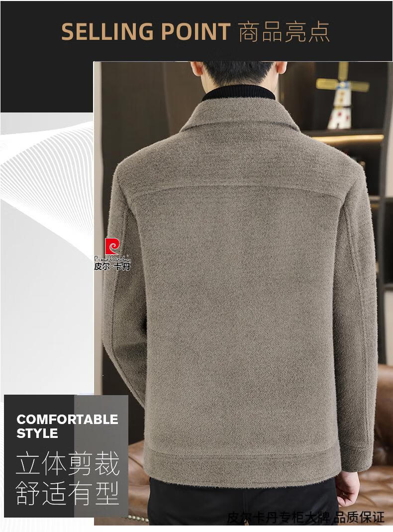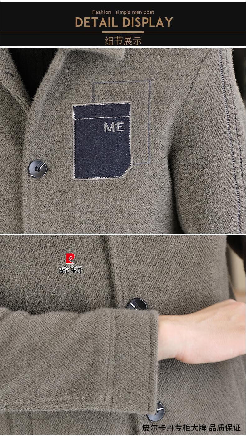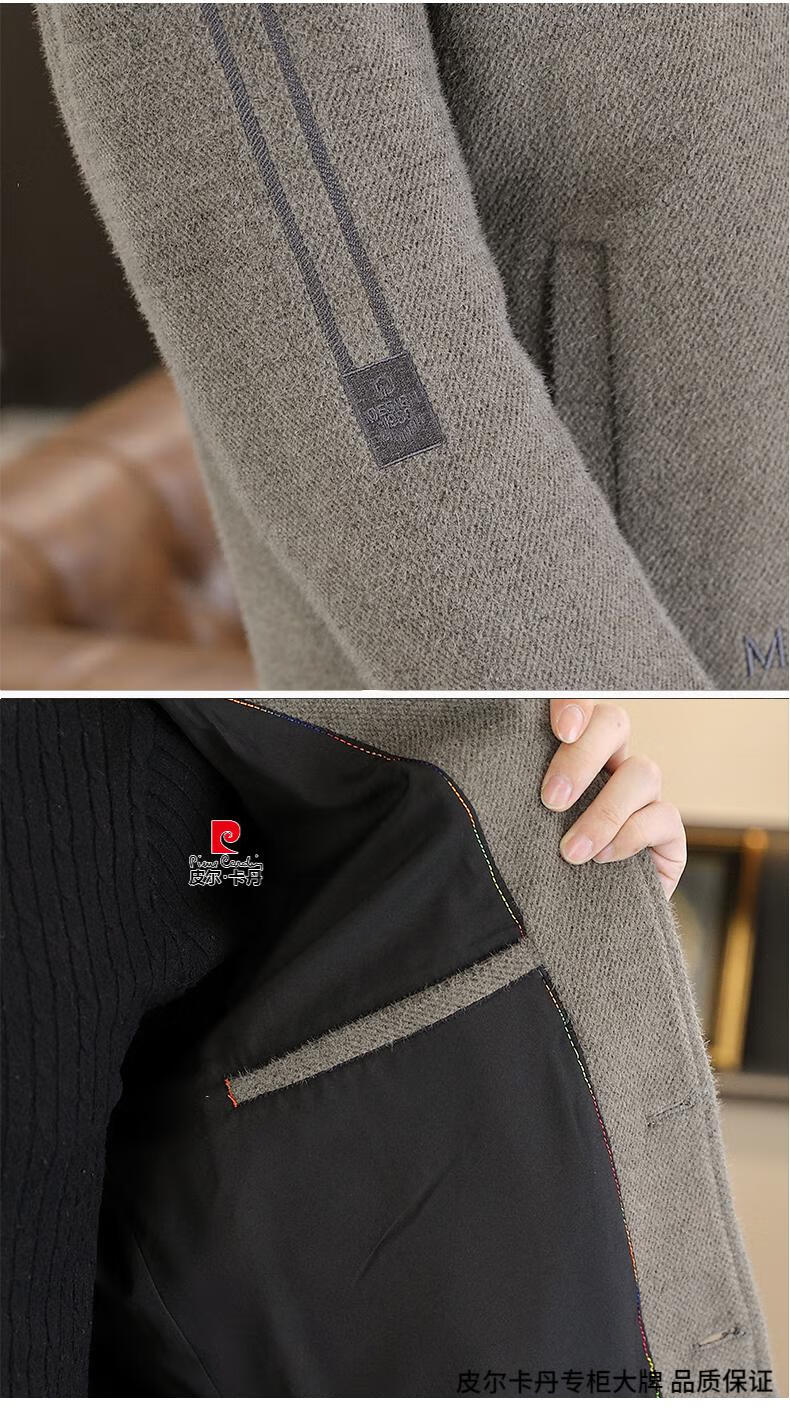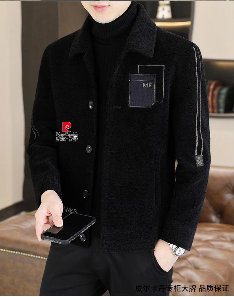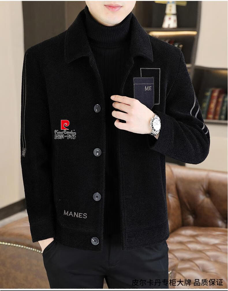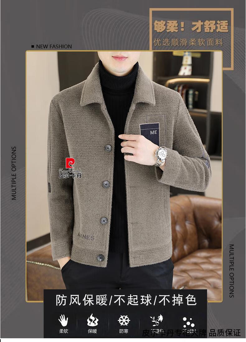 Pierre Cardin Men's Gold Mink Woolen Jacket Autumn and Winter New Woolen Coat Short Men's Casual Thickened Lapel Jacket Gray Cotton 4XL 160-175 catties