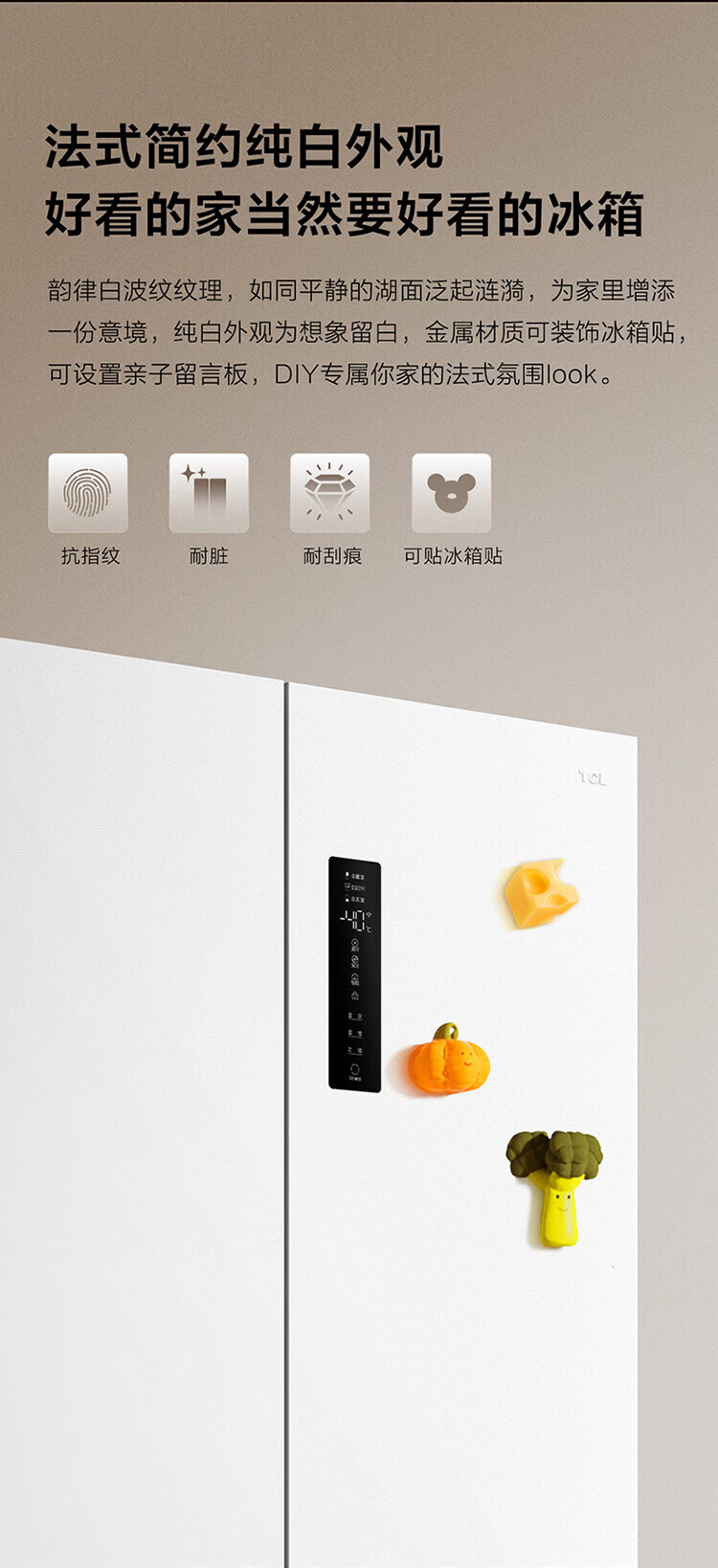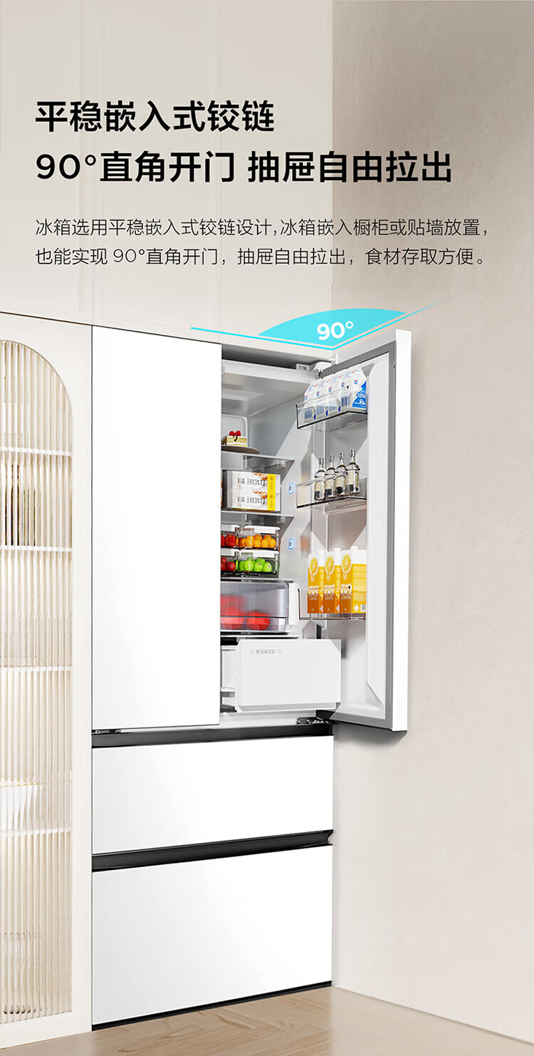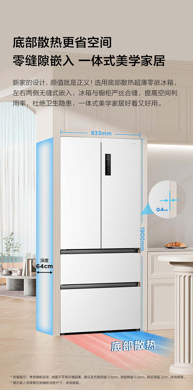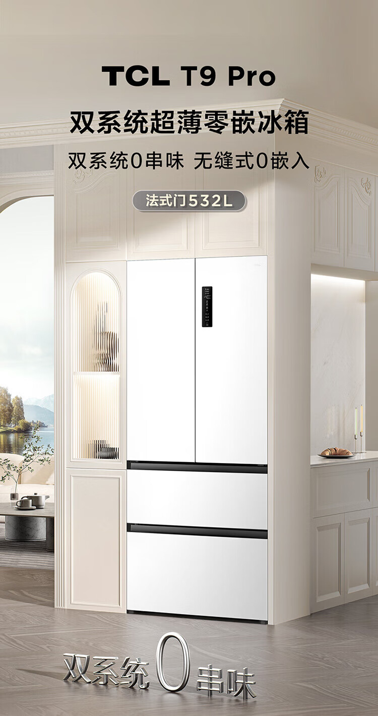 TCL 532-liter T9 Pro French multi-door four-door dual-system dual-odor ultra-thin zero-embedded bottom cooling refrigerator home first-class energy efficiency trade-in R532T9-DQS Rhythm White
