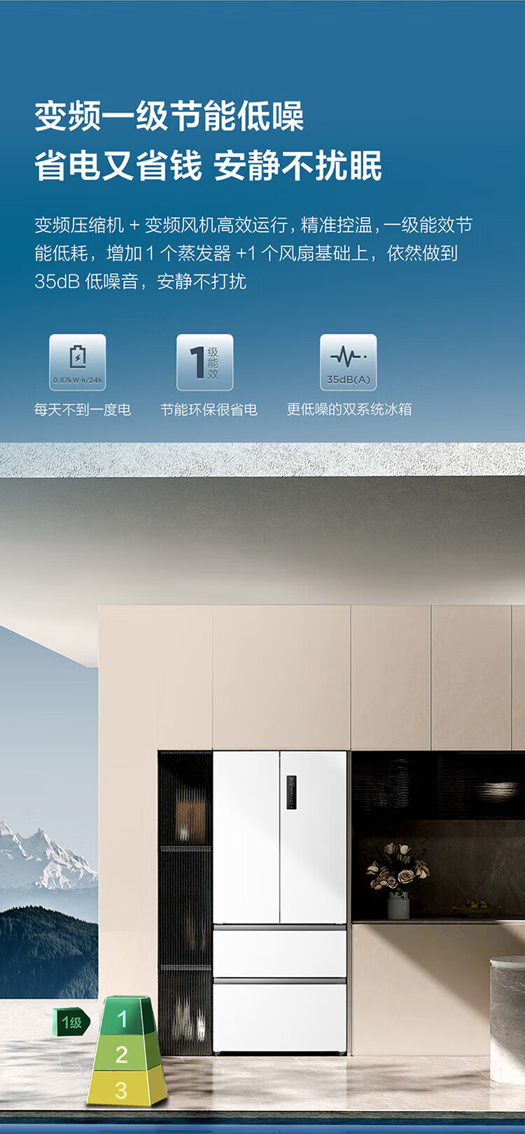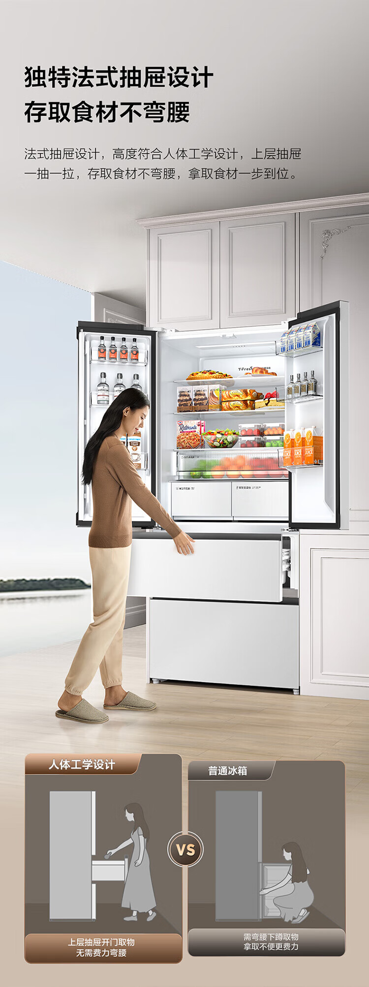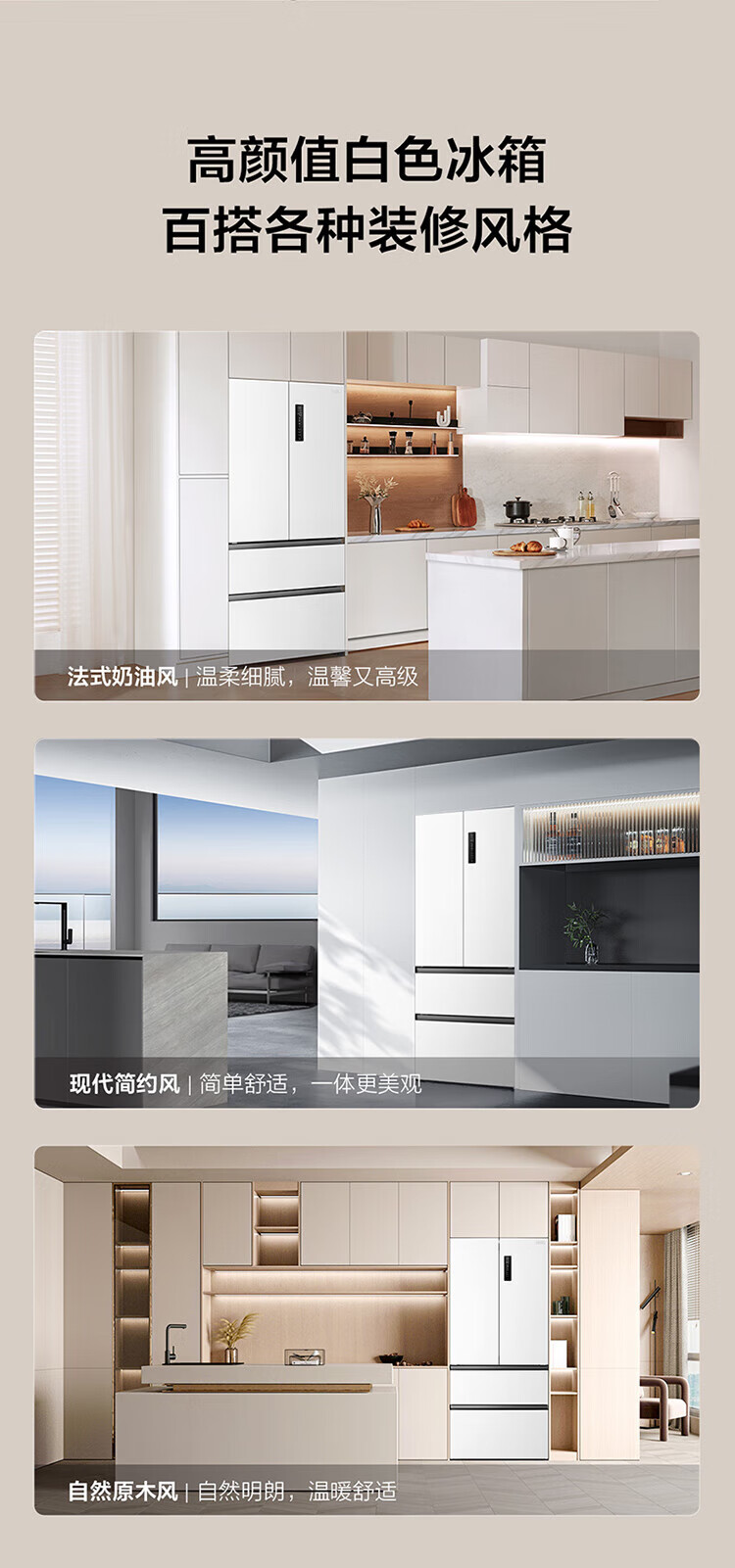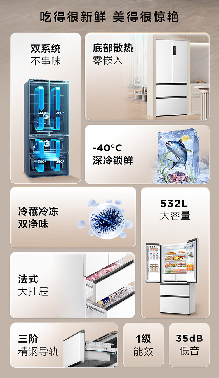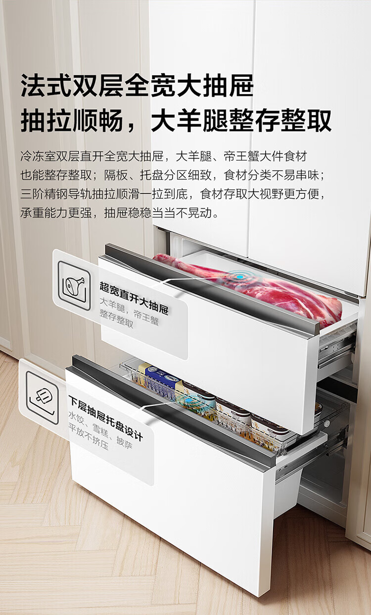 TCL 532-liter T9 Pro French multi-door four-door dual-system dual-odor ultra-thin zero-embedded bottom cooling refrigerator home first-class energy efficiency trade-in R532T9-DQS Rhythm White