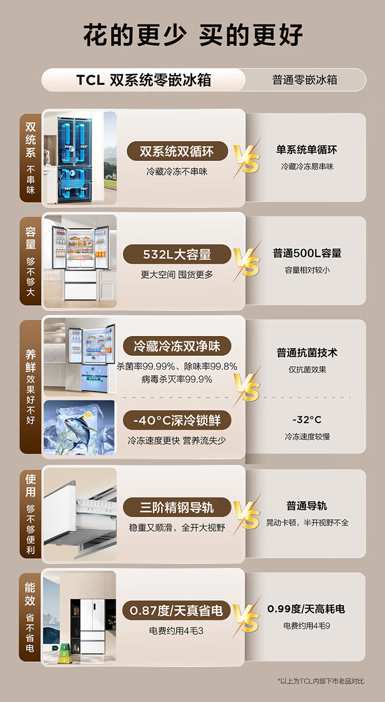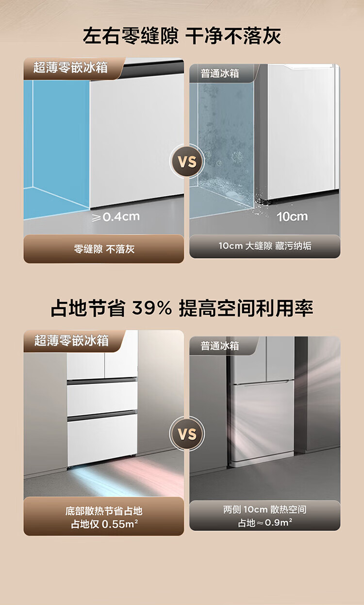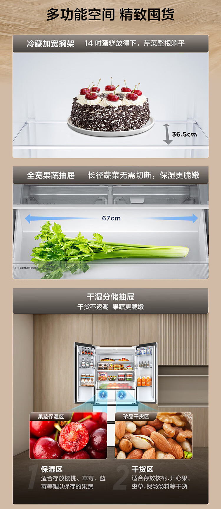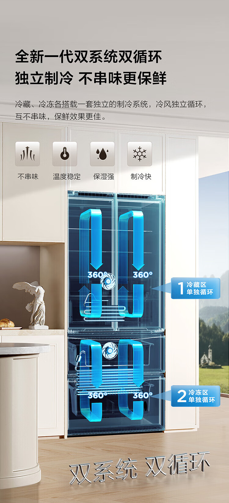 TCL 532-liter T9 Pro French multi-door four-door dual-system dual-odor ultra-thin zero-embedded bottom cooling refrigerator home first-class energy efficiency trade-in R532T9-DQS Rhythm White