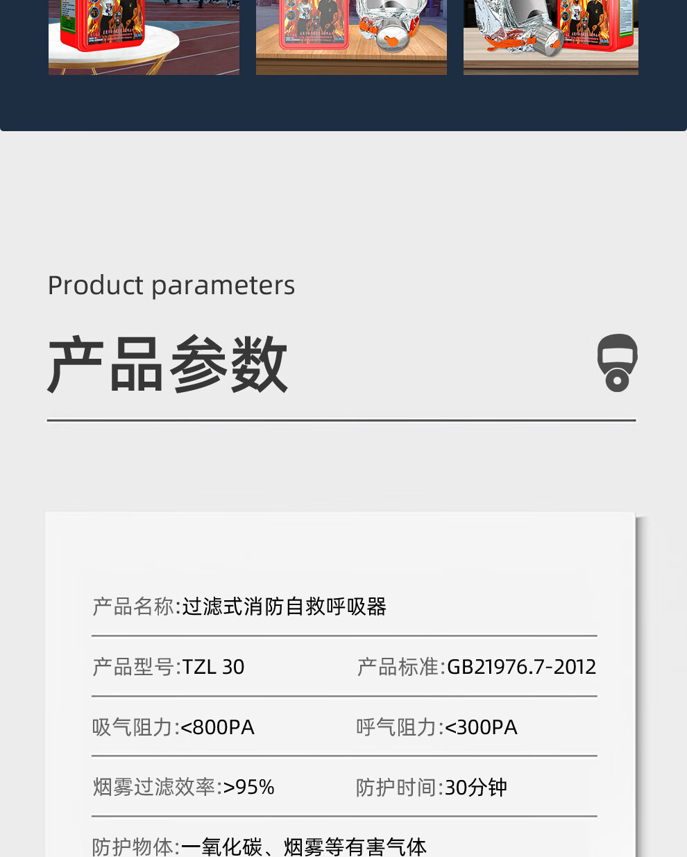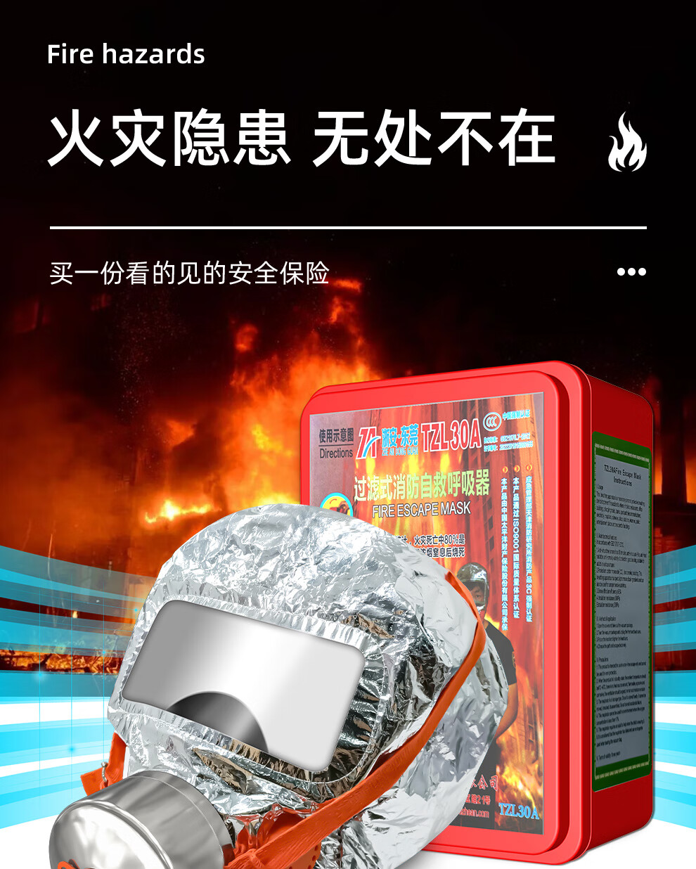 He'andun Zhe'an Guangzhou Fire Zhe'an Dongguan fire mask anti-virus and anti-smoke mask filter type self-filtering 4kg water-based luminous mask*2+4KG fire extinguisher*2 box
