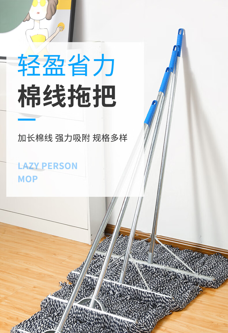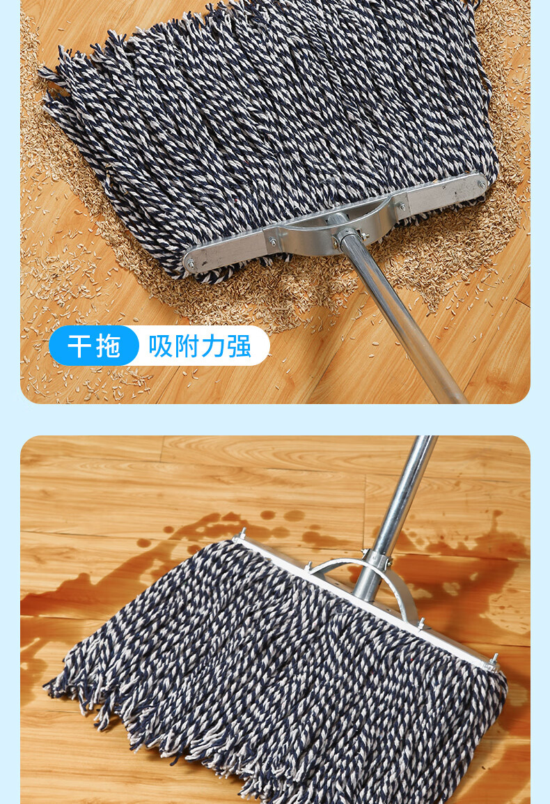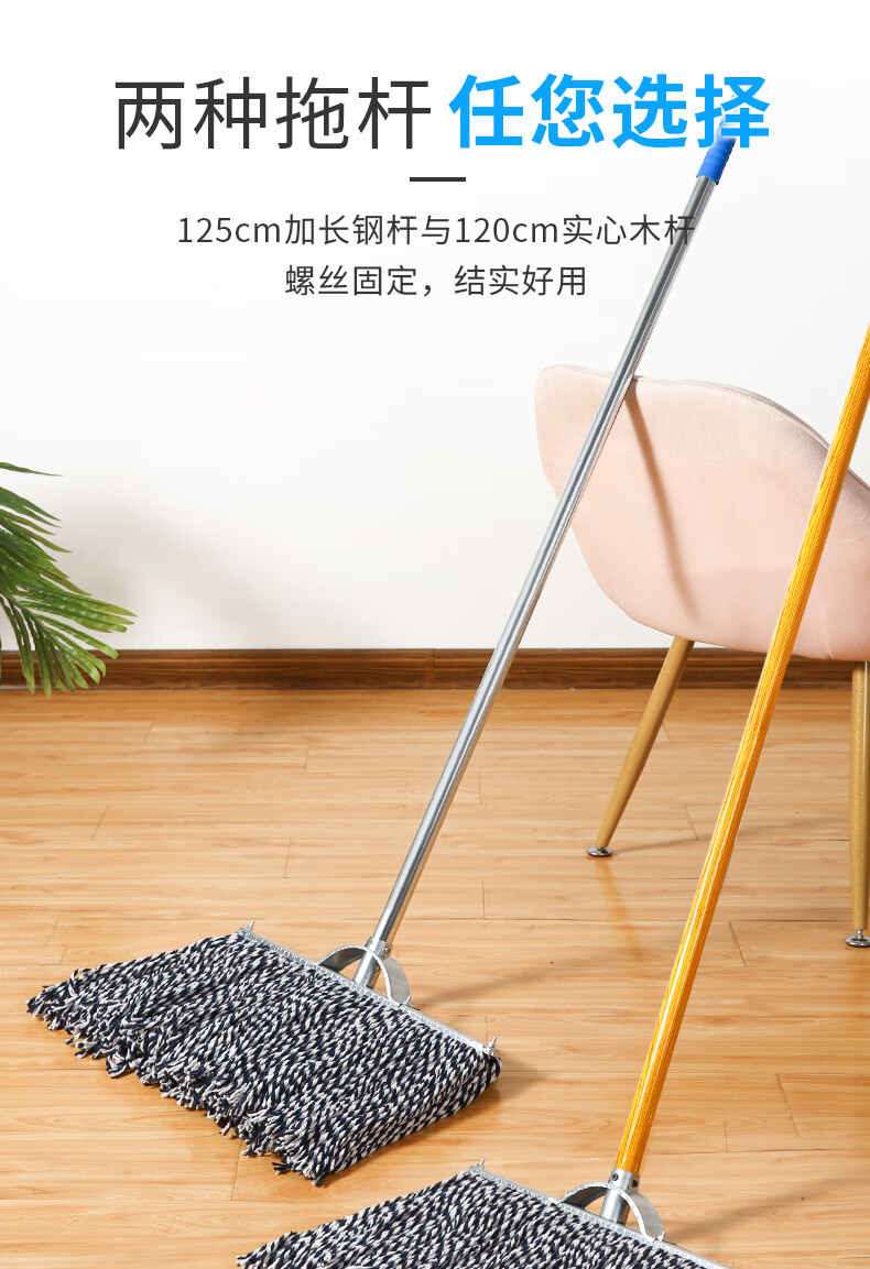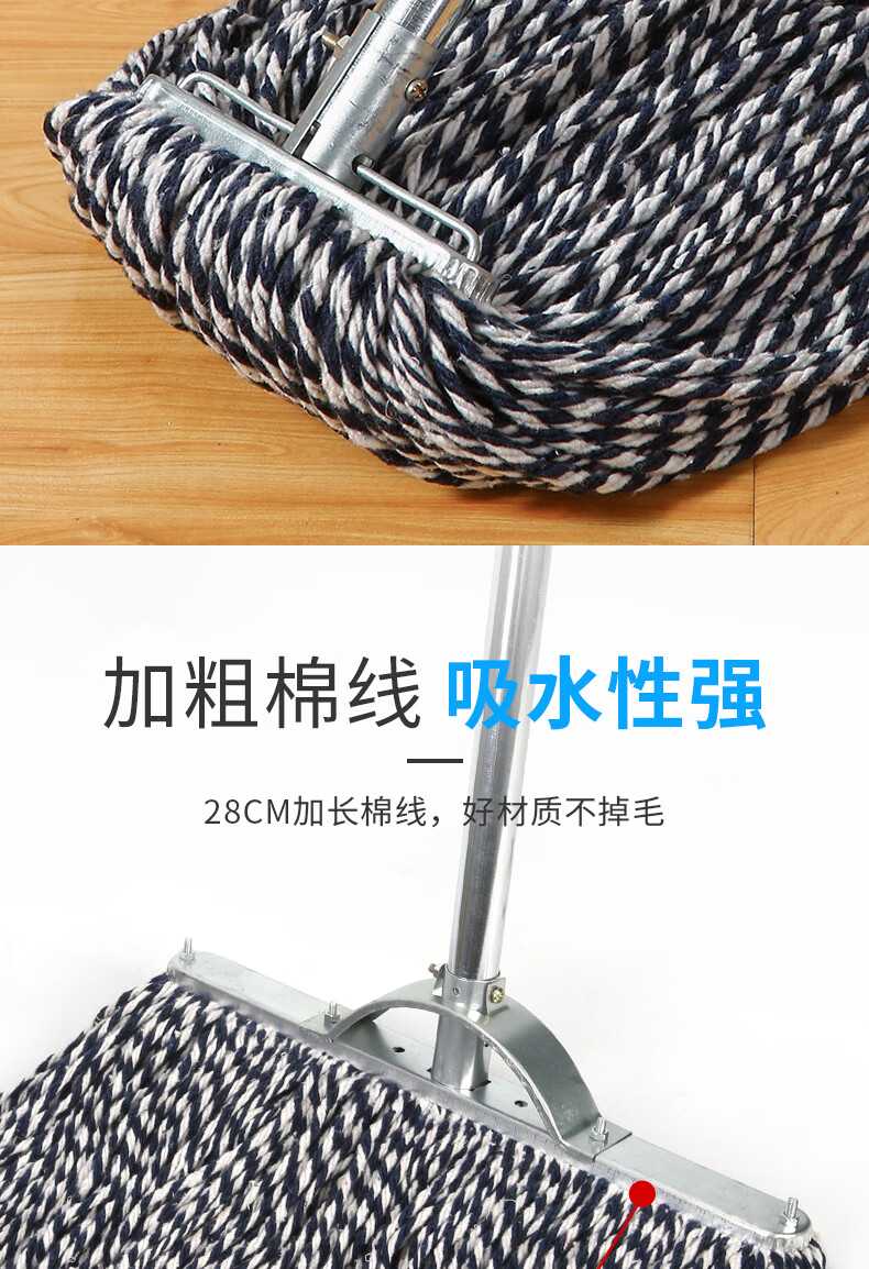 Xianfiya old-fashioned mop cotton thread household mop stainless steel pole floor mop hotel factory workshop property absorbent mop blue and white 40cm reinforced steel pole