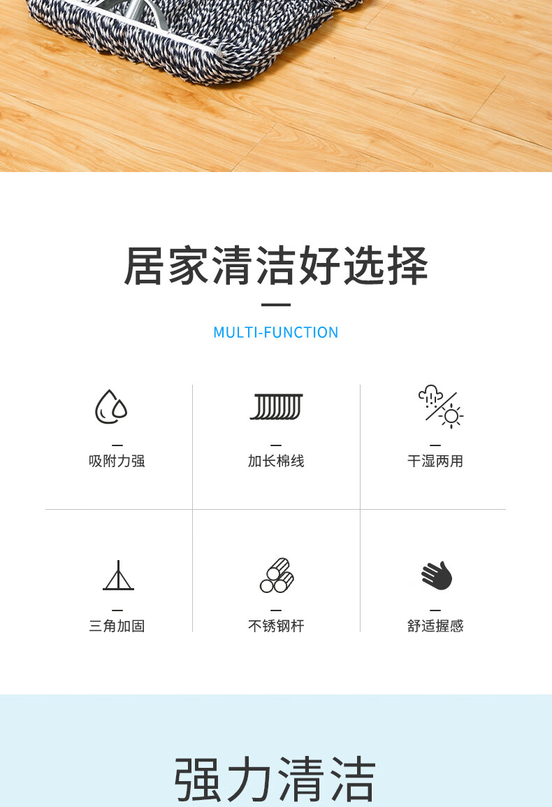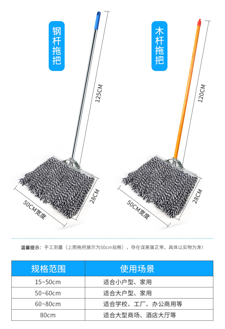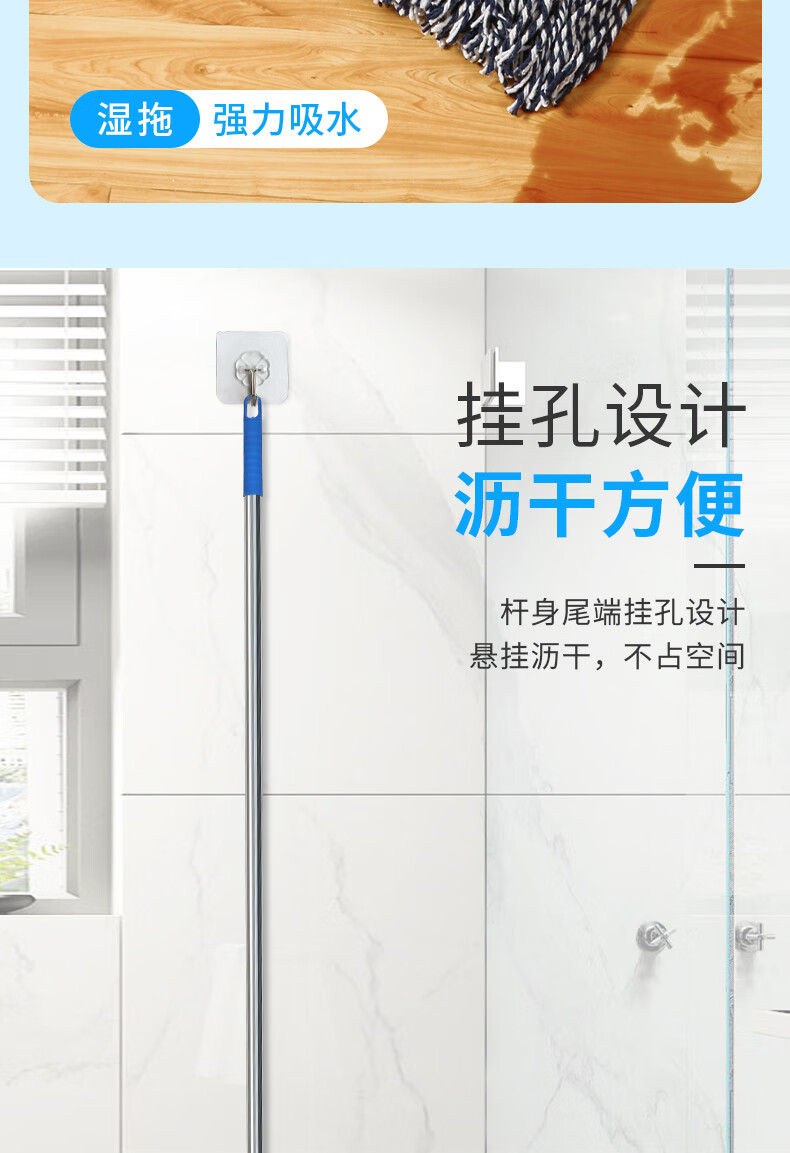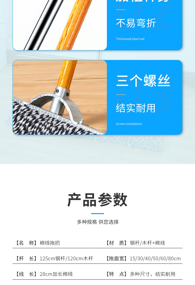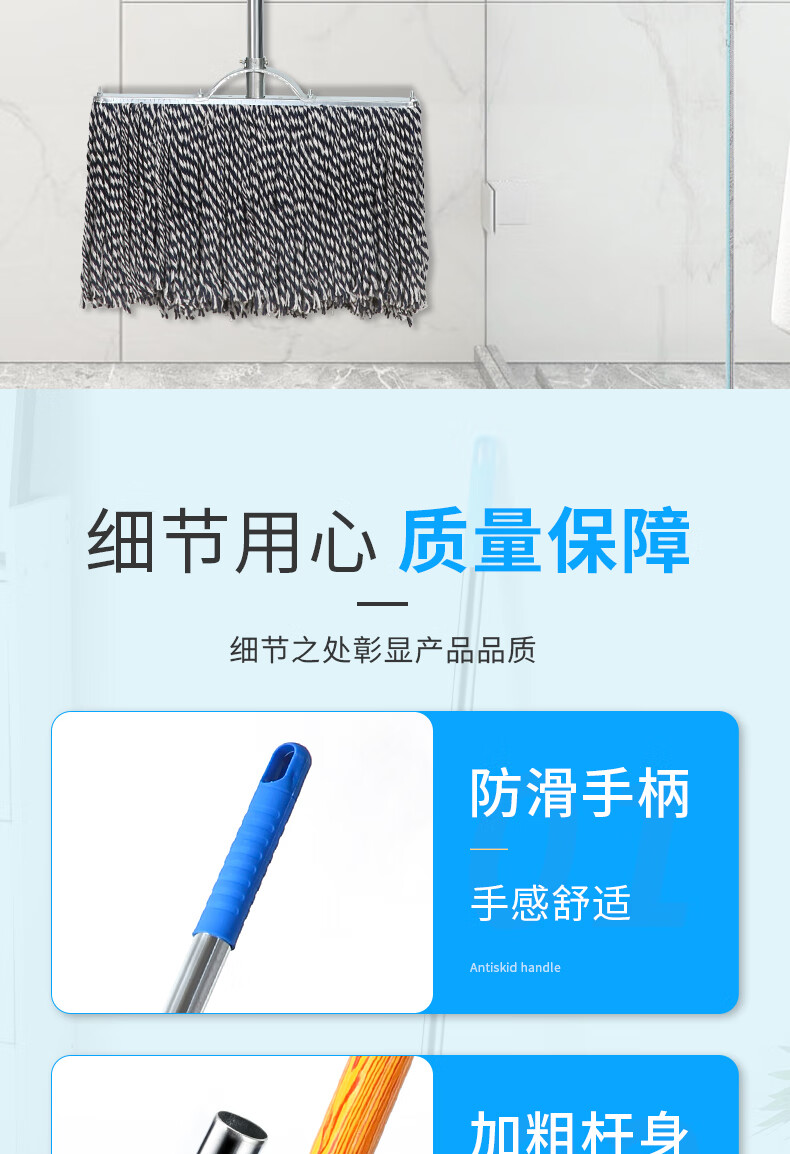 Xianfiya old-fashioned mop cotton thread household mop stainless steel pole floor mop hotel factory workshop property absorbent mop blue and white 40cm reinforced steel pole