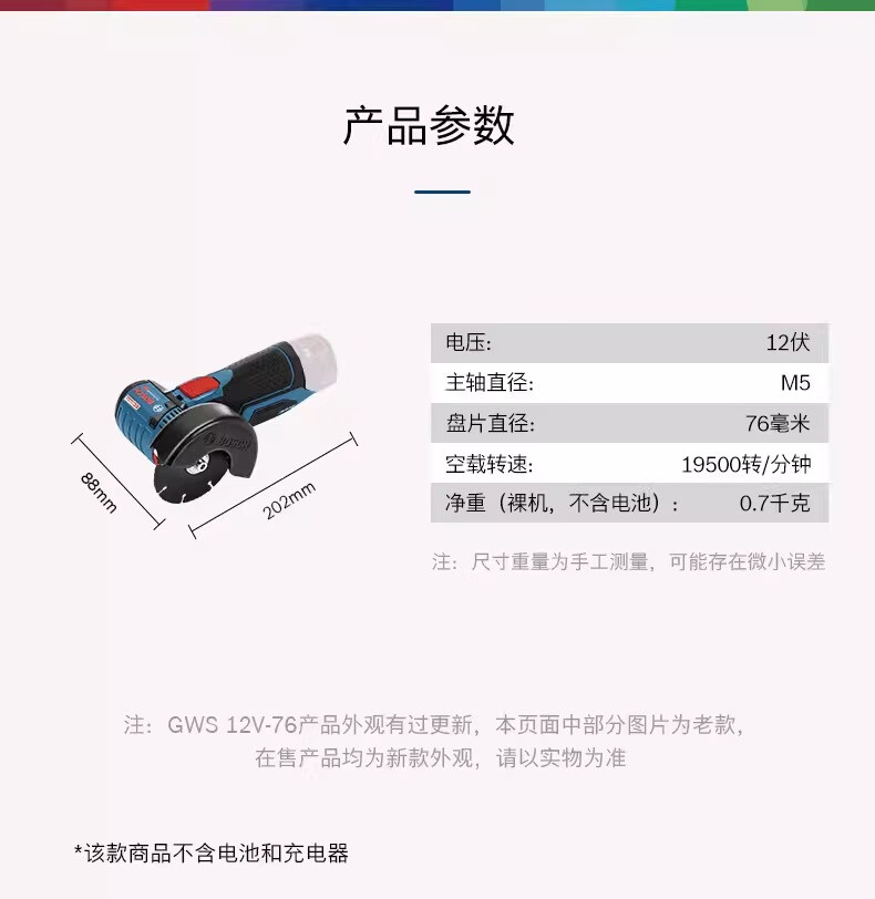 Bosch (BOSCH) Xiaogangxia GWS12V-76 small lithium-electric cutting angle grinder for metal, wood, water, electricity, plastic pipes and tiles. Optional GWS12V-76 hard tile slicing