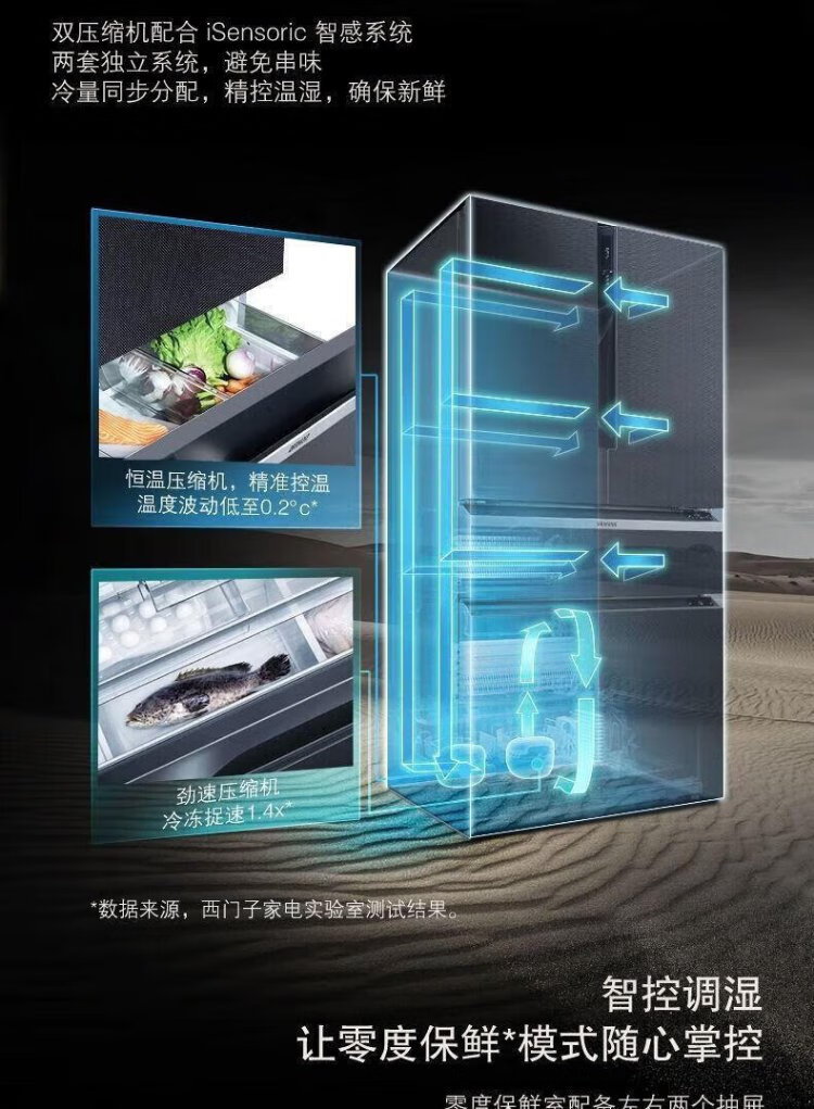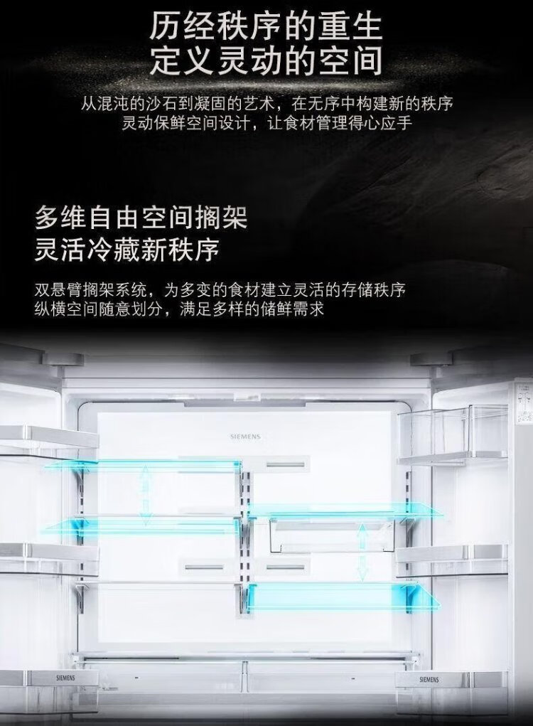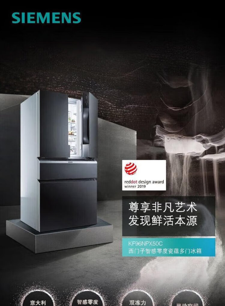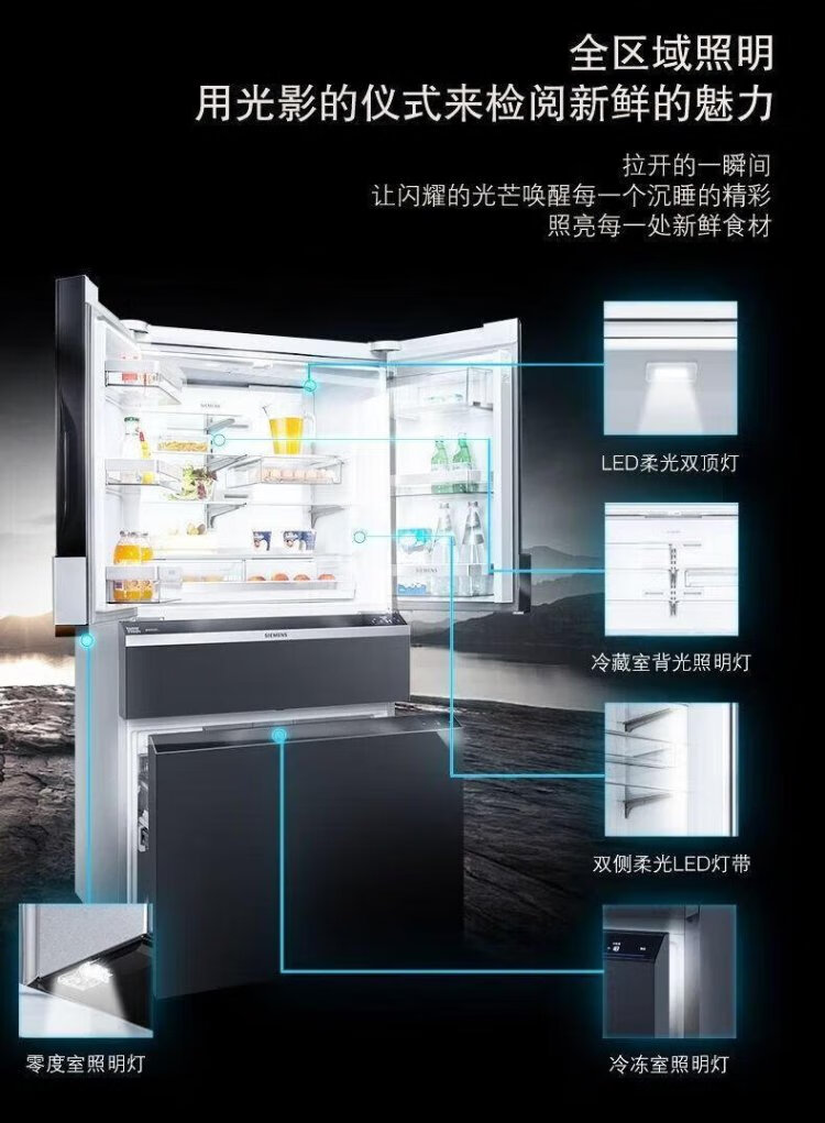 SIEMENS 568-liter French multi-door four-door refrigerator dual-cycle air-cooling, frost-free dual compressors, smart zero-degree freshness preservation, smart control and humidity control, trade-in government subsidy KF96NPX50C, click customer service to get a discount