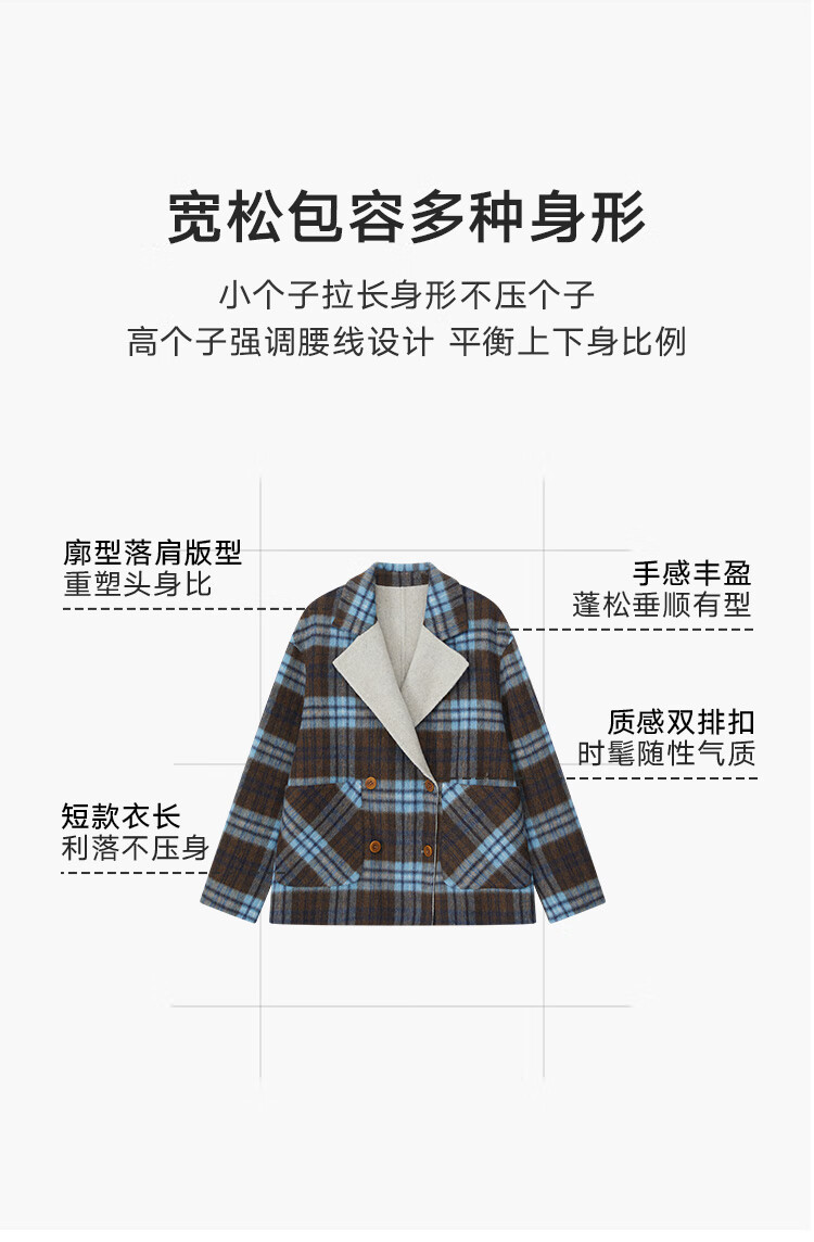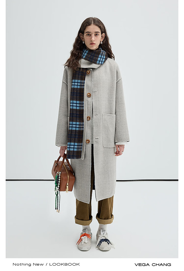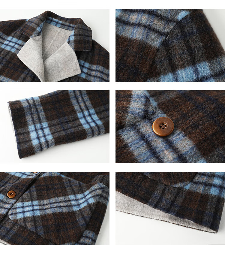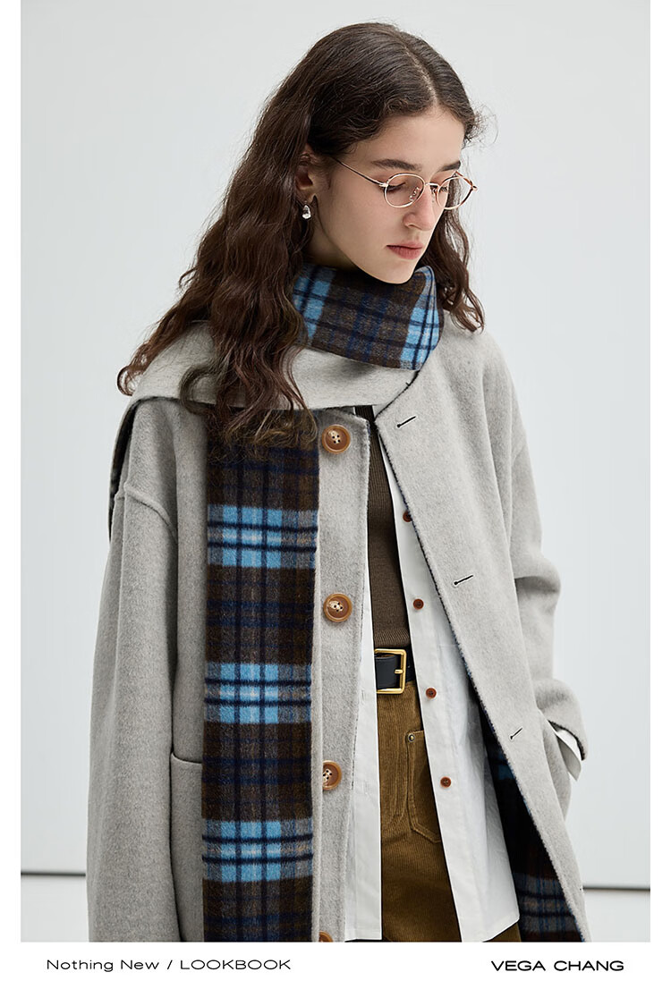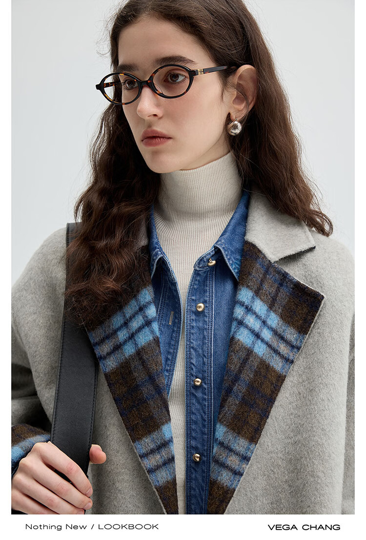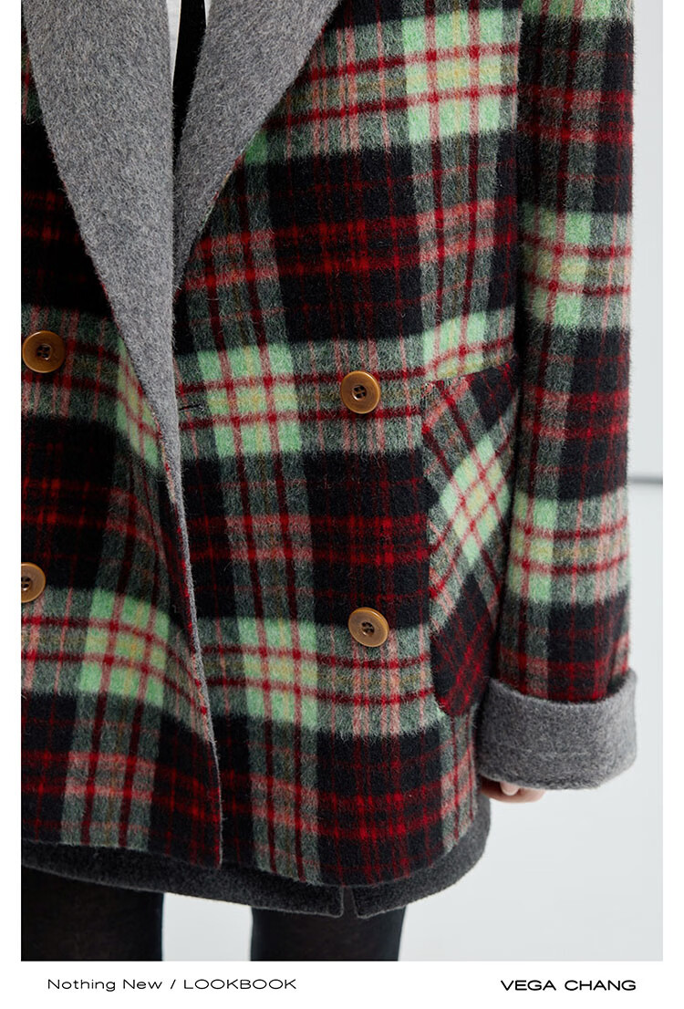 VEGA CHANG double-sided woolen coat for women winter small alpaca woolen coat Nordic blue plaid S