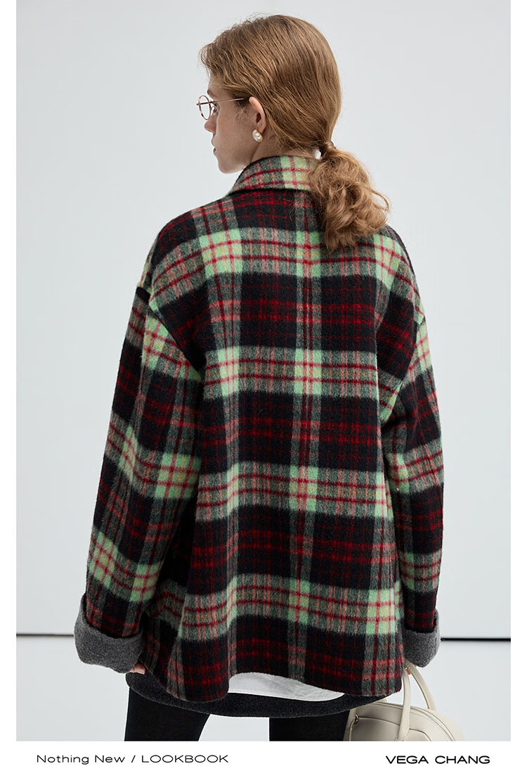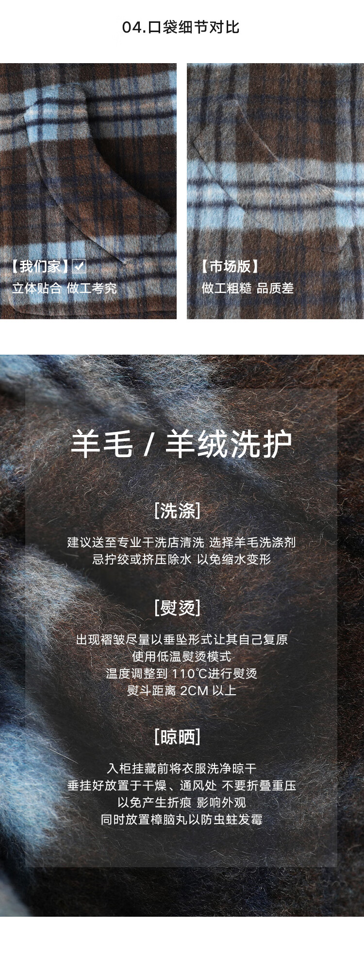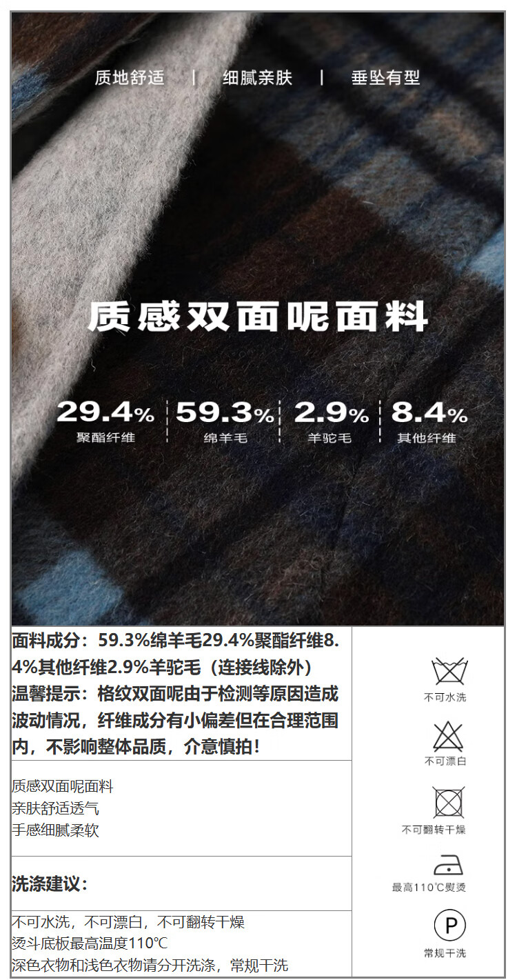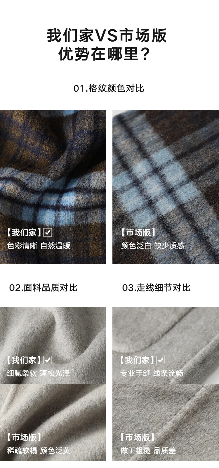 VEGA CHANG double-sided woolen coat for women winter small alpaca woolen coat Nordic blue plaid S